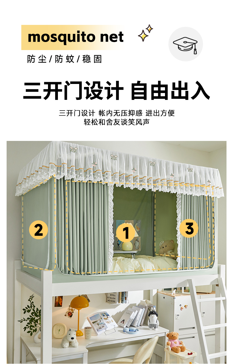 (总)梦尔佳蚊帐 2025新款学生宿舍遮光床帘蚊帐-花晨月夕,花晨月夕草绿色,花晨月夕 沐绿,花晨月夕 奶白,花晨月夕 奶黄,花晨月夕 藕玉,花晨月夕 亚灰