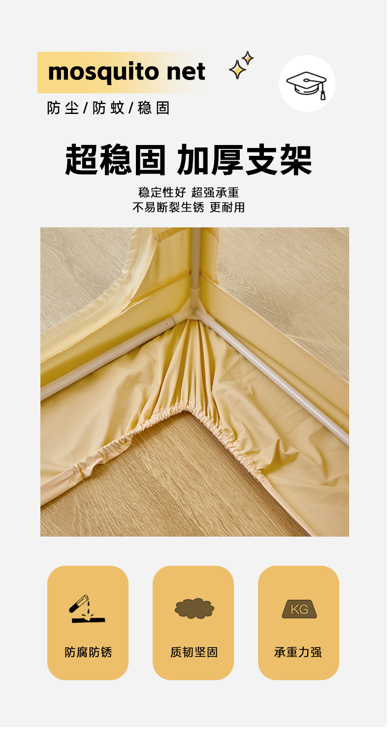 (总)梦尔佳蚊帐 2025新款双层花边床笠式三开门蚊帐-858怜香惜玉系列,优雅黄,富贵白,高级灰,温柔玉,清爽蓝