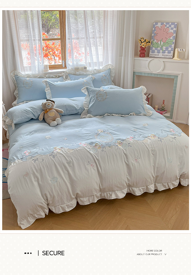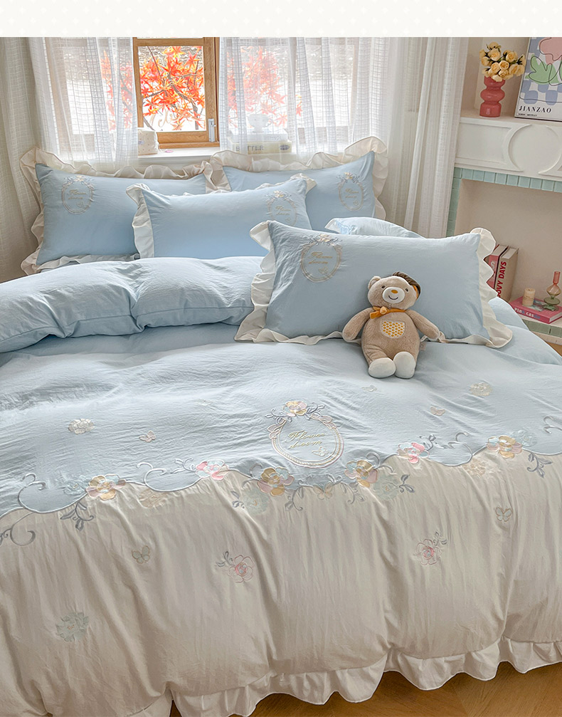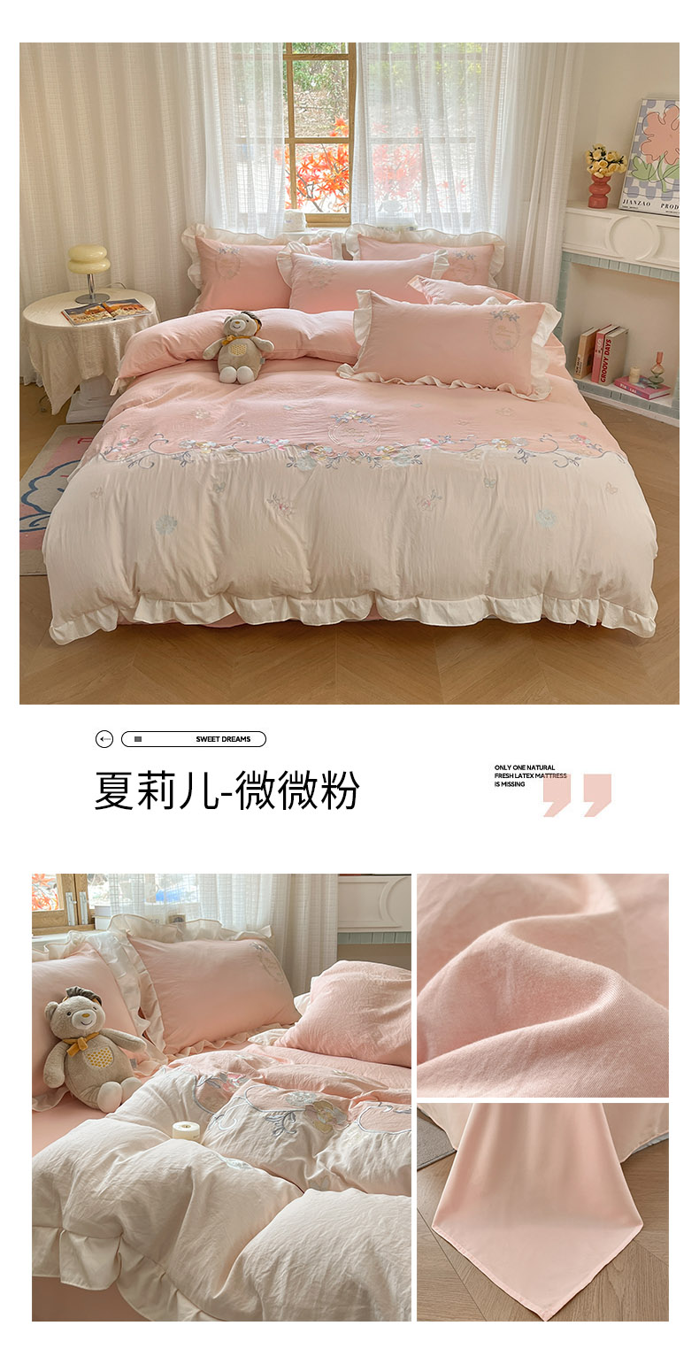 商品名称:ab家纺 2025新款夏莉儿系列水洗棉绣花四件套 夏莉儿-淡奶油