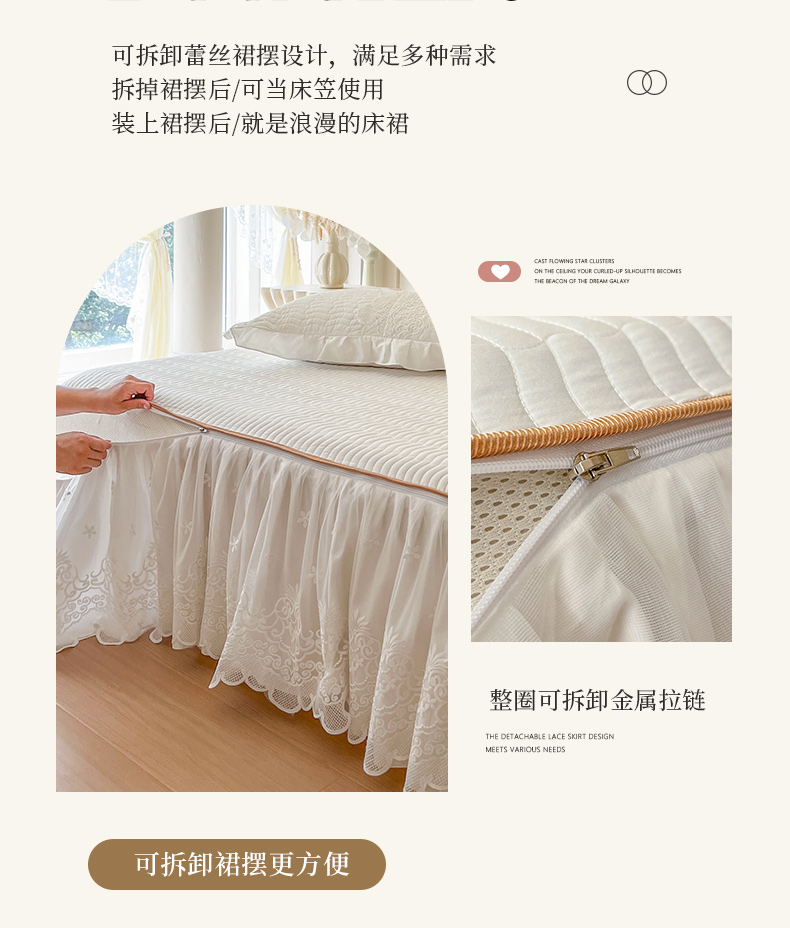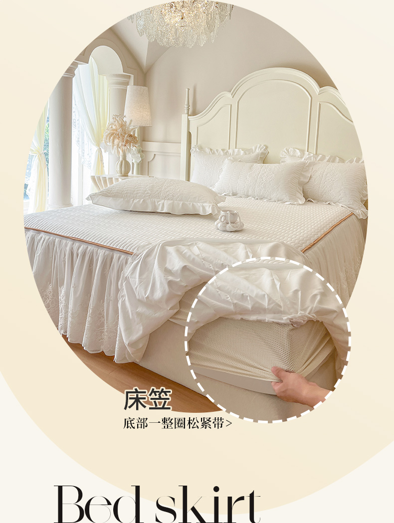 当前位置: 91家纺网 > 商品网购 > 床品套件 > 四件套 > 长绒棉四件套 > 恋尚 2025新款60S贡缎长绒棉全棉纯棉拉链可拆卸床笠款床裙四件套-曼莉系列 曼莉-珍珠白