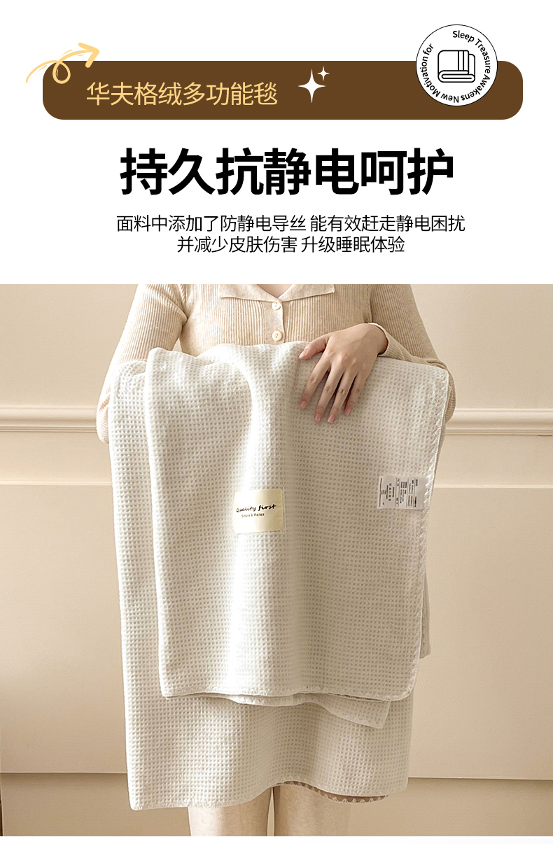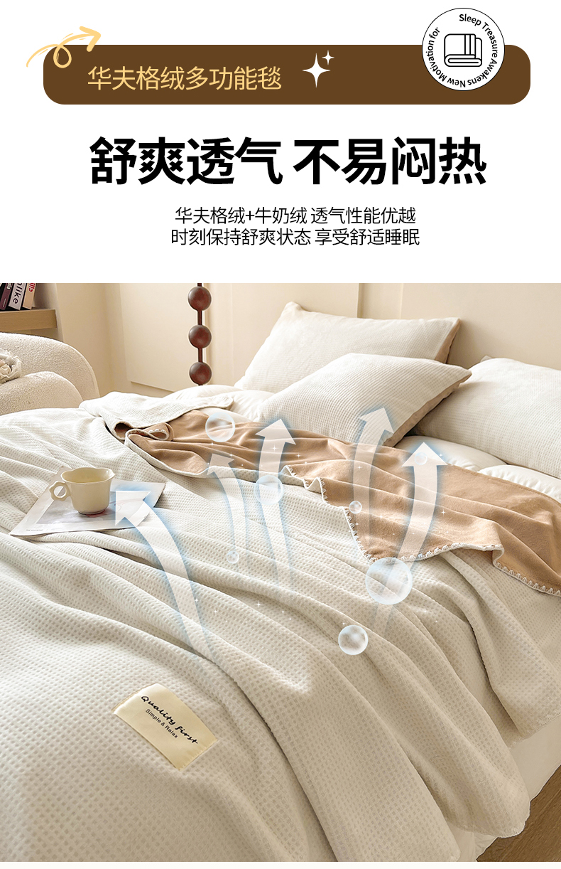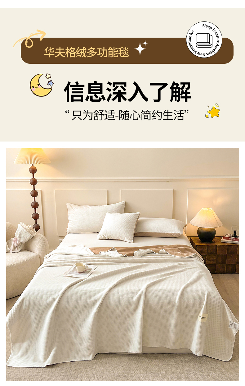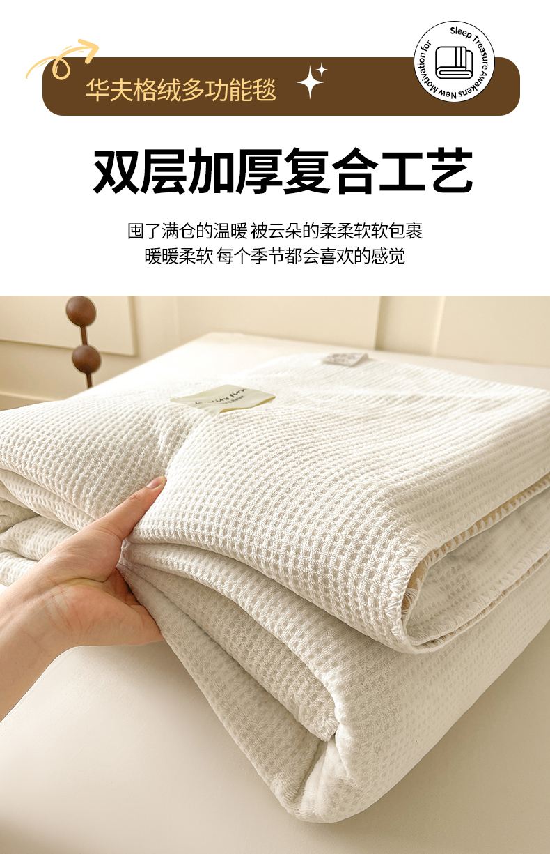 商品名称:澳梵家居 2025新款华夫格绒四季毯毛毯 乳杏白