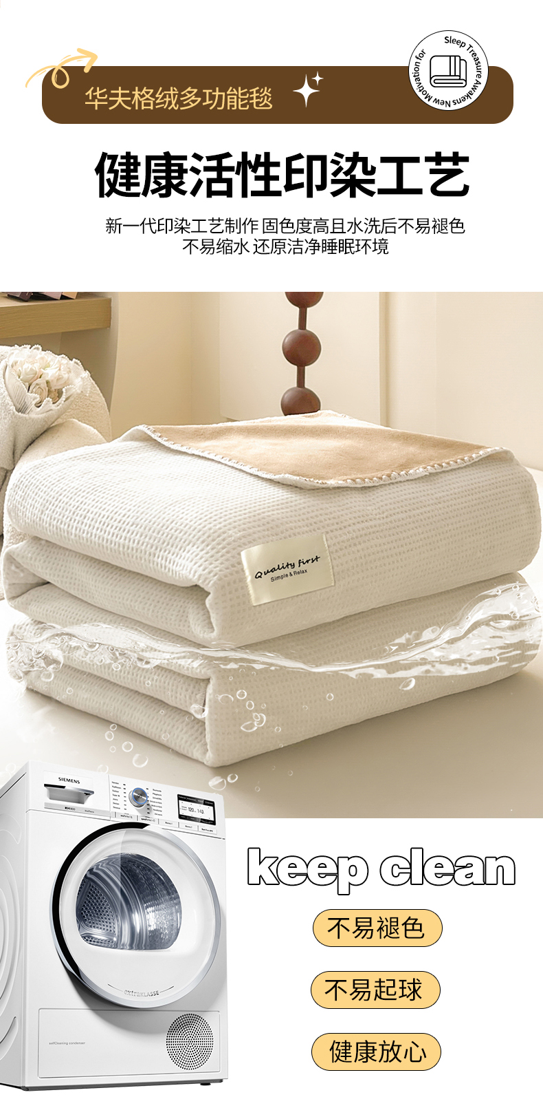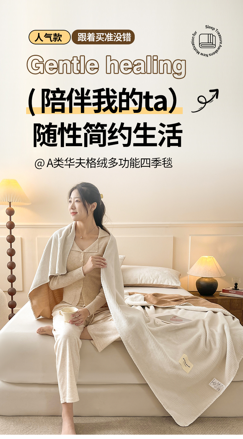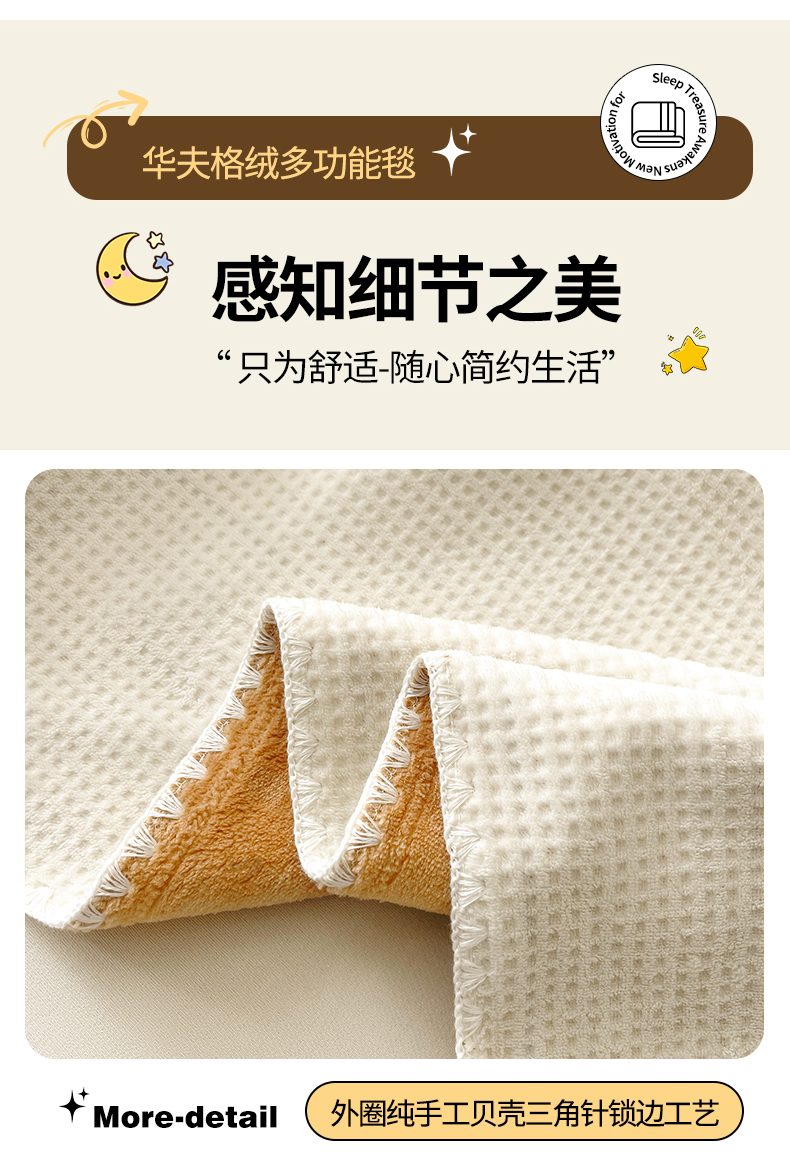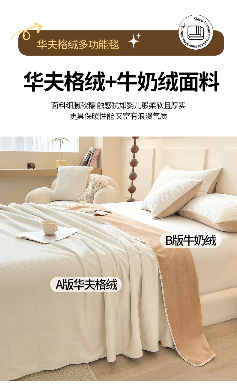 商品名称:澳梵家居 2025新款华夫格绒四季毯毛毯 乳杏白