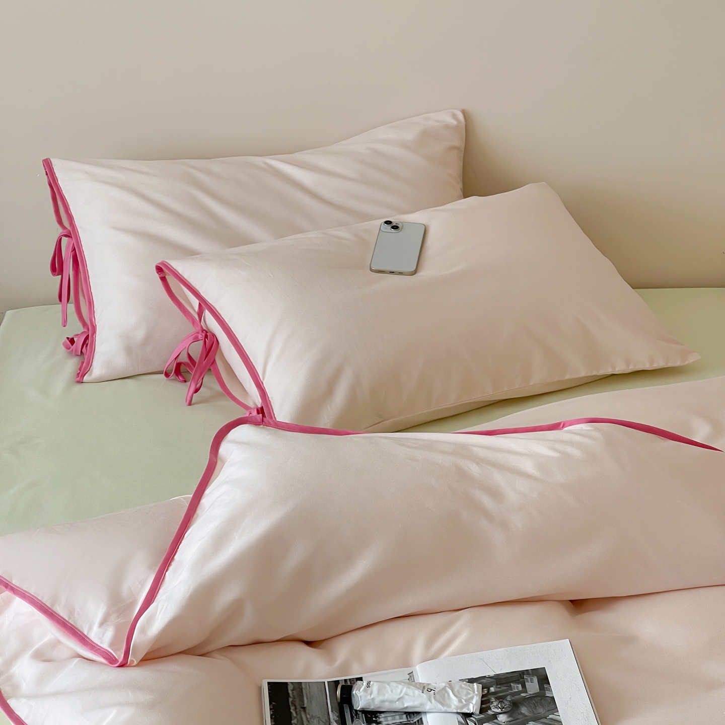 当前位置: 91家纺网 > 商品网购 > 床品套件 > 四件套 > 其它四件套 > 尺素 2025新款纯色纯棉简约韩式ins风四件套民宿风全棉被套棉床单双人被套加大床单1.8纯色床笠 蔷薇-蜜瓜绿