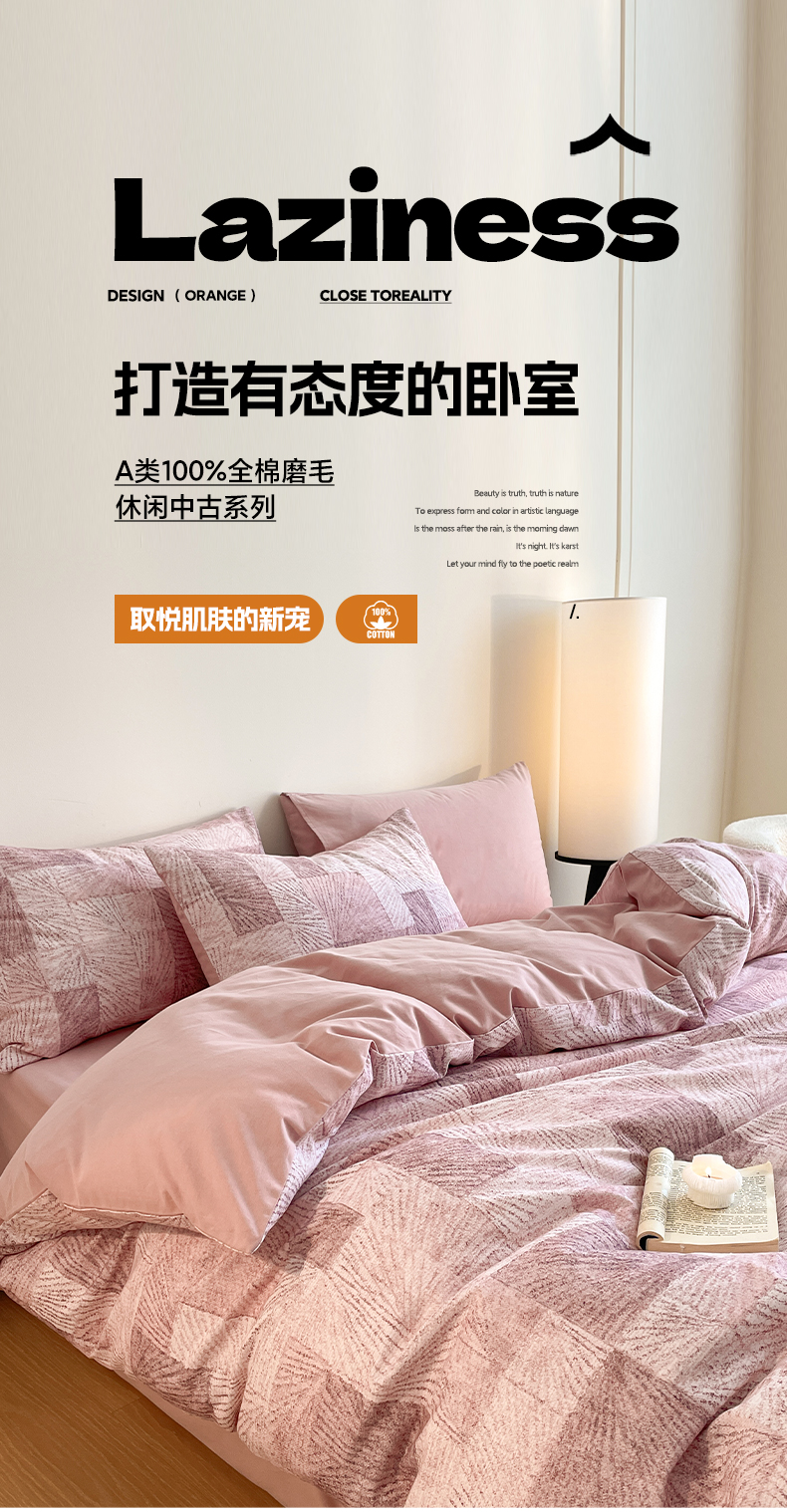 (总)莱登卡奴 2025新款A类100%全棉磨毛休闲中古系列四件套