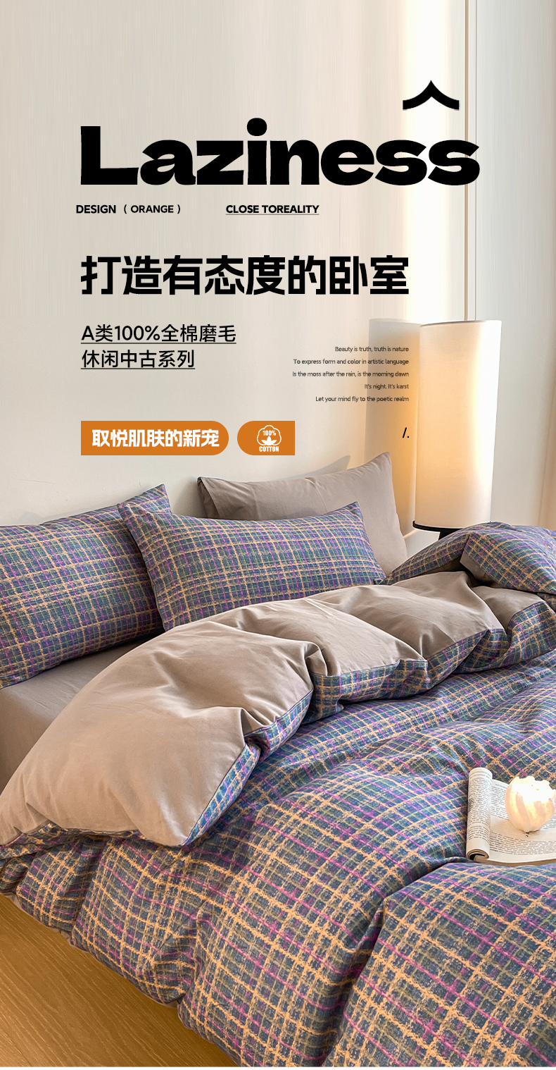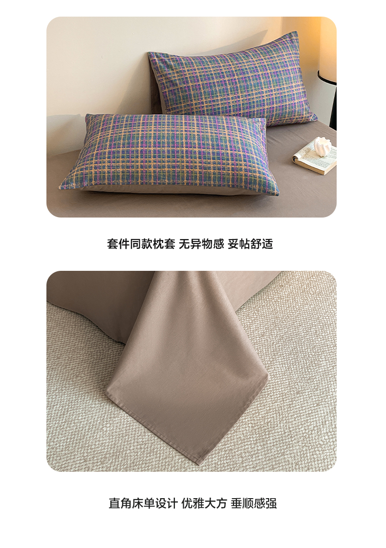 当前位置: 91家纺网 > 商品网购 > 床品套件 > 四件套 > 全棉普通四件套 > 莱登卡奴 2025新款A类100%全棉磨毛休闲中古系列四件套 香奶奶-紫