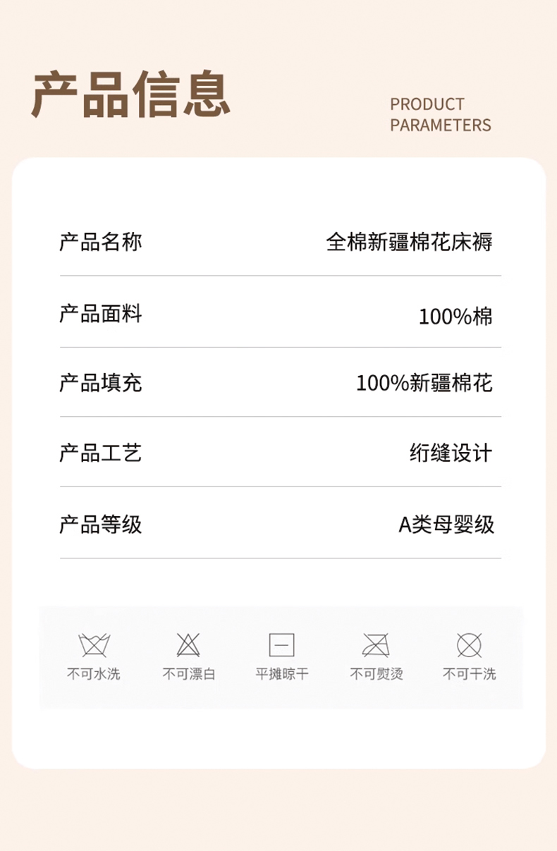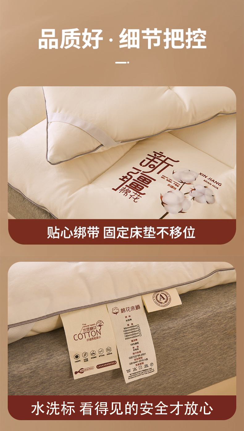 当前位置: 91家纺网 > 商品网购 > 床垫/床褥 > 普通床垫 > (总)样样红被业 2025新款A类全棉新疆棉花床垫50%1.5米尺寸
