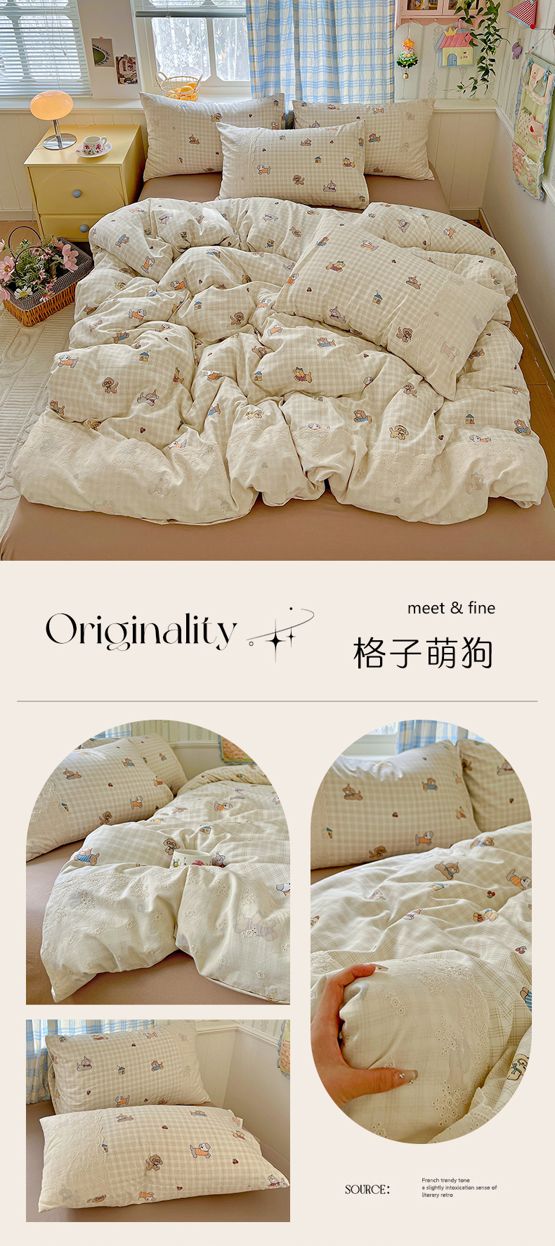 当前位置: 91家纺网 > 商品网购 > 床品套件 > 四件套 > 化纤活性四件套 > 海岛哥哥 2025新款韩式全棉蕾丝花边软绵绵四件套 格子萌狗