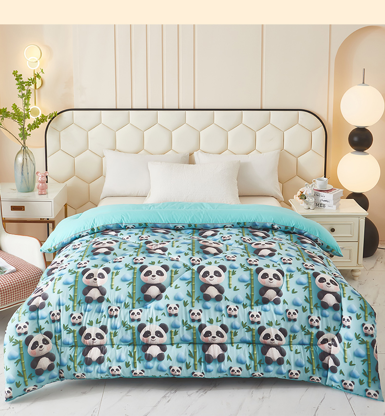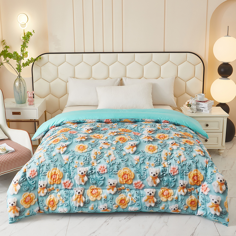(总)南方印象 2025新款A类凉感丝冰豆豆夏凉被夏被空调被爆款5D印花夏被,蜜糖小熊花,兔栖绿野
