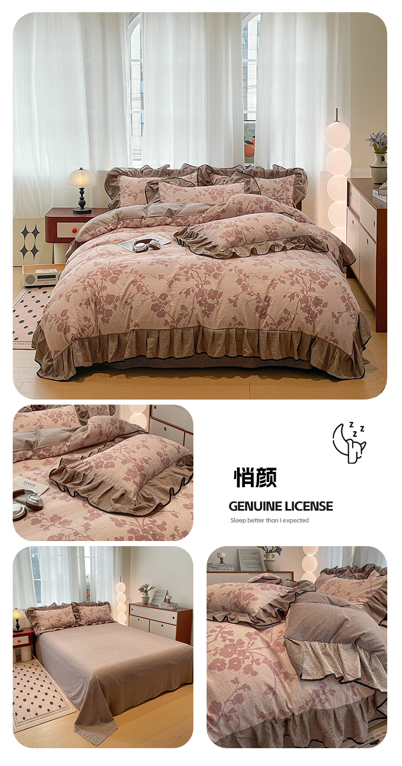 (赛丽雅)2025秋冬新品130克加厚复古风印花磨毛四件套 悄颜