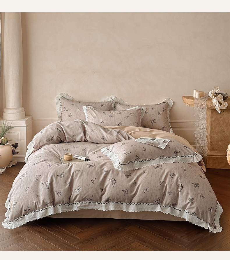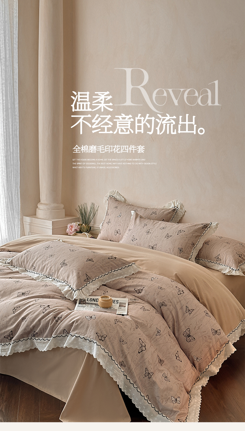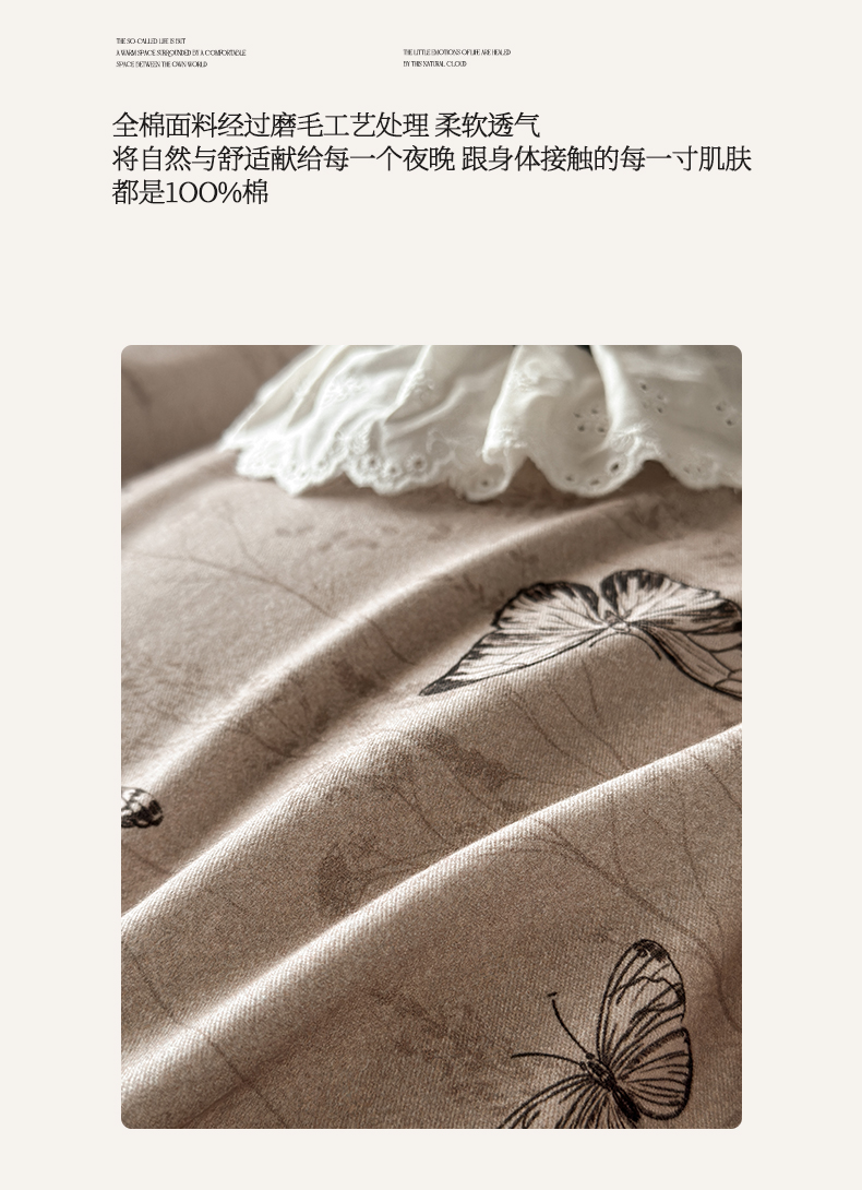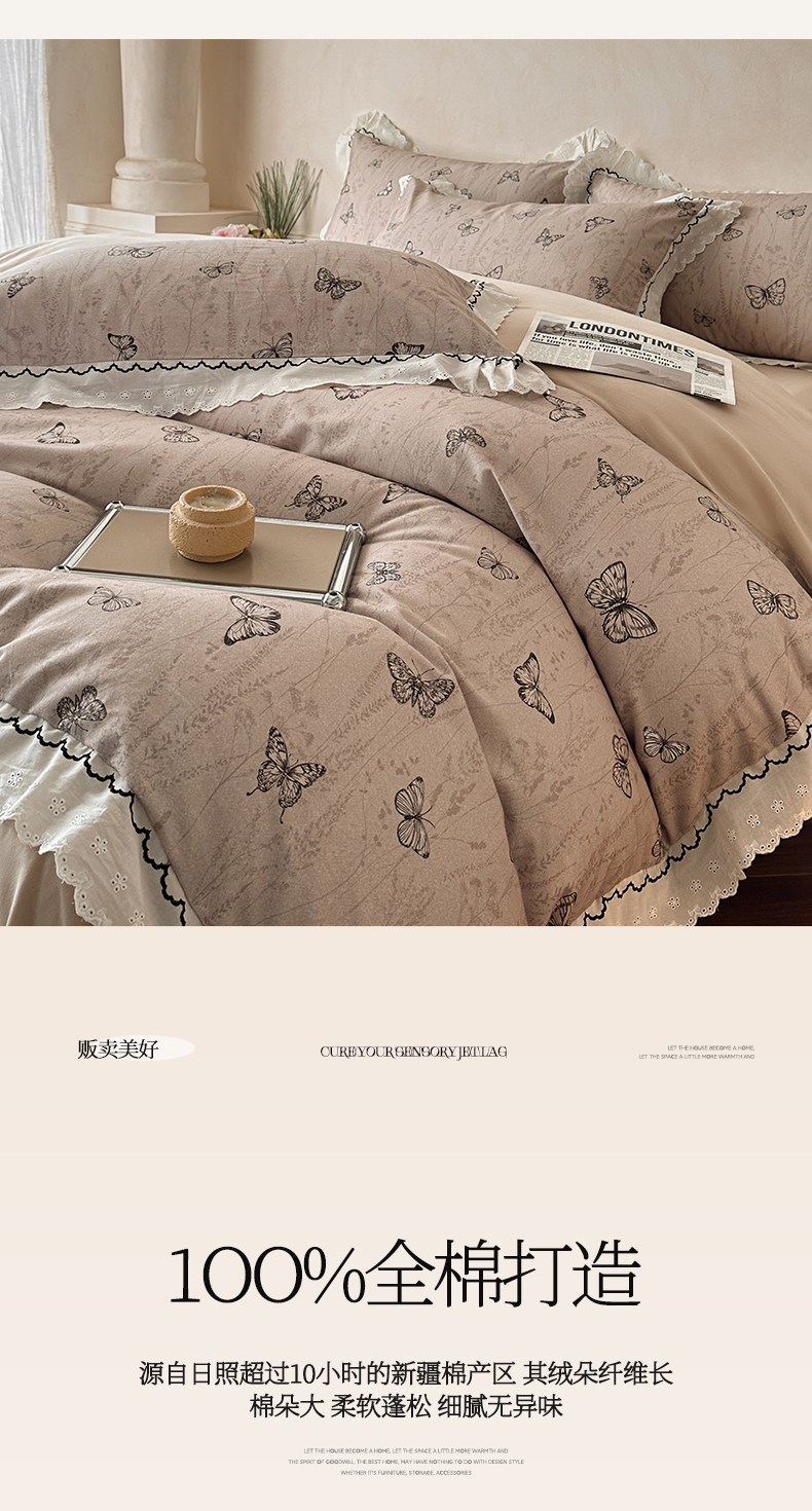 当前位置: 91家纺网 > 商品网购 > 床品套件 > 四件套 > 磨毛活性四件套 > 涵宸家纺 2025新款全棉磨毛印花四件套-雅漾 梦蝶-咖