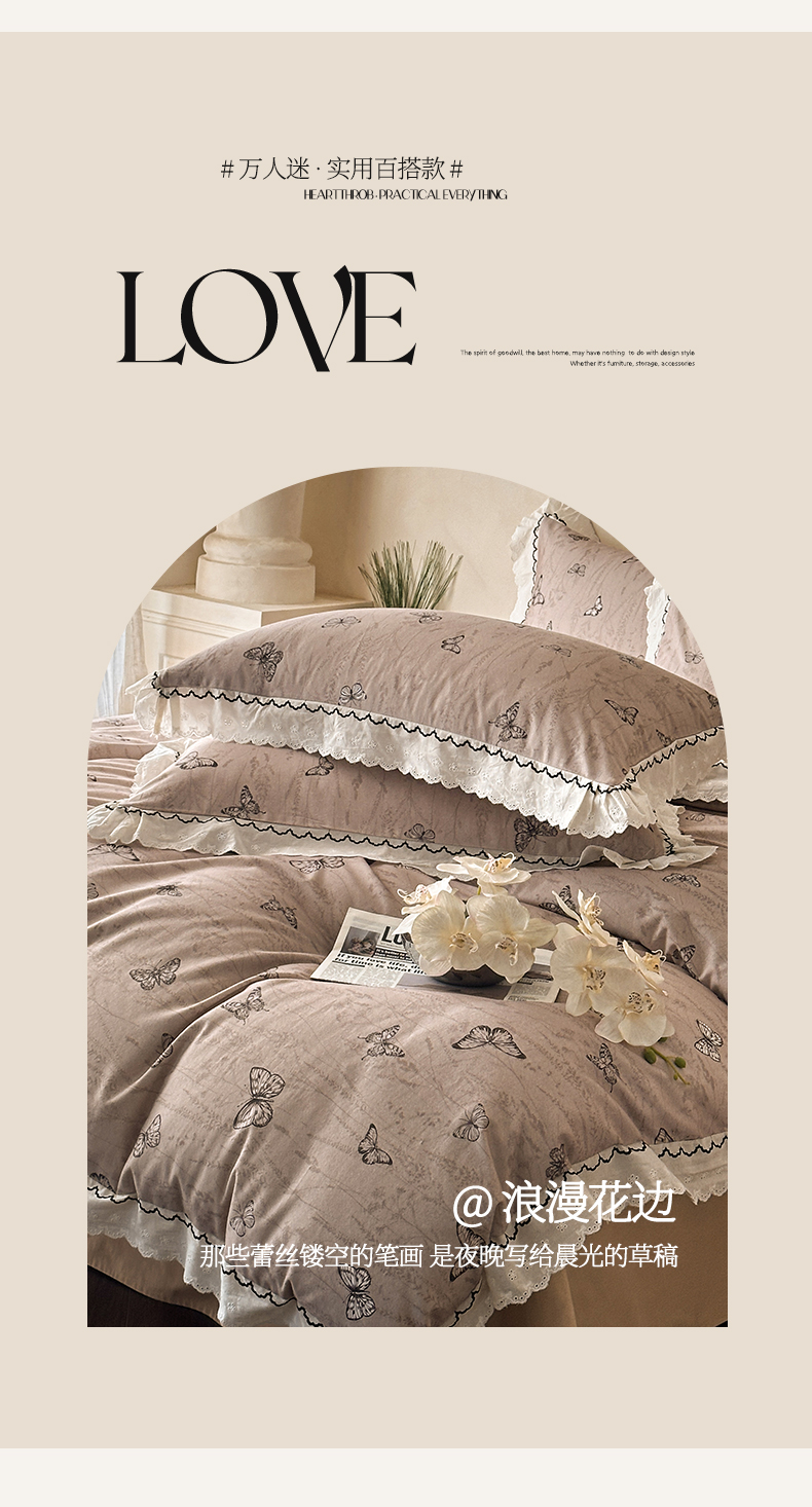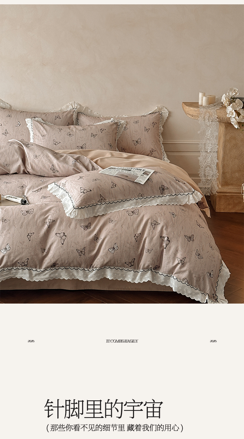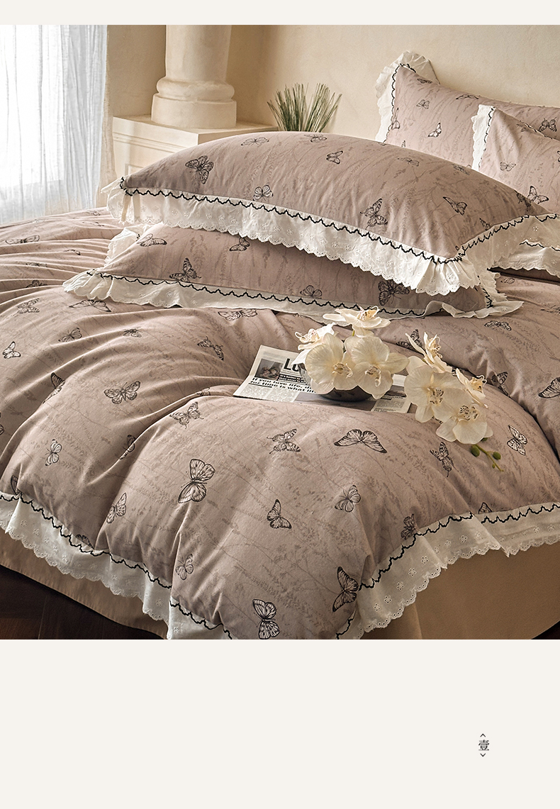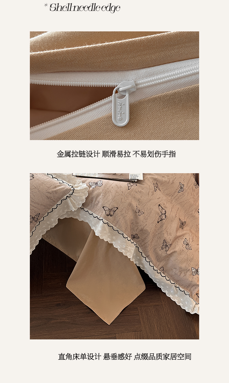 当前位置: 91家纺网 > 商品网购 > 床品套件 > 四件套 > 磨毛活性四件套 > 涵宸家纺 2025新款全棉磨毛印花四件套-雅漾 梦蝶-咖