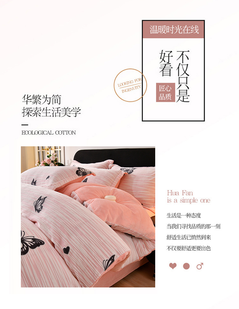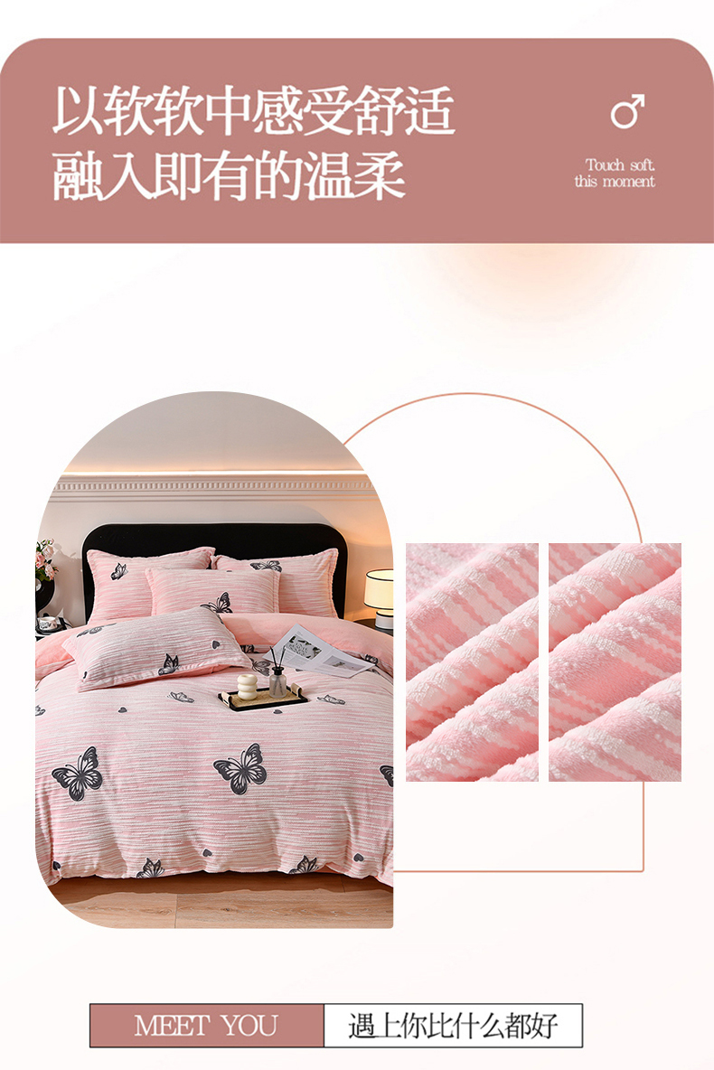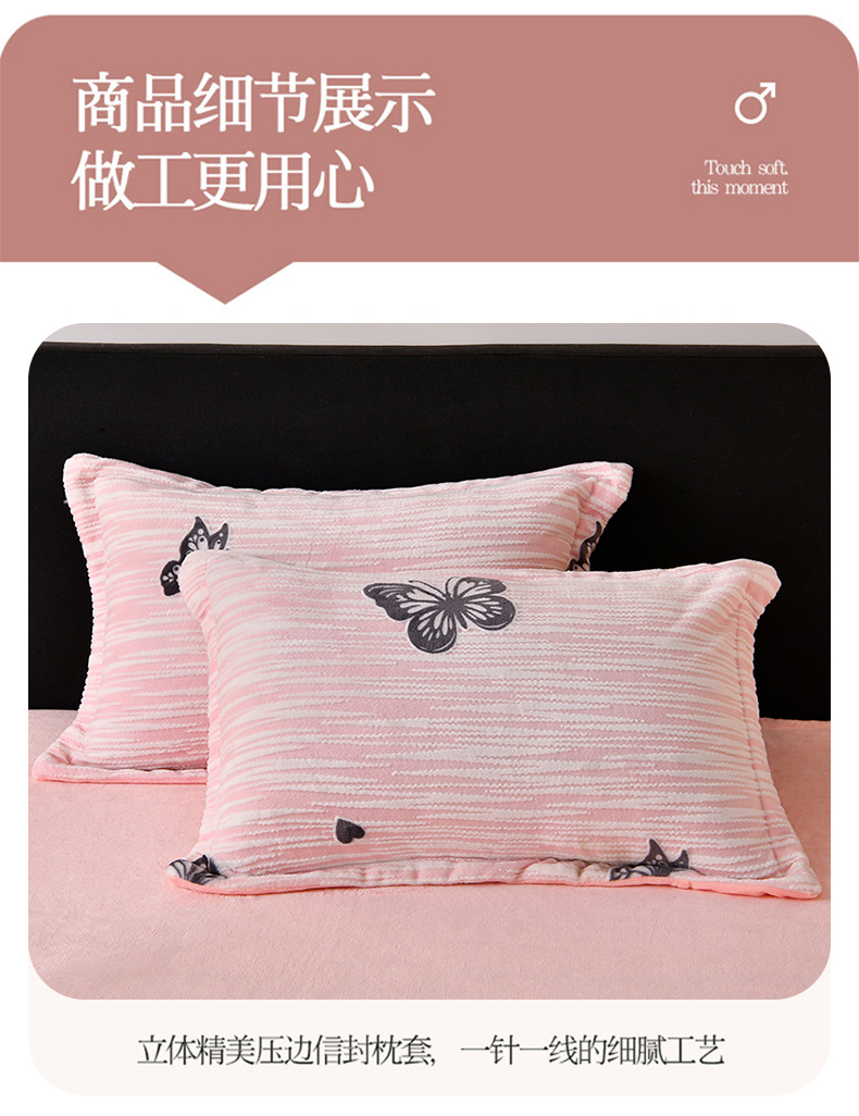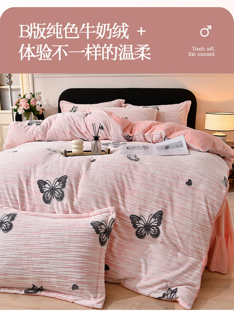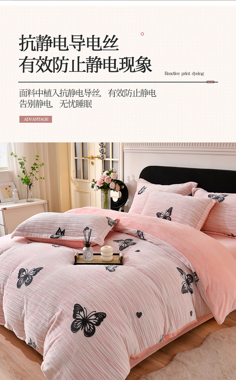商品名称:梦之星 2025新款8斤重牛奶绒6D雕花绒四件套法莱水晶金貂 蝴蝶-粉