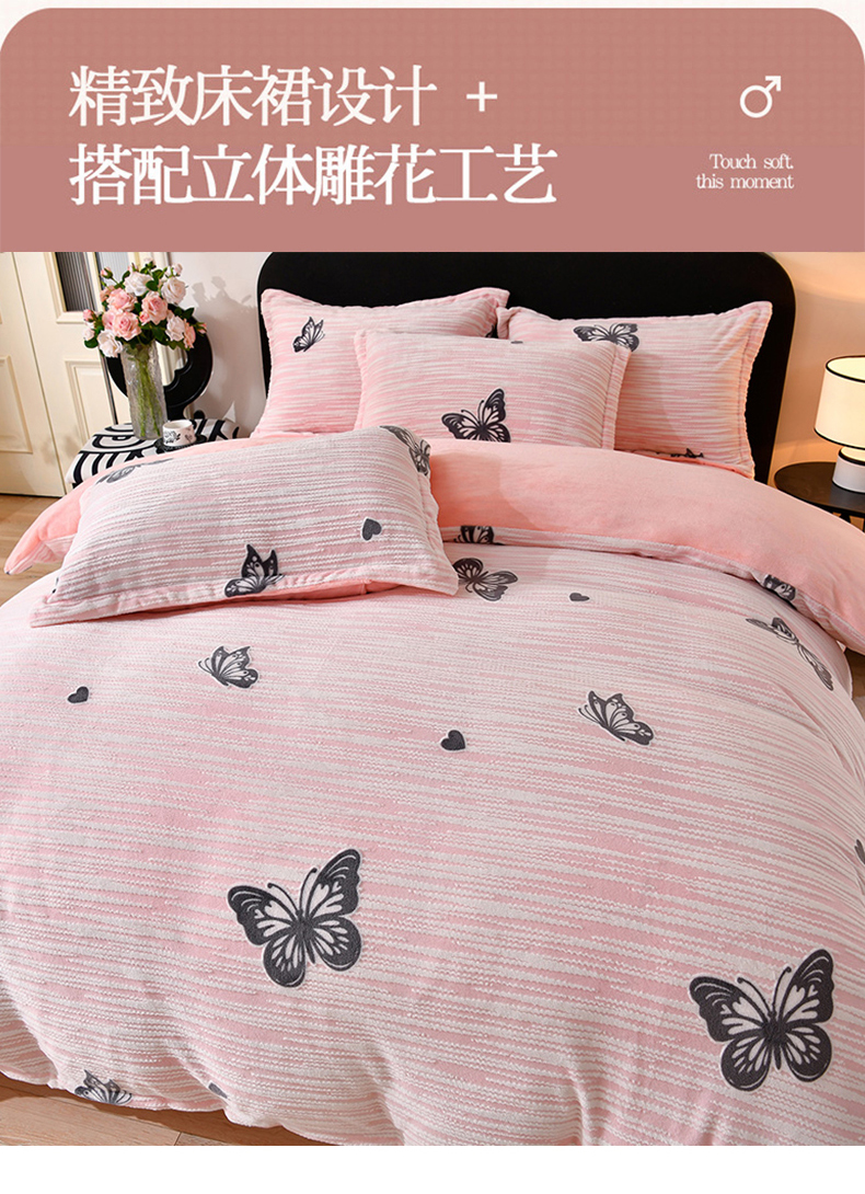 (总)梦之星 2025新款牛奶绒雕花床盖款床单款四件套,蝶恋花-粉,繁花-粉,洛梦-粉,洛梦-白,繁花-绿,蝶恋花-绿