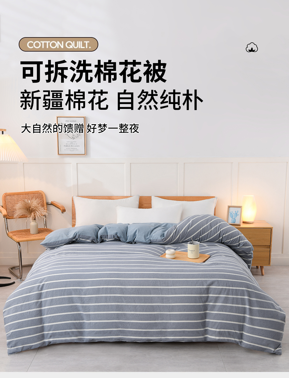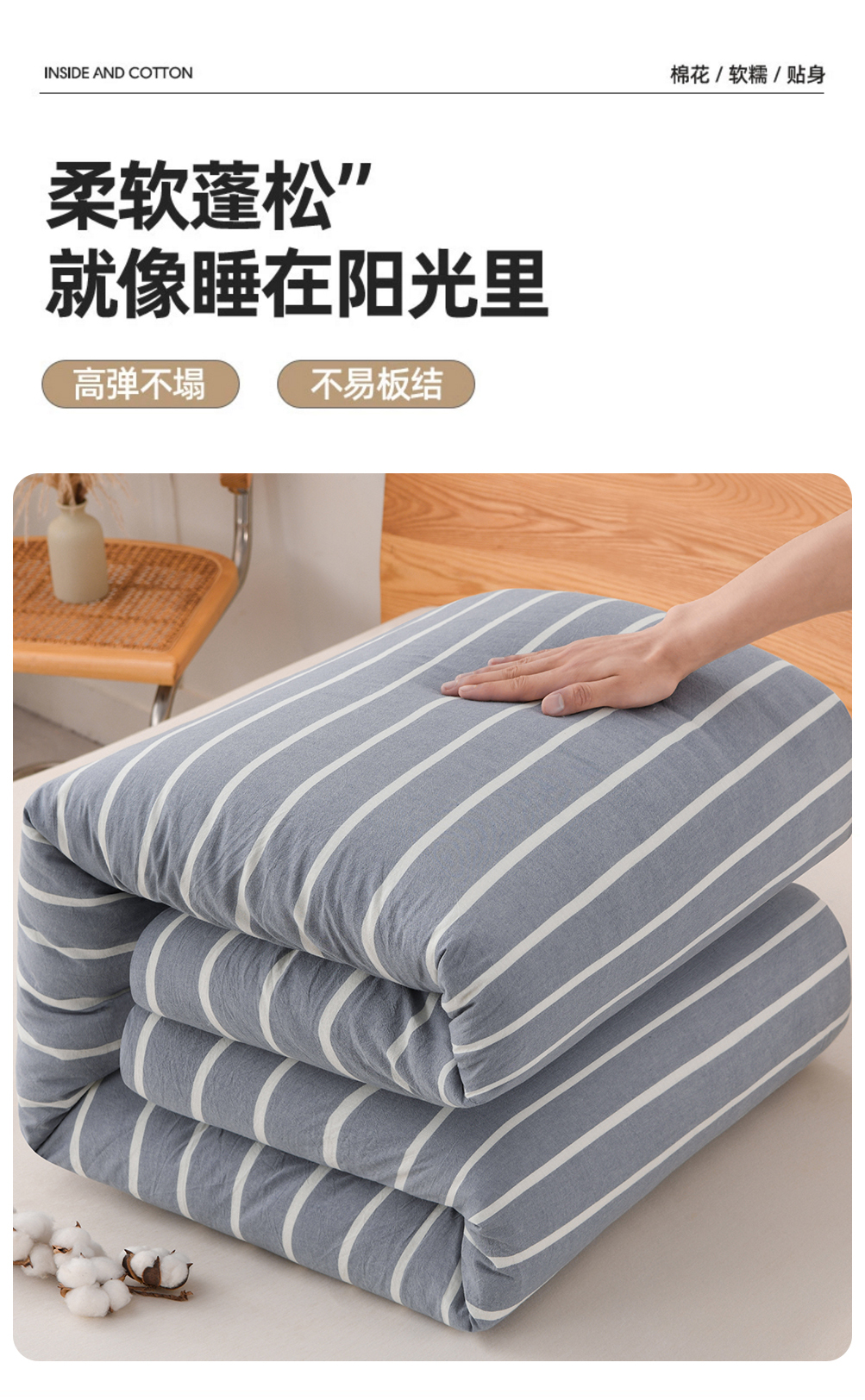 • 91家纺网 家纺一手货源 找家纺 悠米悠家 2025新款蓬松保暖可拆洗新疆棉花被子被芯 蓝白条