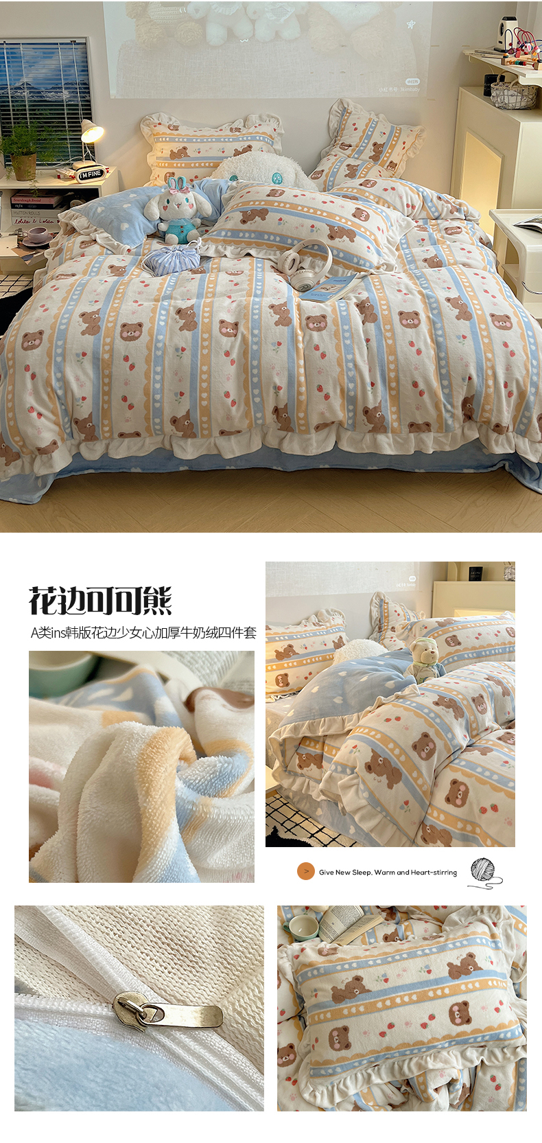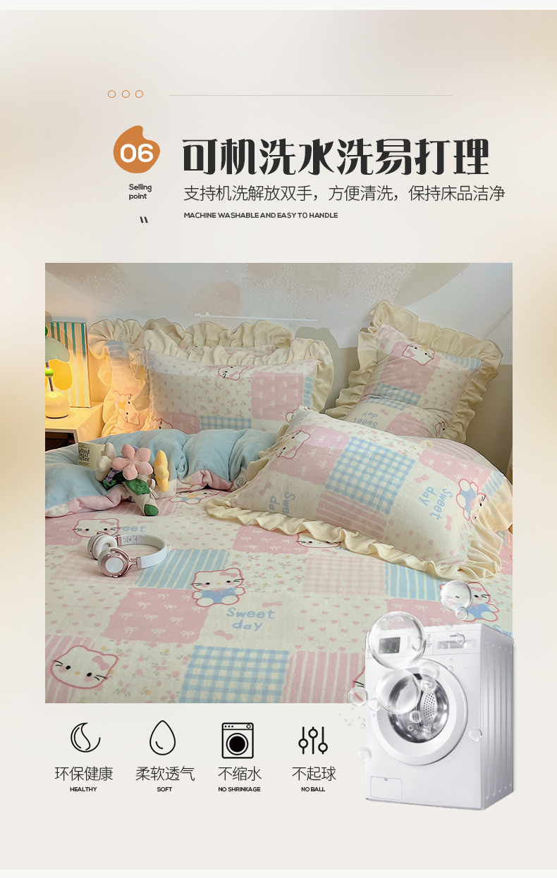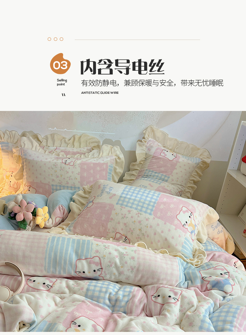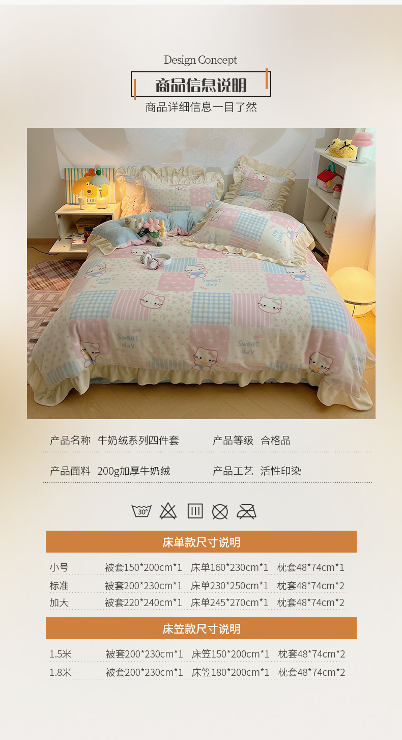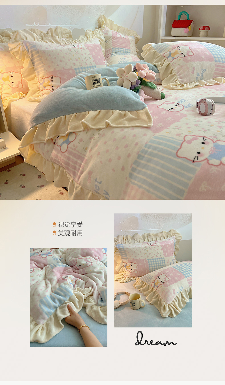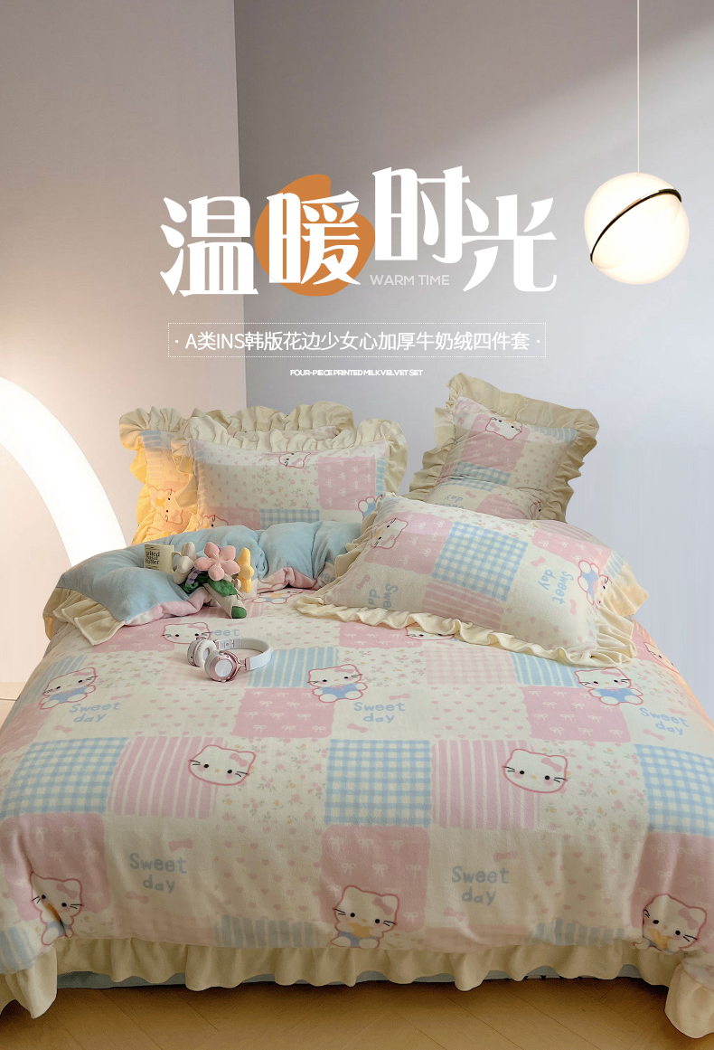 当前位置: 91家纺网 > 商品网购 > 床品套件 > 四件套 > 牛奶绒四件套 > 桃子家居 2025新款A类ins韩版花边少女心可爱卡通碎花加厚牛奶绒四件套 绒-花边花田猫