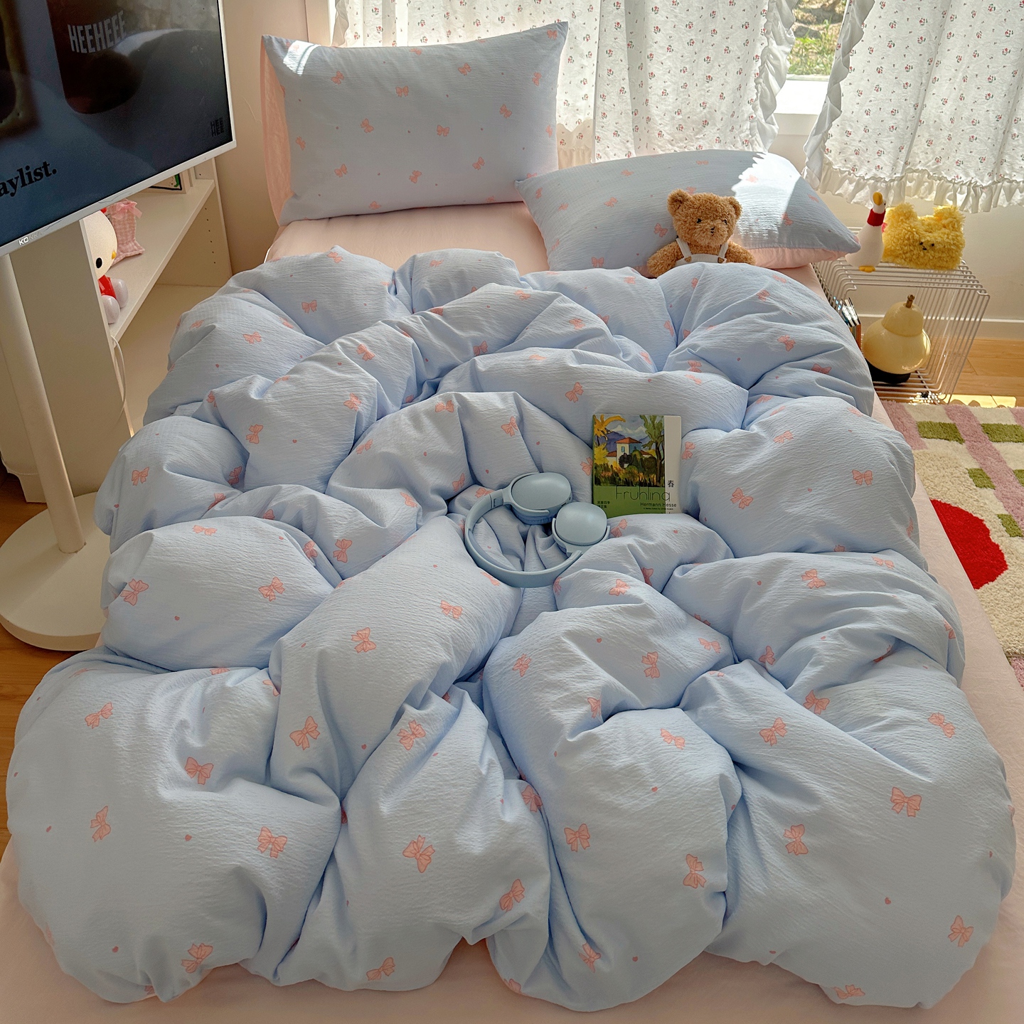 当前位置: 91家纺网 > 商品网购 > 床品套件 > 四件套 > 其它四件套 > 顾里家纺 2025新款韩系奶萌云朵棉四件套 少女结