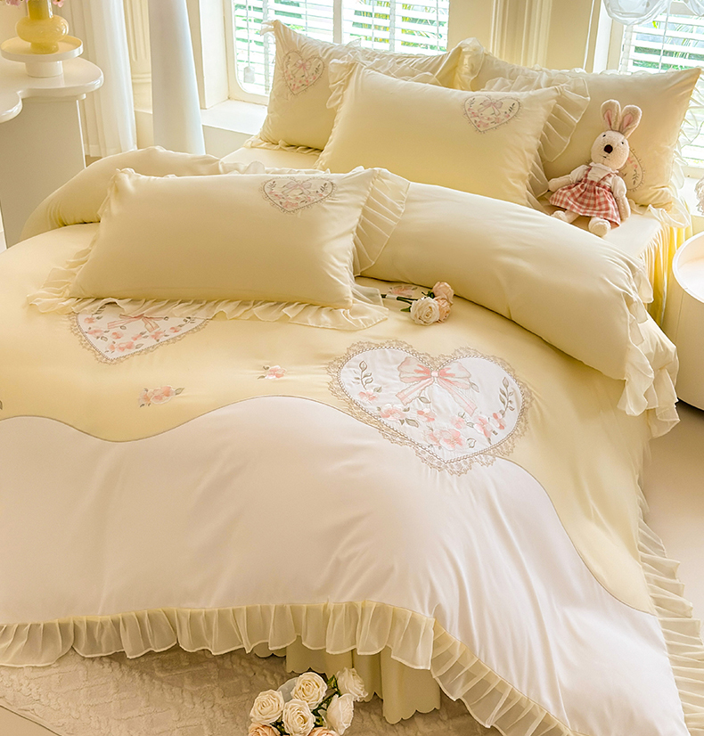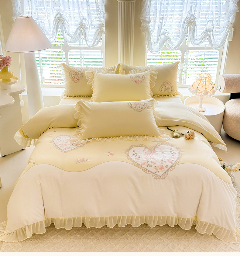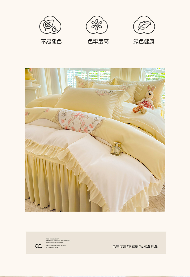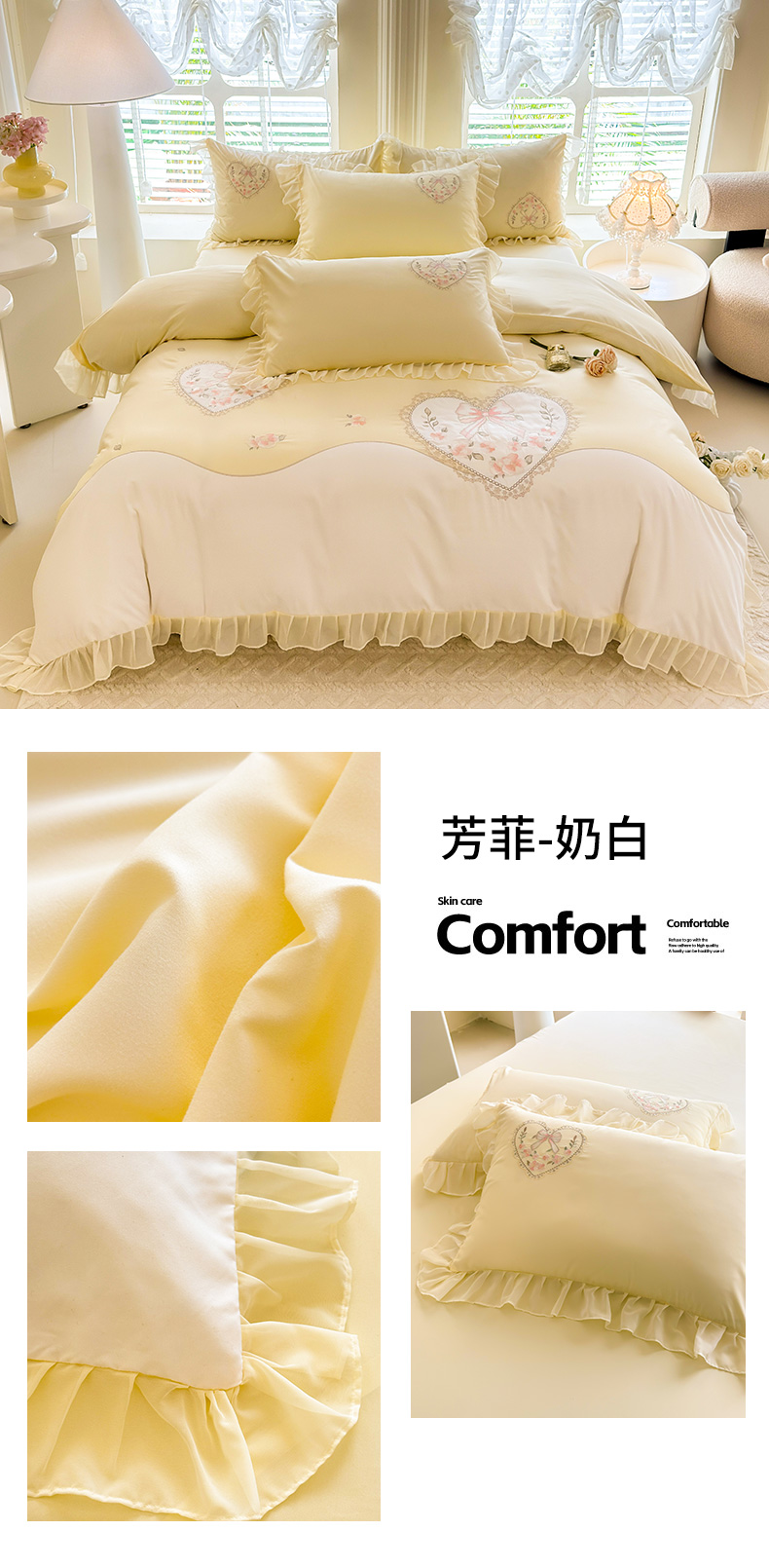当前位置: 91家纺网 > 商品网购 > 床品套件 > 四件套 > 普通磨毛四件套 > 慕语家纺 2025新款少女系贴布绣蕾丝花边水洗磨毛棉四件套--芳菲系列(专版花型) 芳菲-奶白