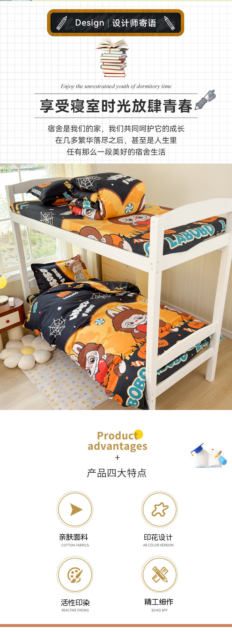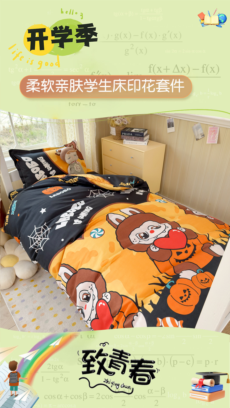 当前位置: 91家纺网 > 商品网购 > 床品套件 > 四件套 > 其它四件套 > 乐居坊 2025新款开学季亲肤棉透气印花芦荟棉四件套(宿舍床) 拉布布