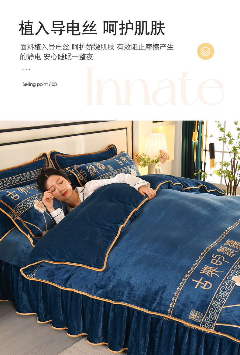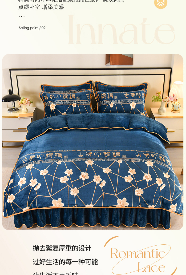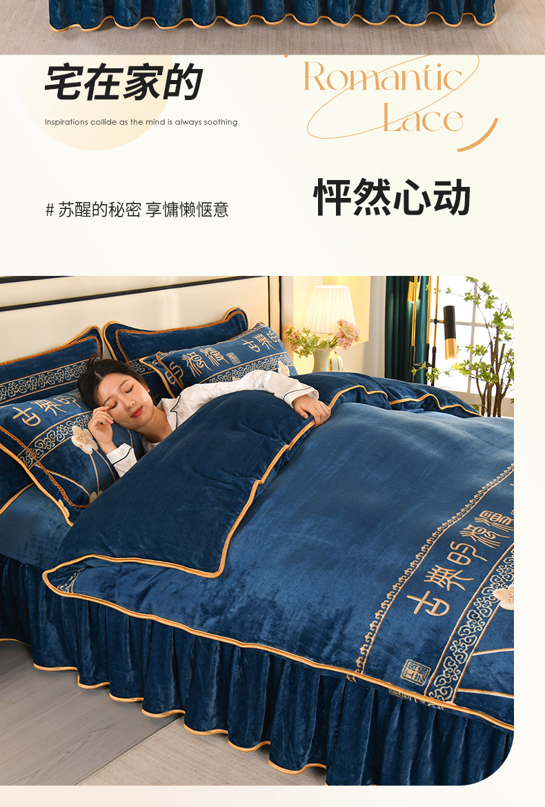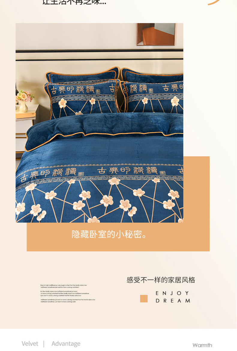 当前位置: 91家纺网 > 商品网购 > 床品套件 > 四件套 > 牛奶绒四件套 > 莱凯家纺 2025新款牛奶绒四件套保暖加厚金貂绒套件玉魄梅香