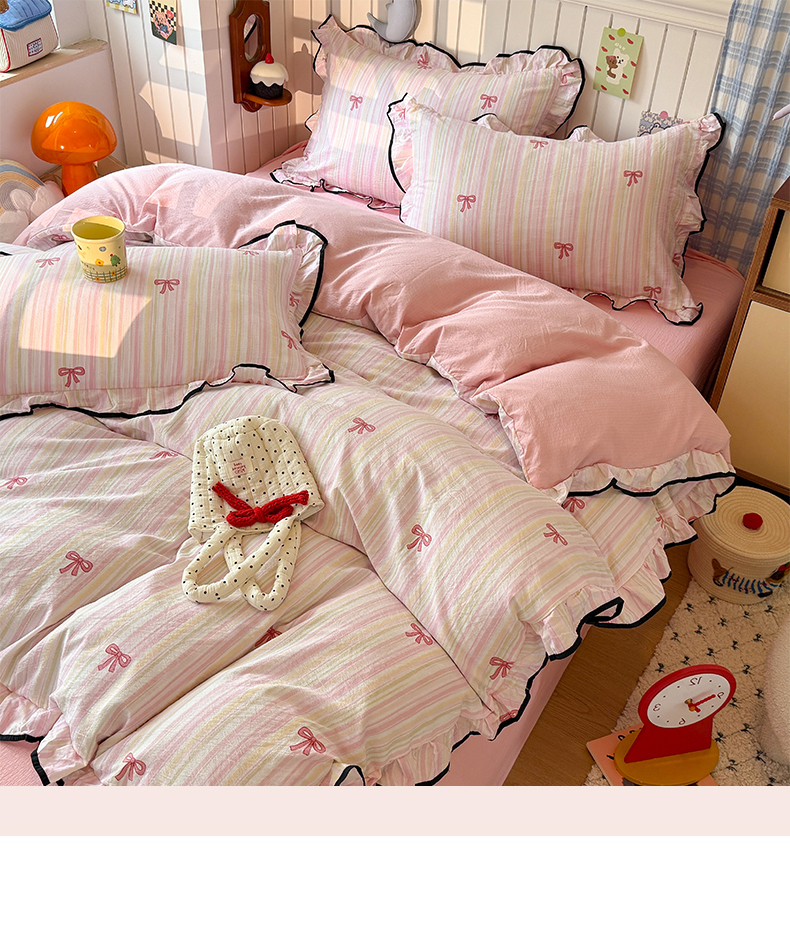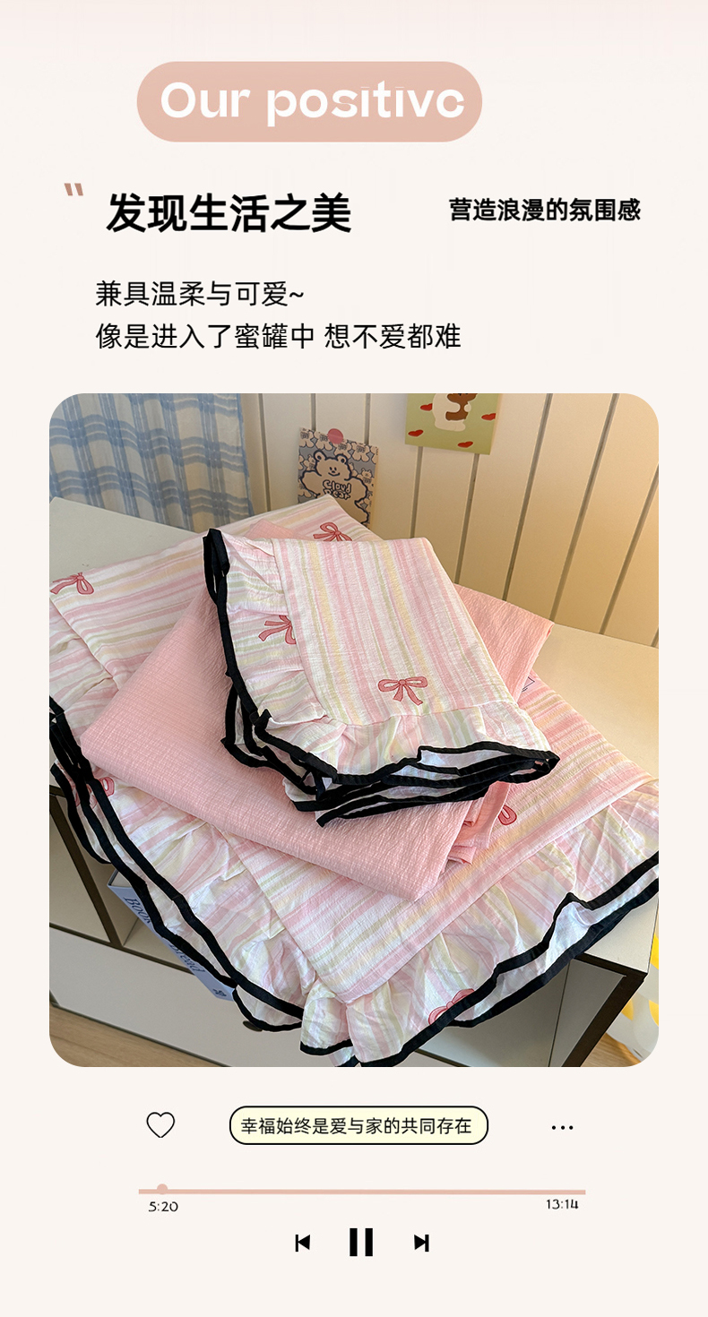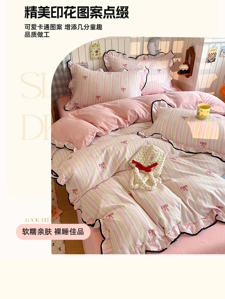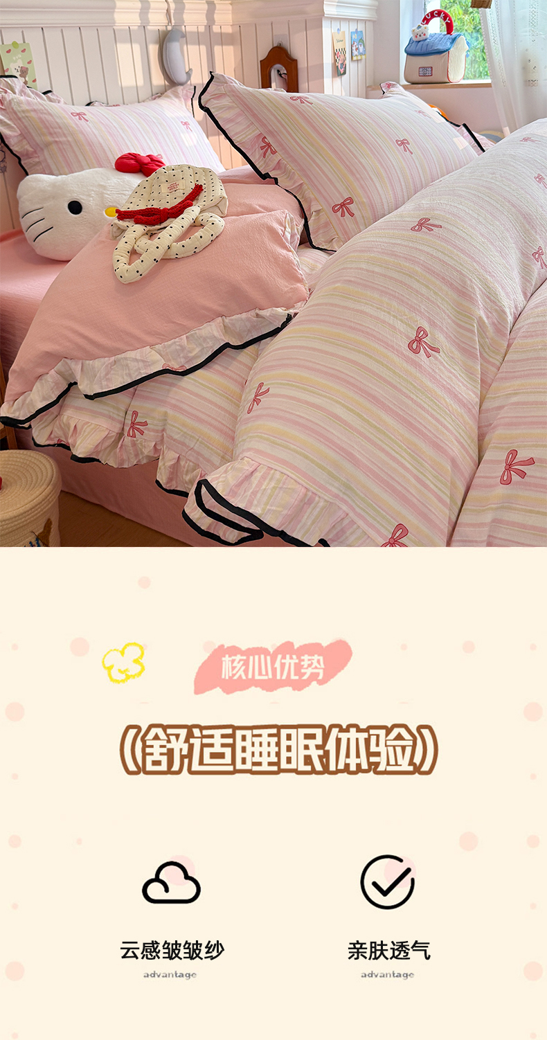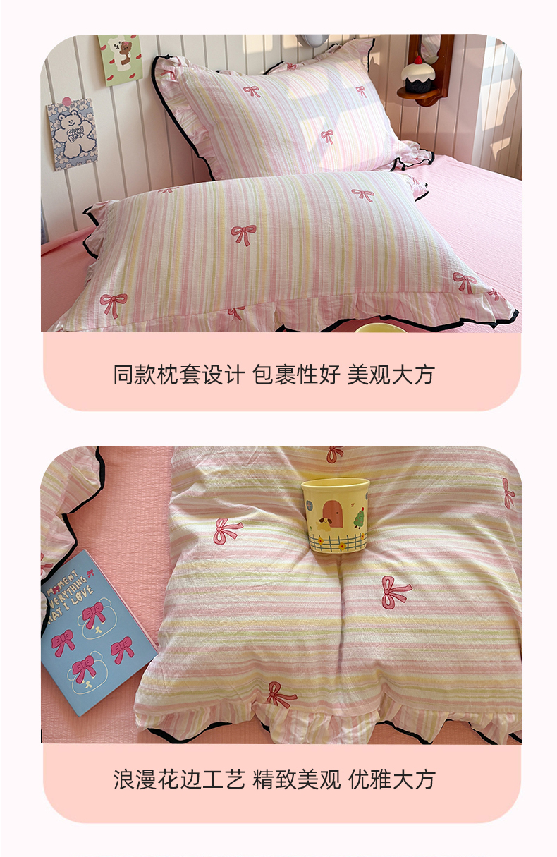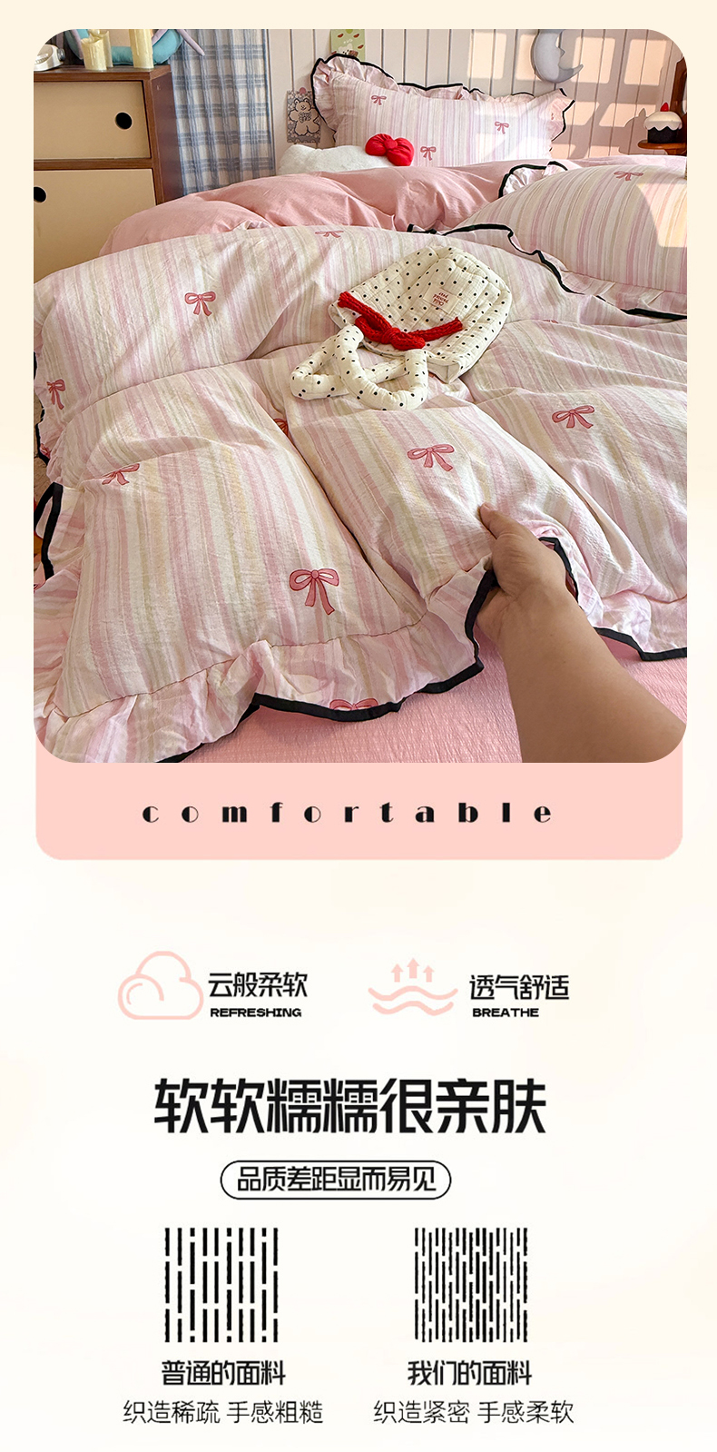 当前位置: 91家纺网 > 商品网购 > 床品套件 > 四件套 > 双层纱四件套 > 艾特你 2025新款云感皱皱双层纱黑色包边四件套 黑边-蝴蝶结