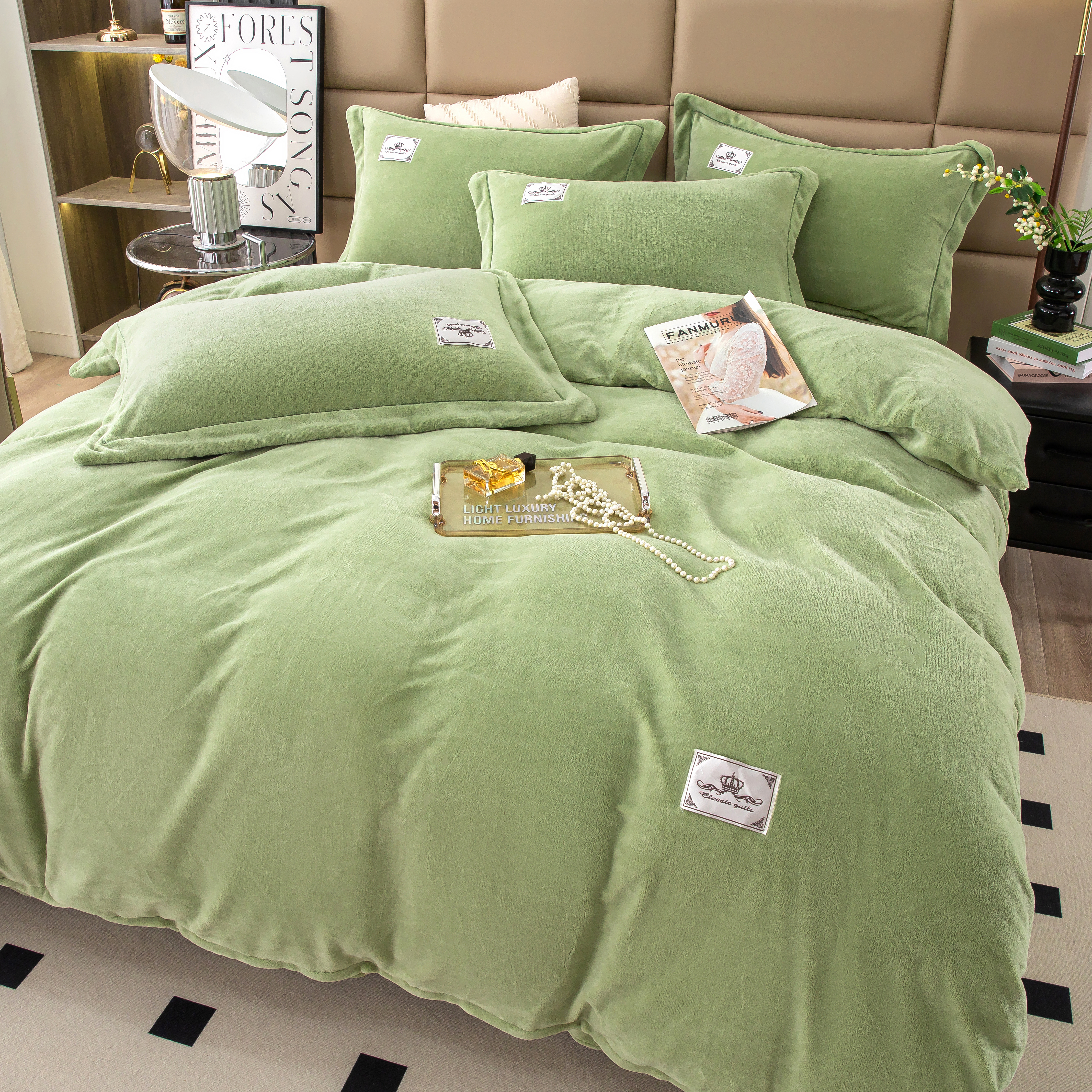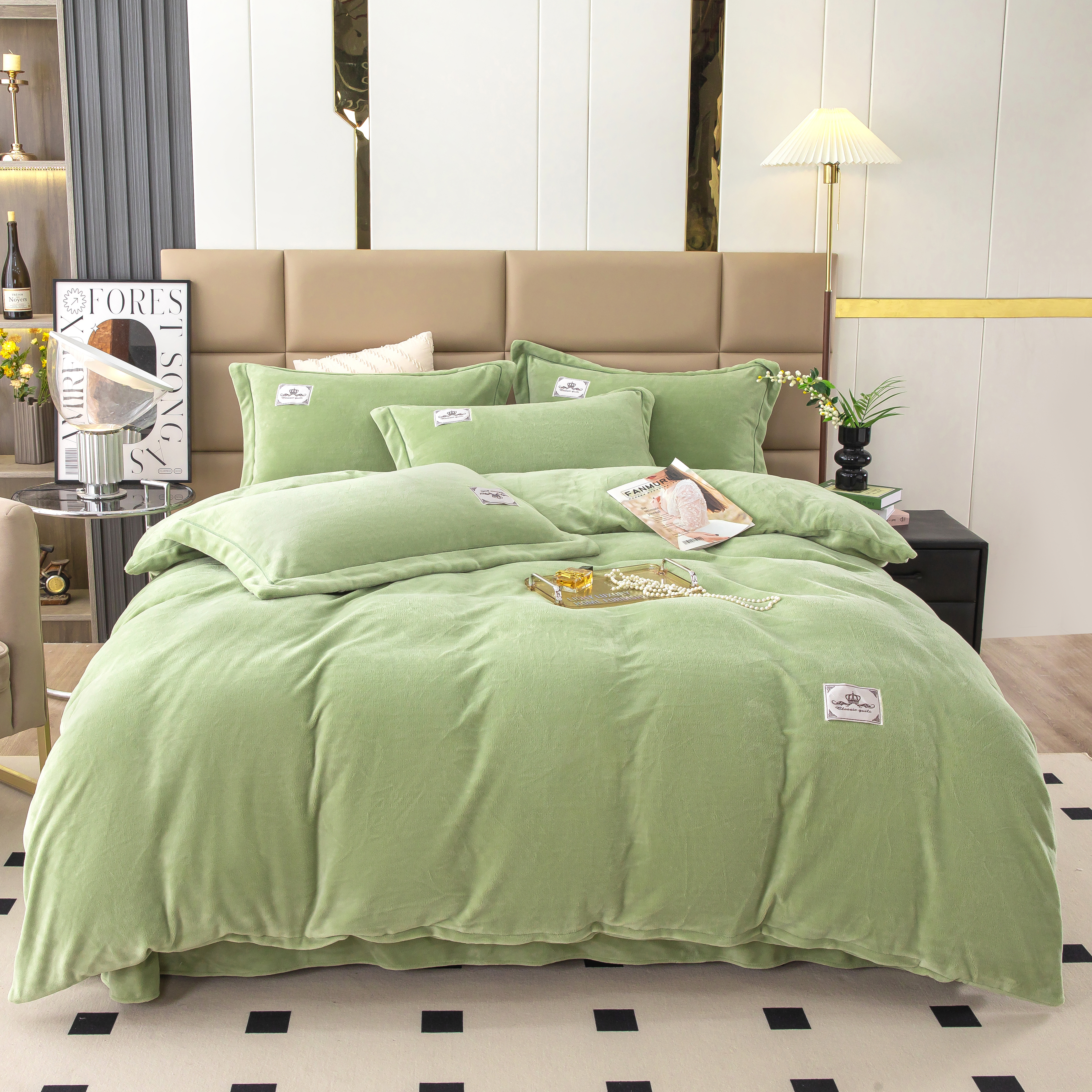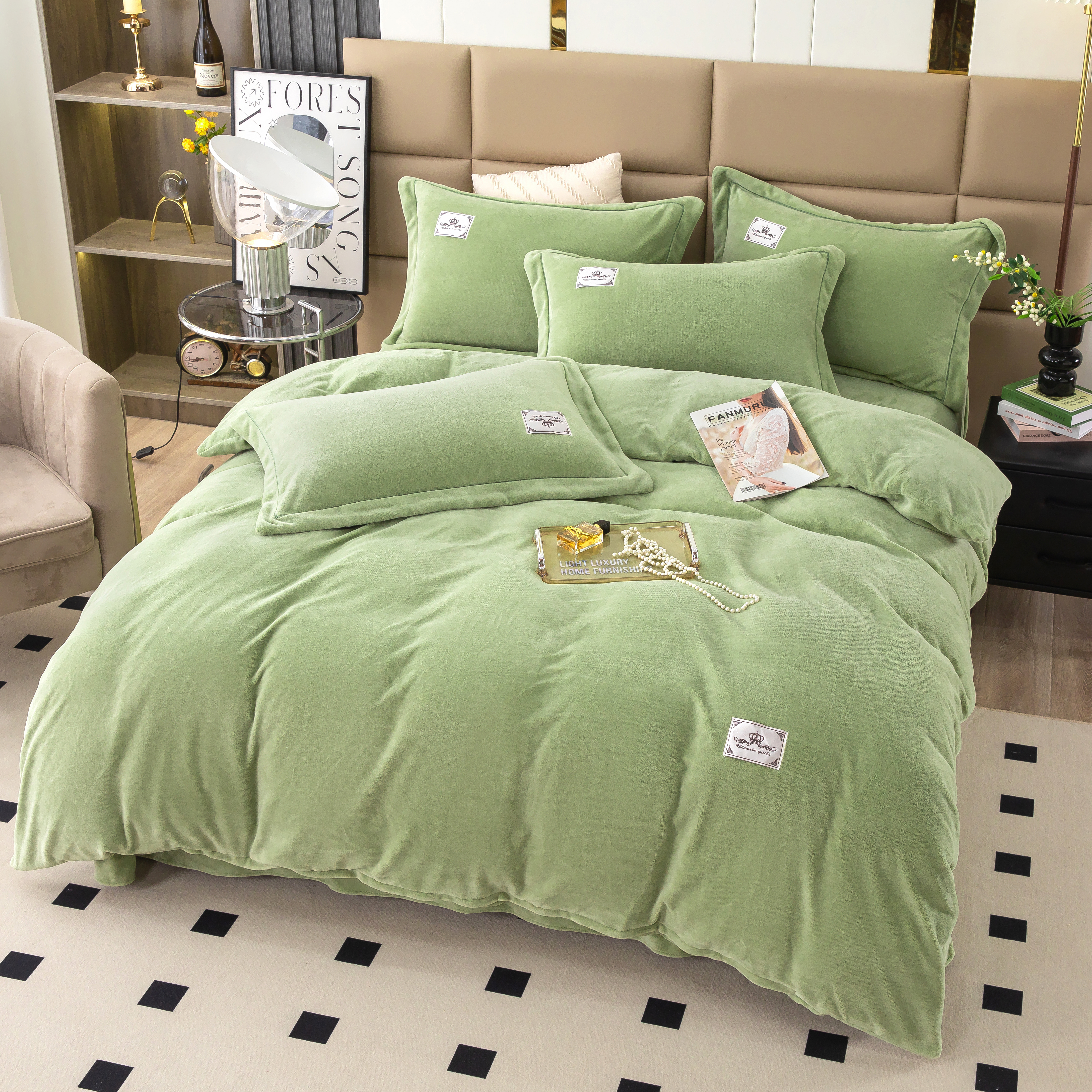 商品名称:优姿家纺 2025新款加厚全消光牛奶绒印花四件套 抹茶绿