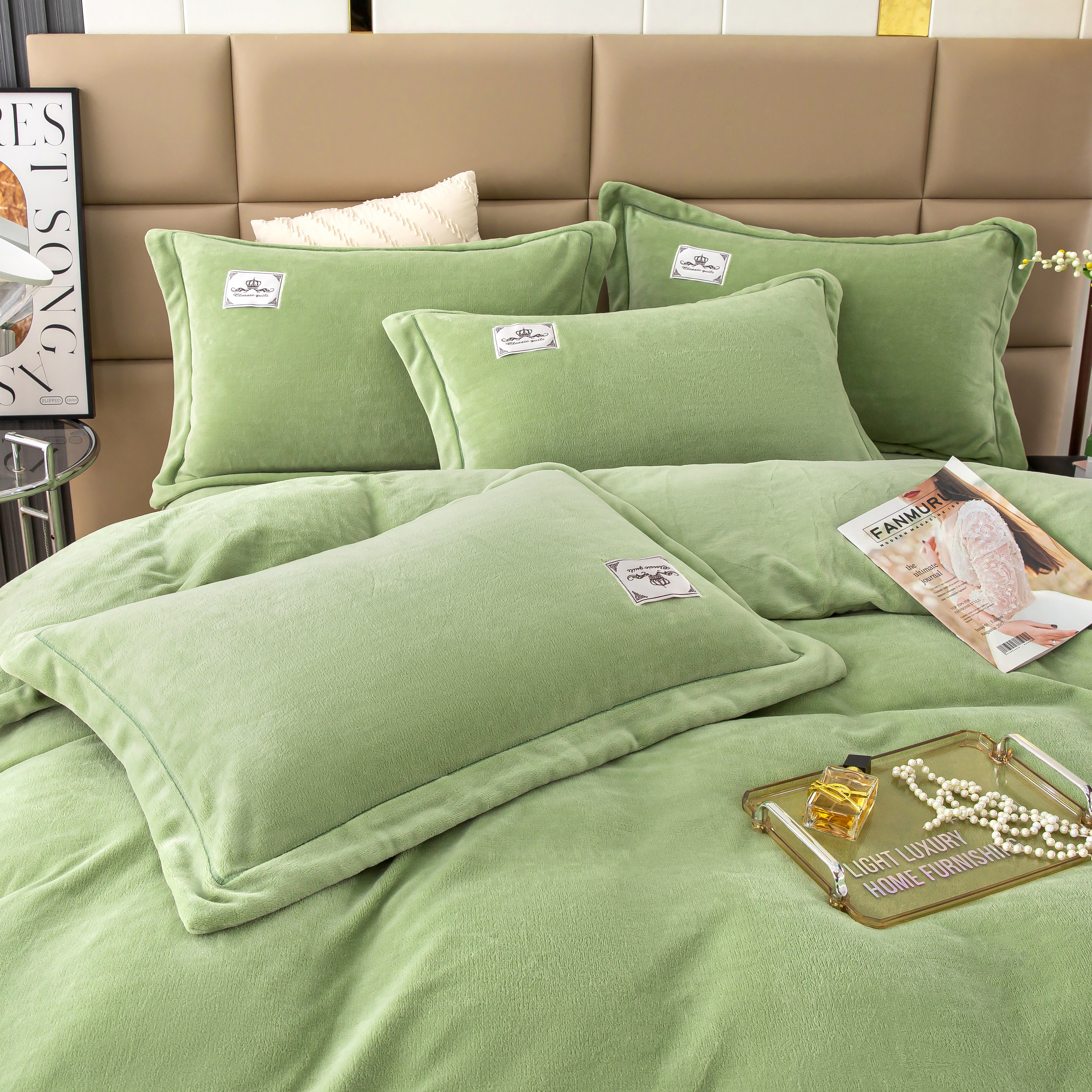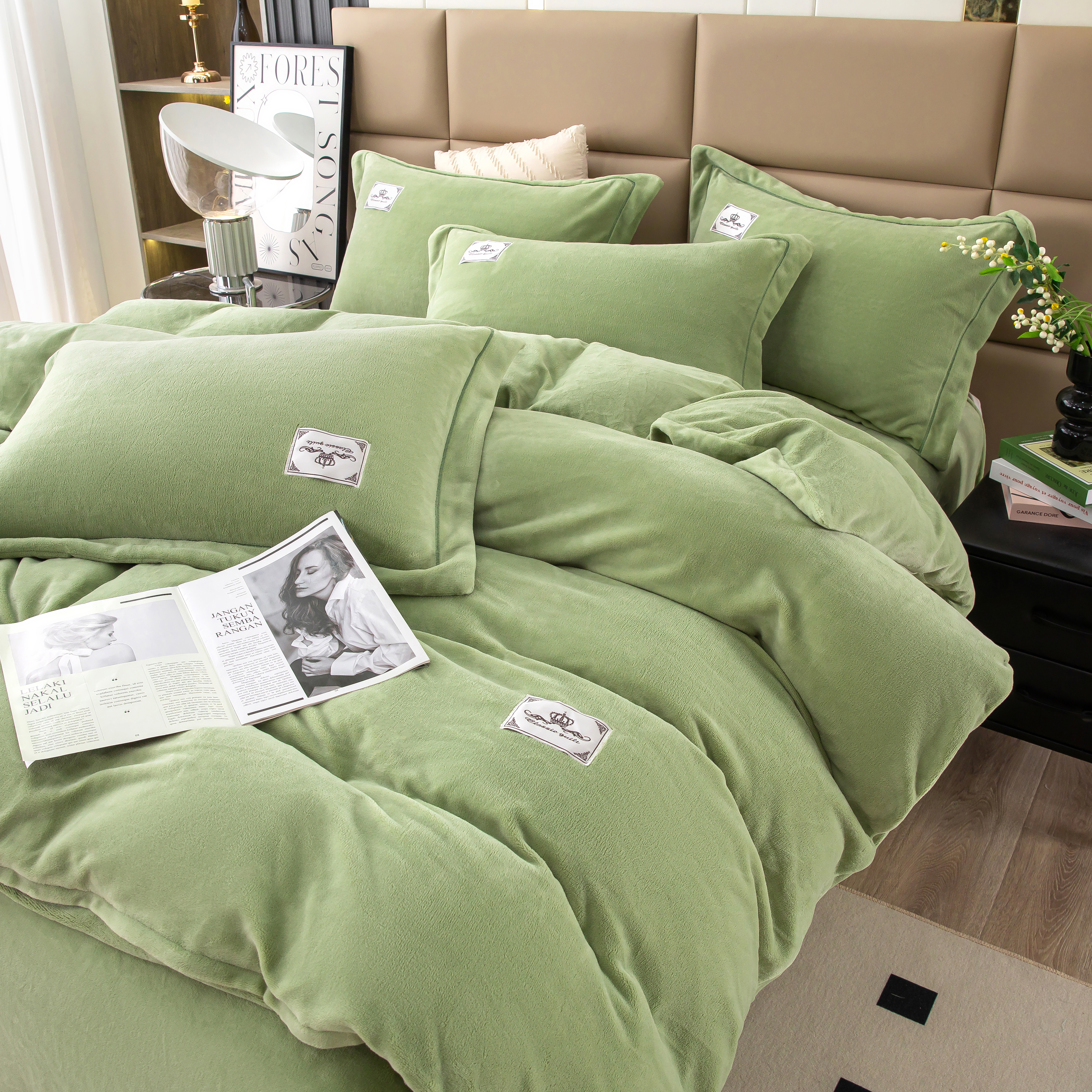 优姿家纺 2025新款加厚全消光牛奶绒印花四件套 抹茶绿