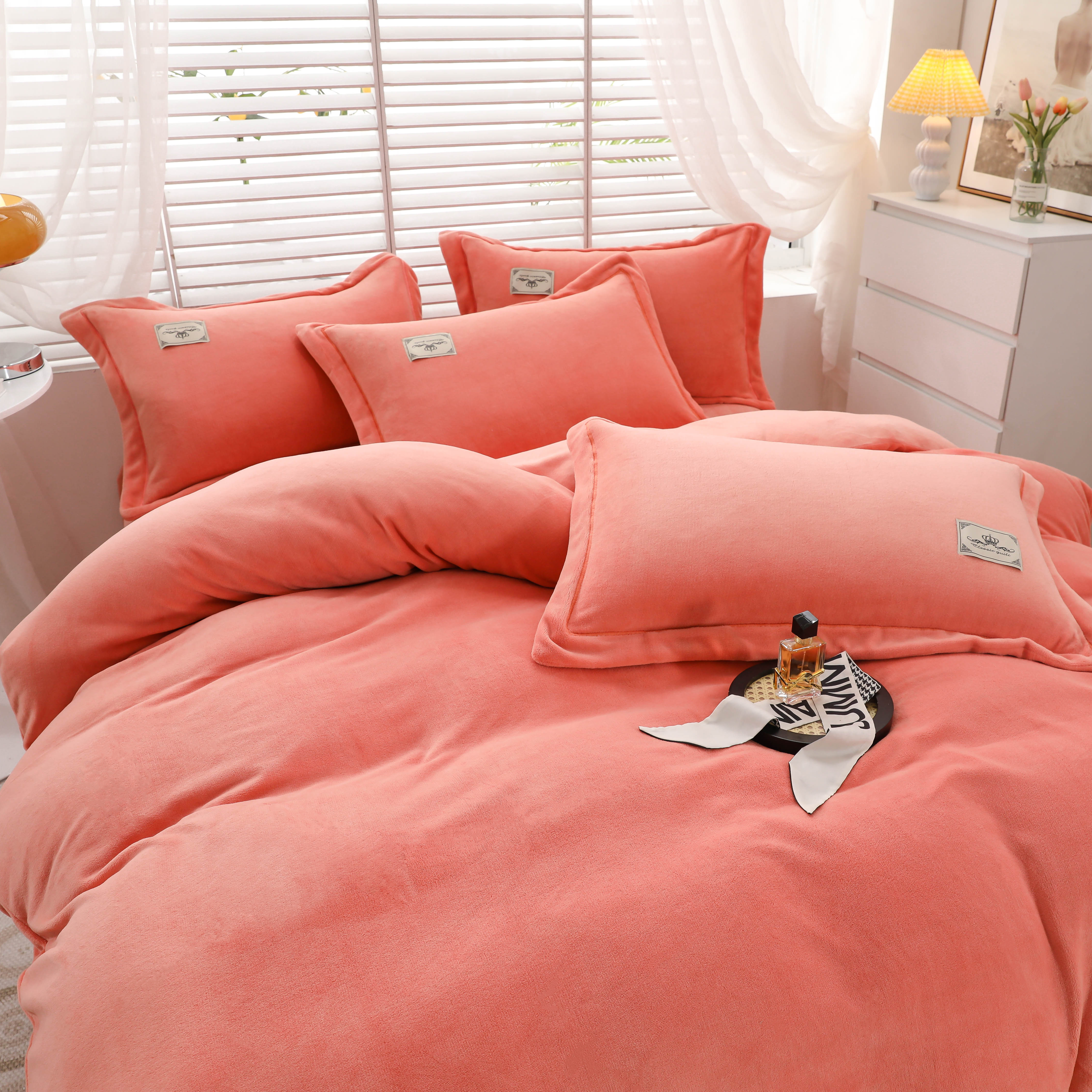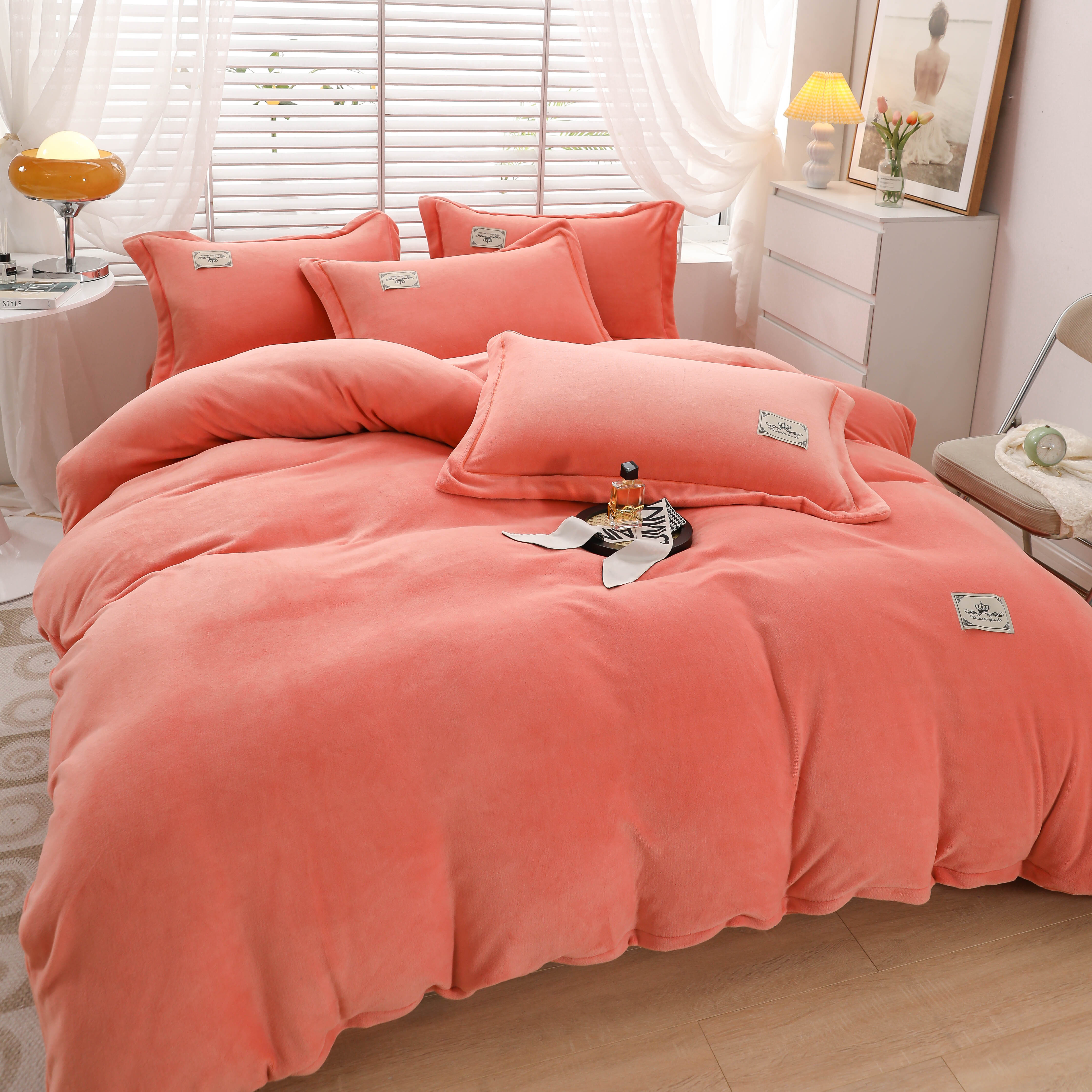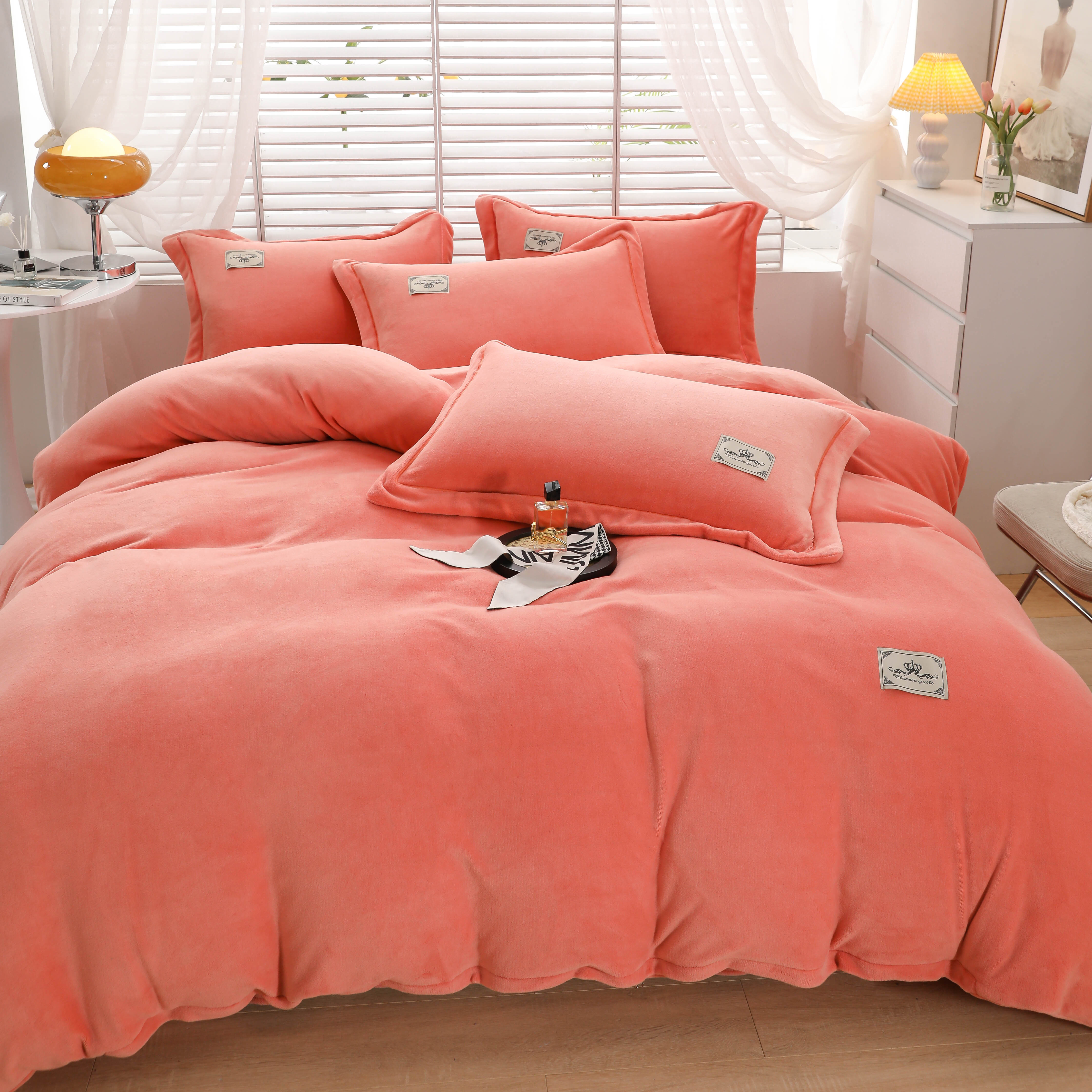 商品名称:优姿家纺 2025新款加厚全消光牛奶绒印花四件套 香妃桔
