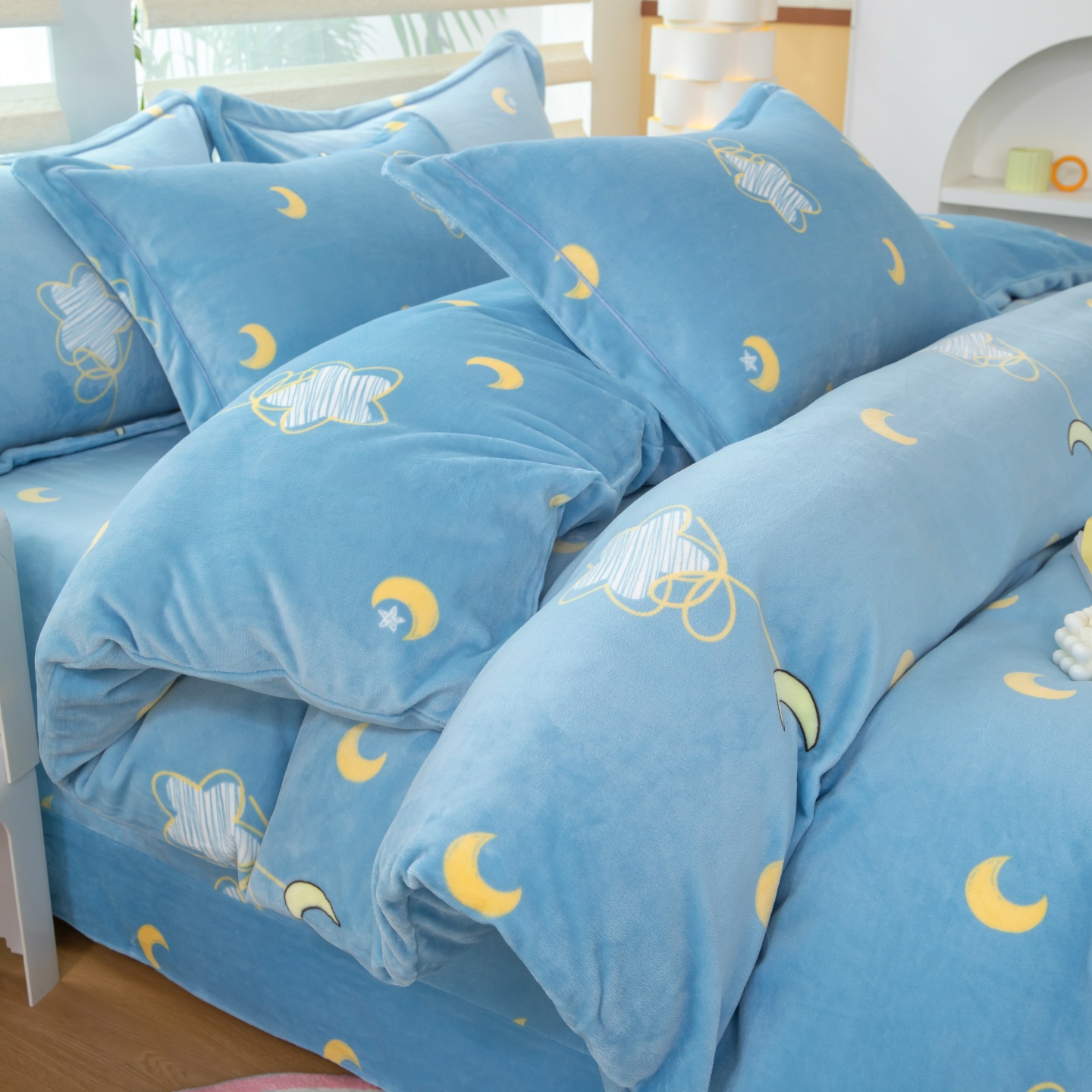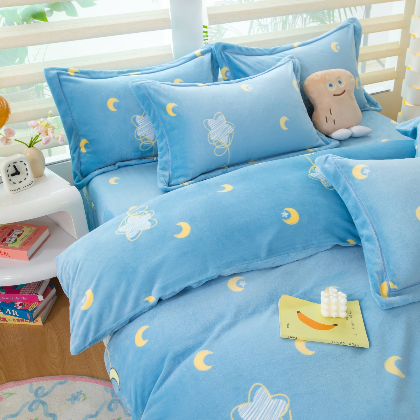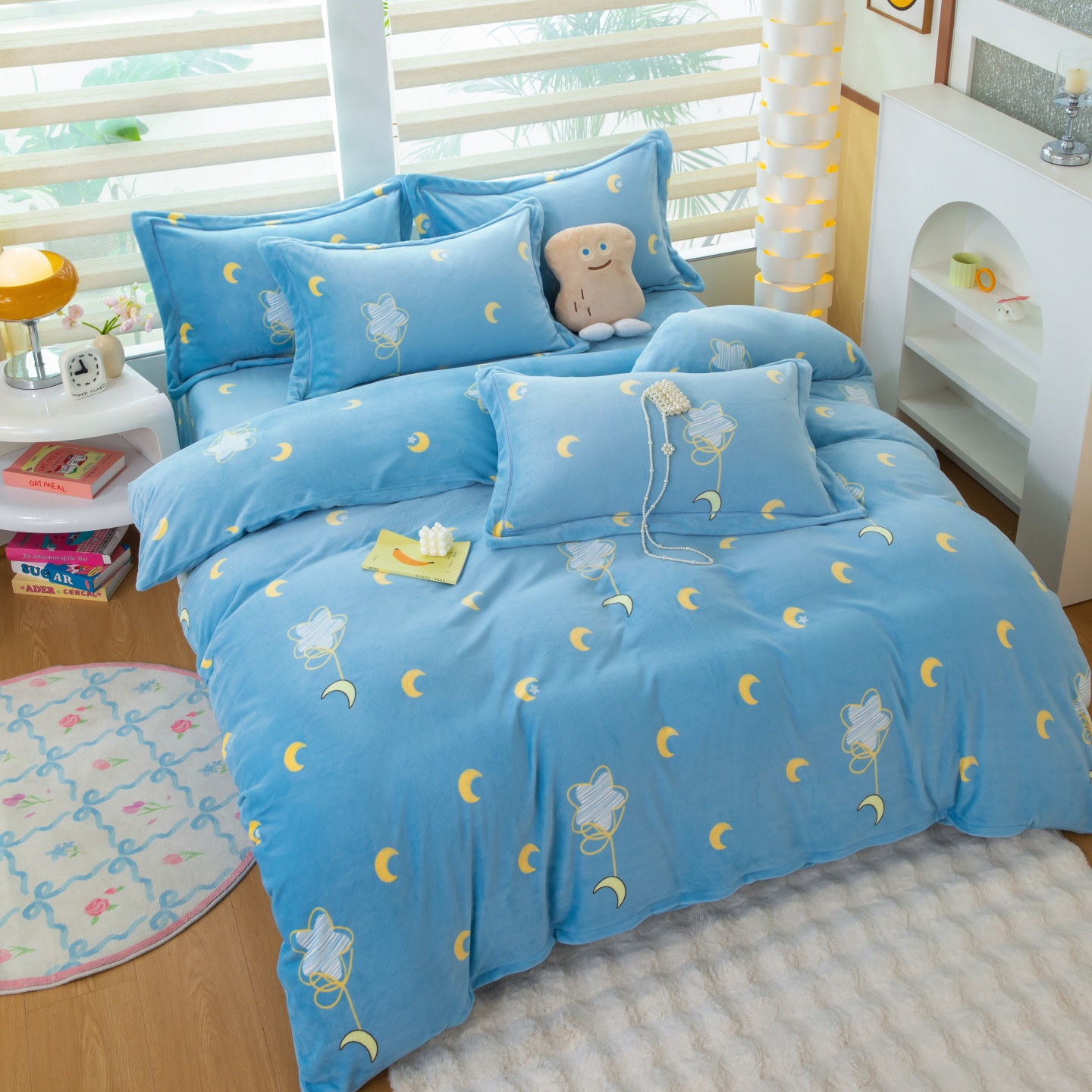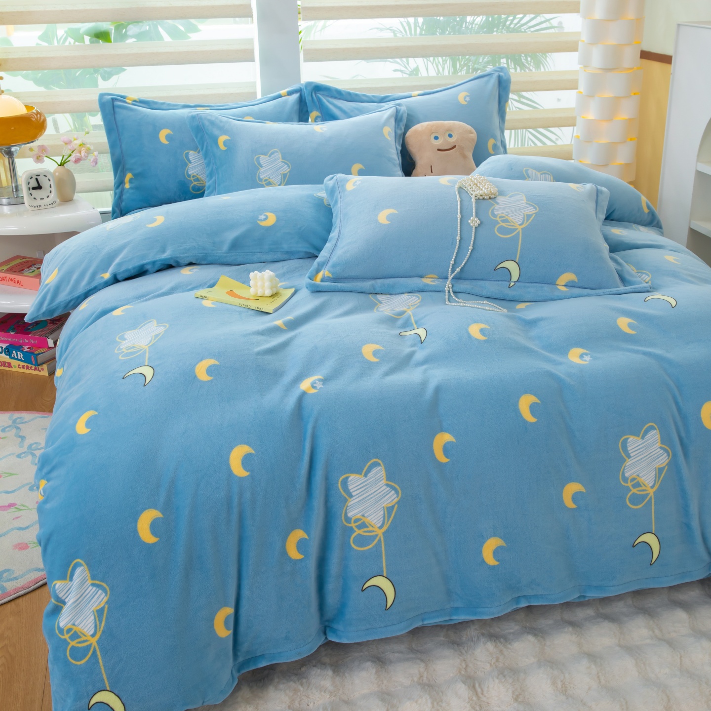 商品名称:优姿家纺 2025新款加厚全消光牛奶绒印花四件套 月亮弯弯