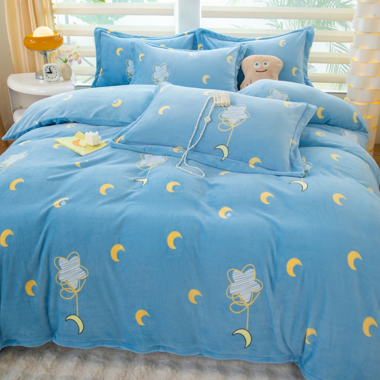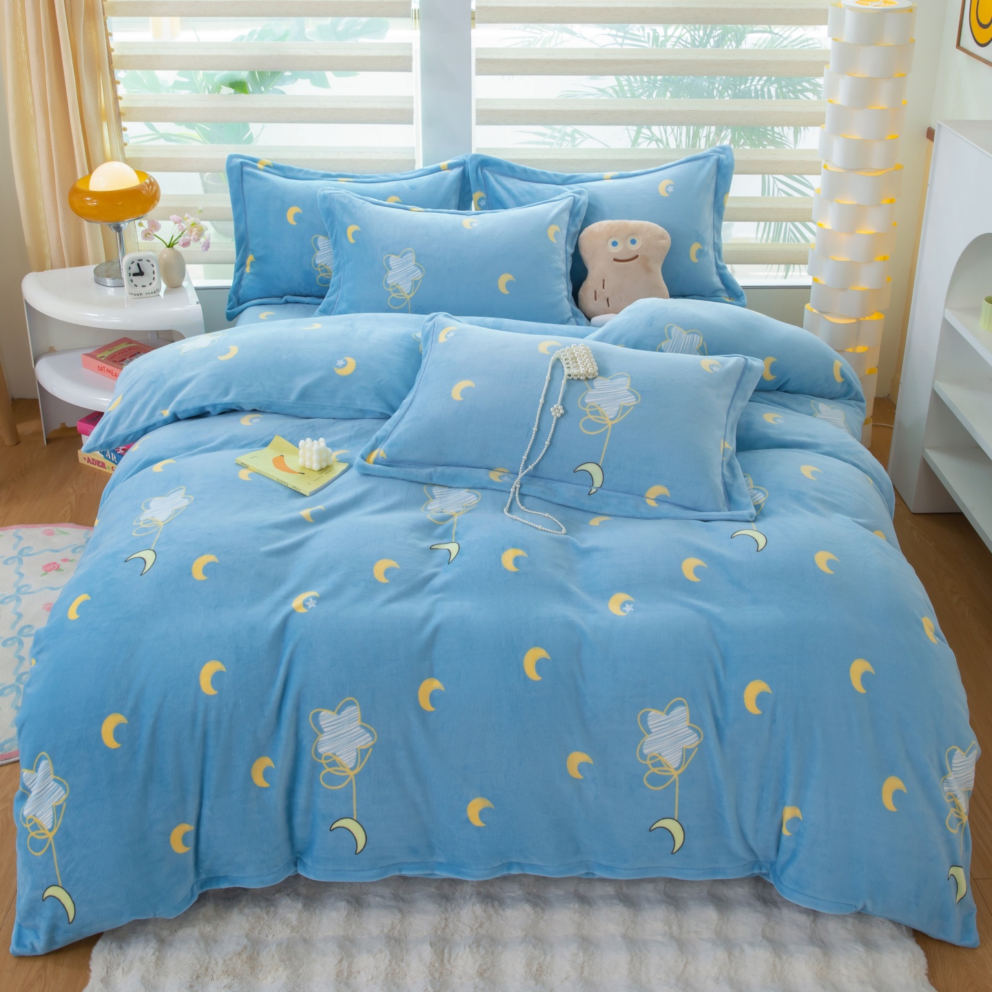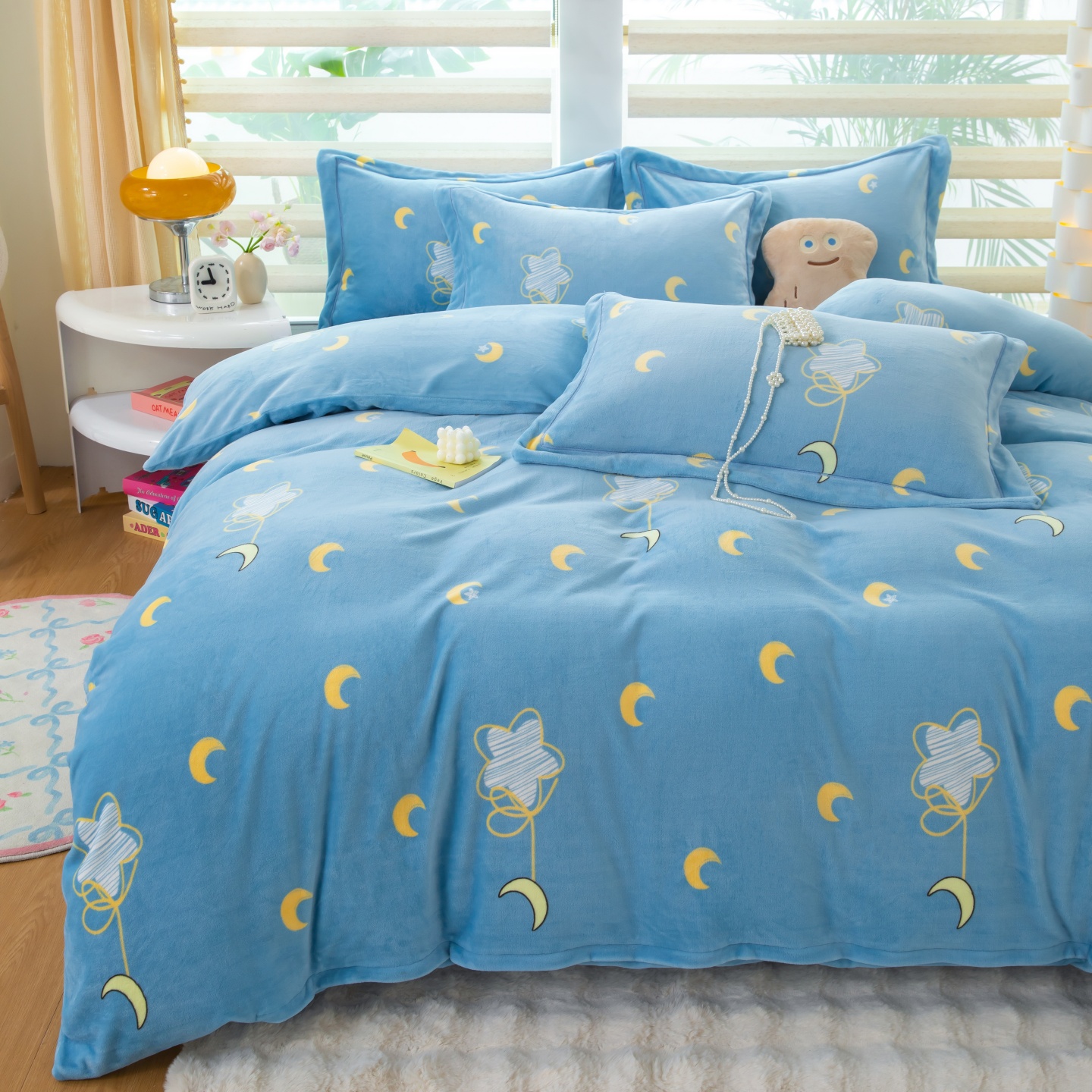 商品名称:优姿家纺 2025新款加厚全消光牛奶绒印花四件套 月亮弯弯