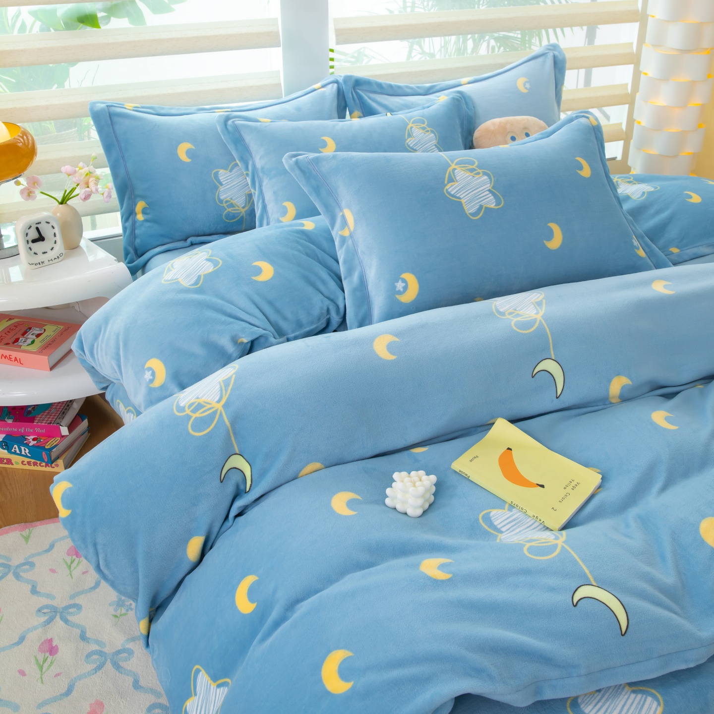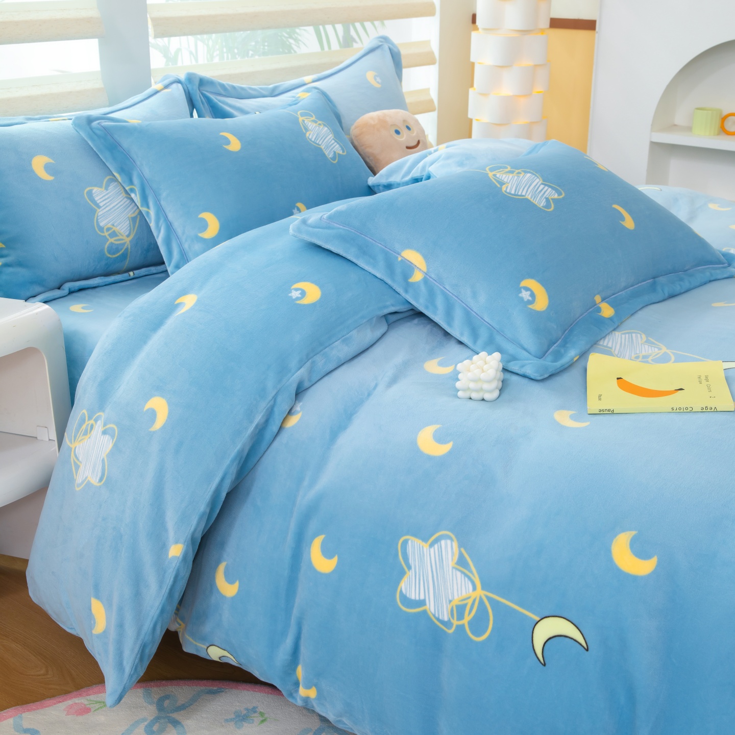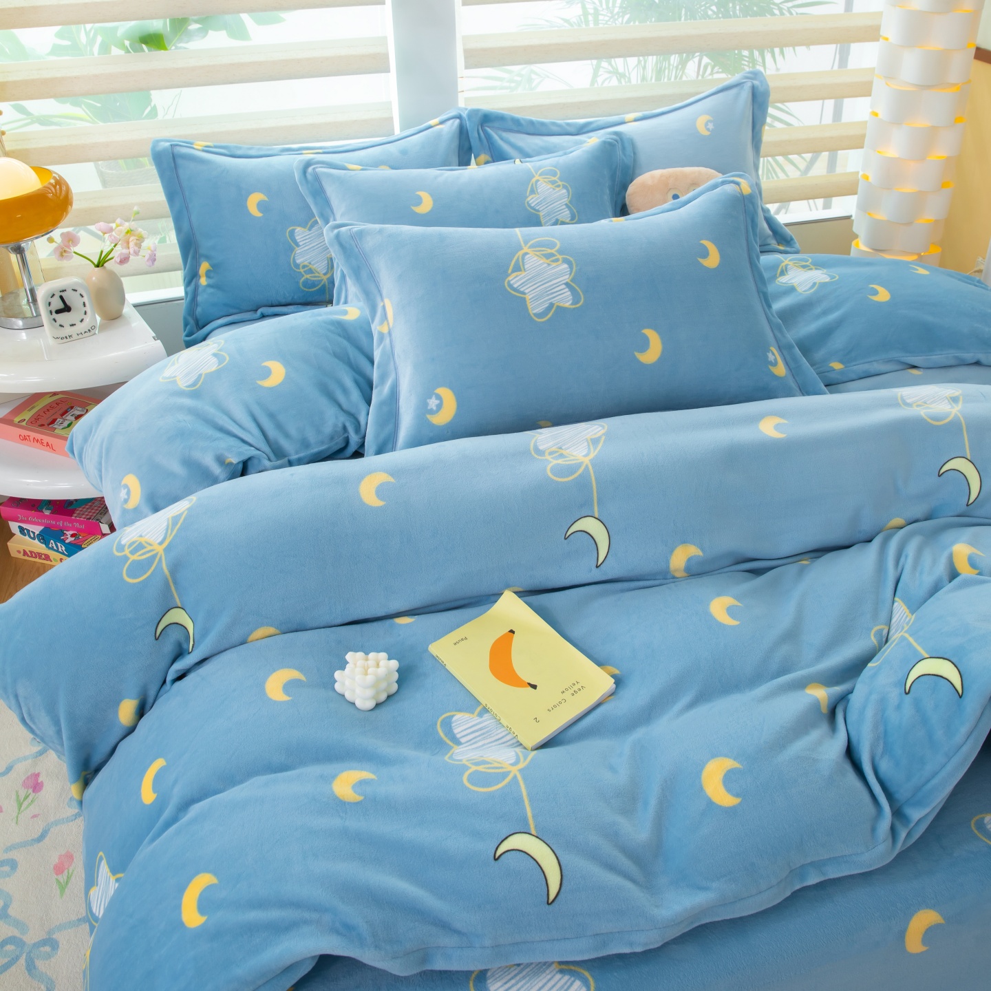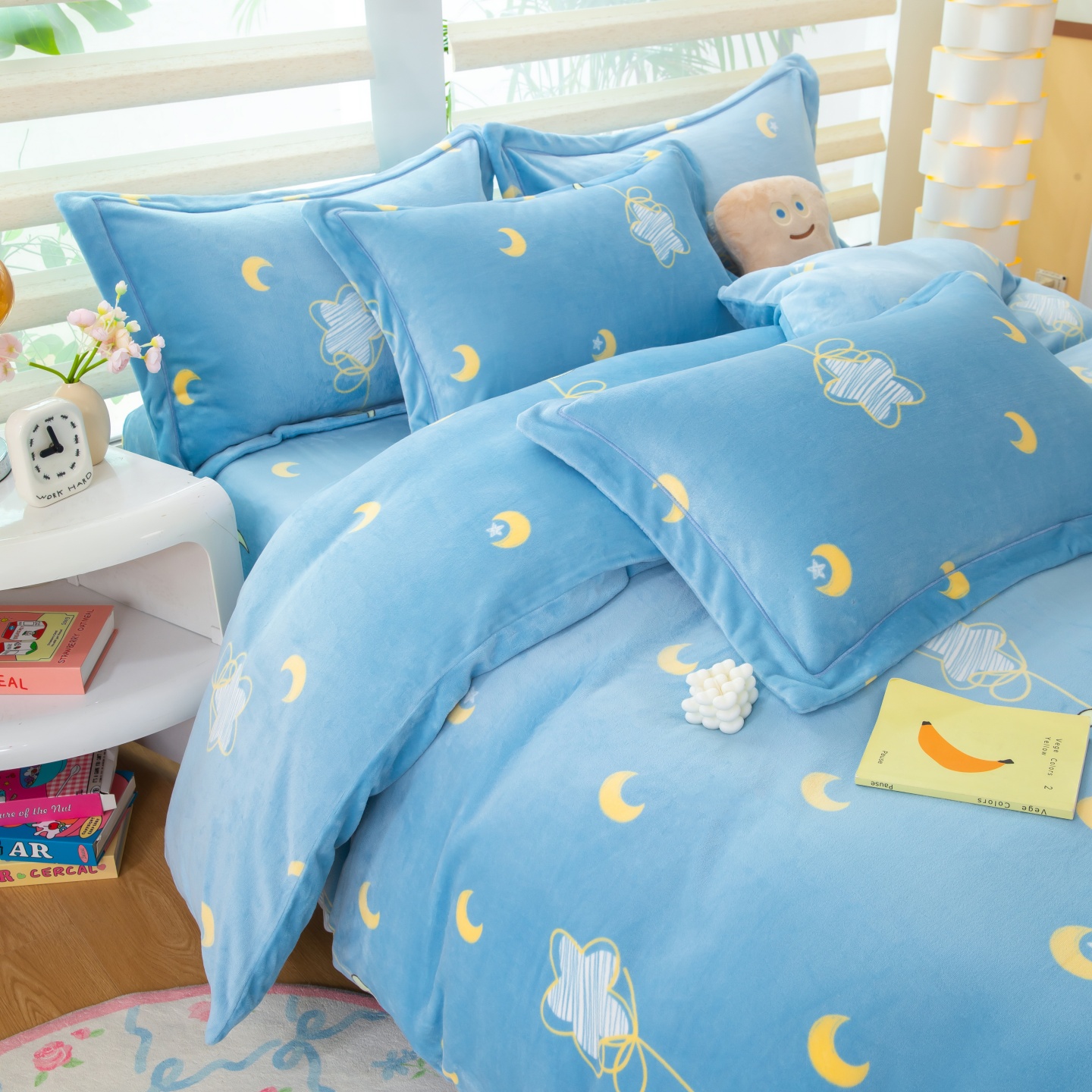 商品名称:优姿家纺 2025新款加厚全消光牛奶绒印花四件套 月亮弯弯