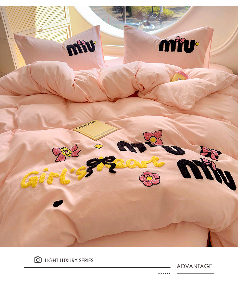 当前位置: 91家纺网 > 商品网购 > 床品套件 > 四件套 > 水洗棉四件套 > 韩秀家纺 2025新款水洗棉毛巾绣云朵棉四件套 心相印浅兰