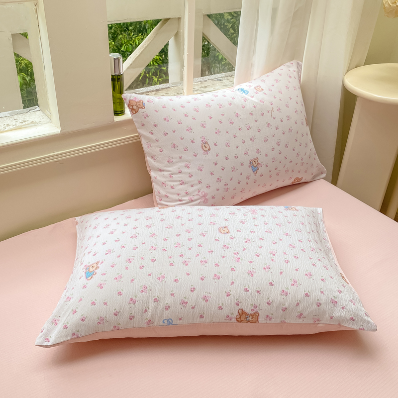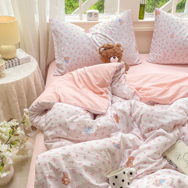 商品名称:朵朵家纺 2025新款云感提花双层纱印花单品被套 花町小能粉