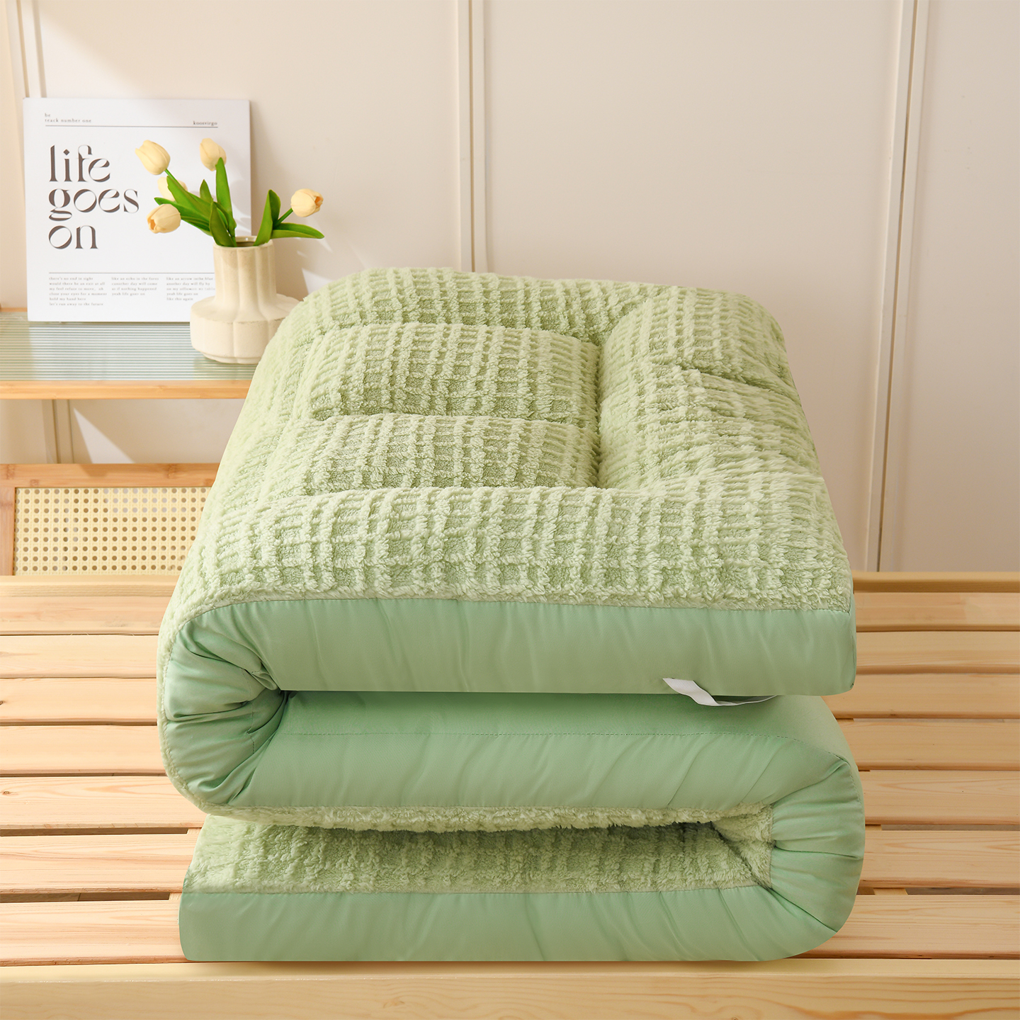 (总)预言家纺 2025新款亲肤方格绒系列床垫,卡其,抹茶绿,奶白,浅粉,深灰,椰子灰