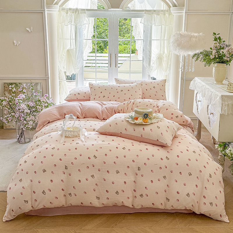 (总)木楌 2025新款全棉A类皱皱纱印花四件套,彼得熊,春泥,丁香-绿,丁香-紫,哈尼,海皮狗,涵雅,赫本熊,可心兰,可心咖,兰菲,美芽,木兰,奶油爱心,奶油波点,宁静,浅汐,沁香,微笑,星月,宾果熊,初颜,璎珞,花与兔,洛依,清新草莓,芮芮花,小彩蘑,小恐龙,小熊猫,幸运草,樱桃,知音,紫萱,小南国