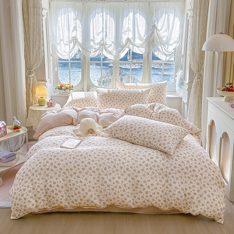 商品名称:木楌家居 2025新款A类全棉皱皱纱印花四件套 伊洛娜