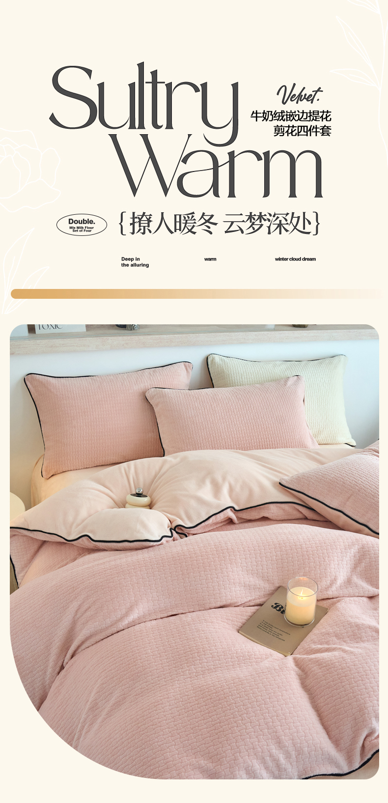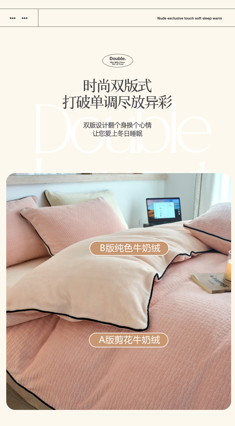 当前位置: 91家纺网 > 商品网购 > 床品套件 > 四件套 > 牛奶绒四件套 > 兰紫橙家纺 2025新款牛奶绒嵌边提花剪花四件套(含买家秀) 心链-少女粉