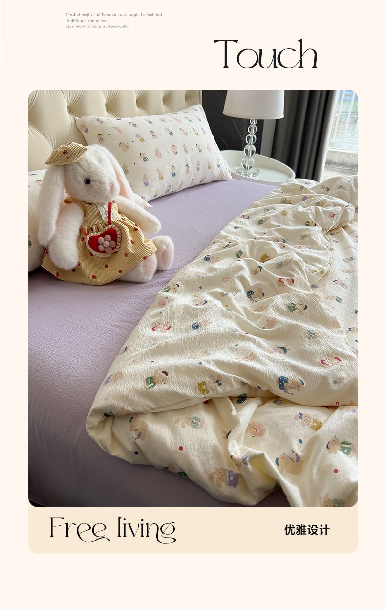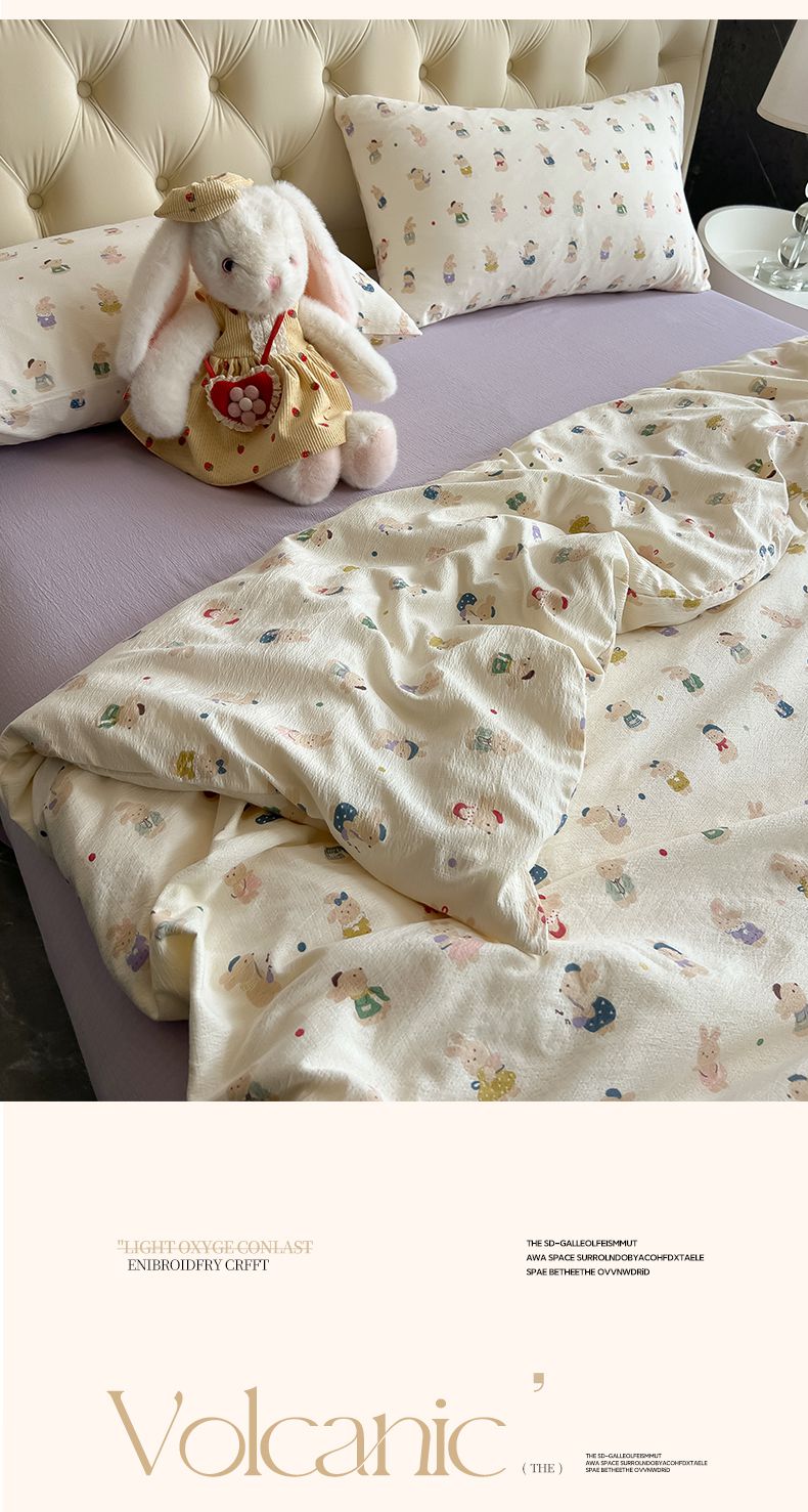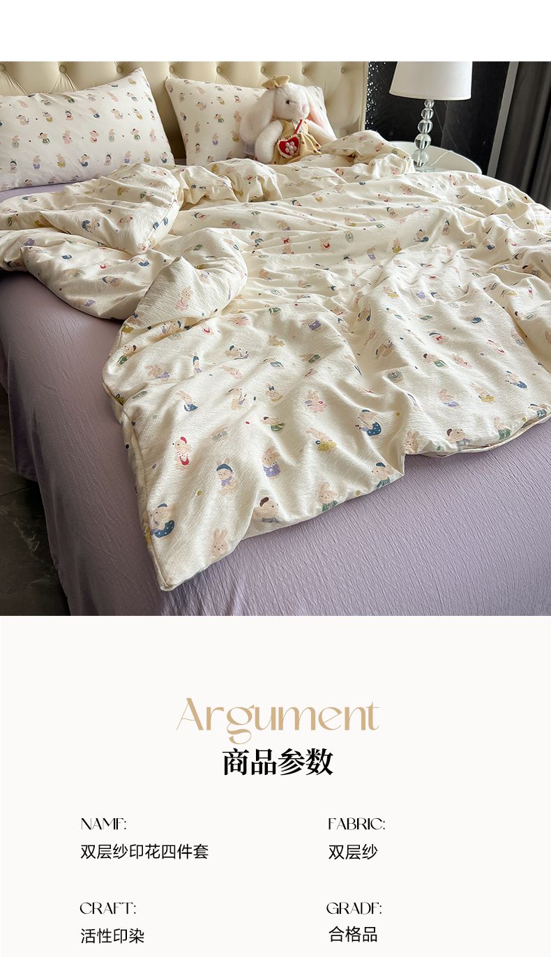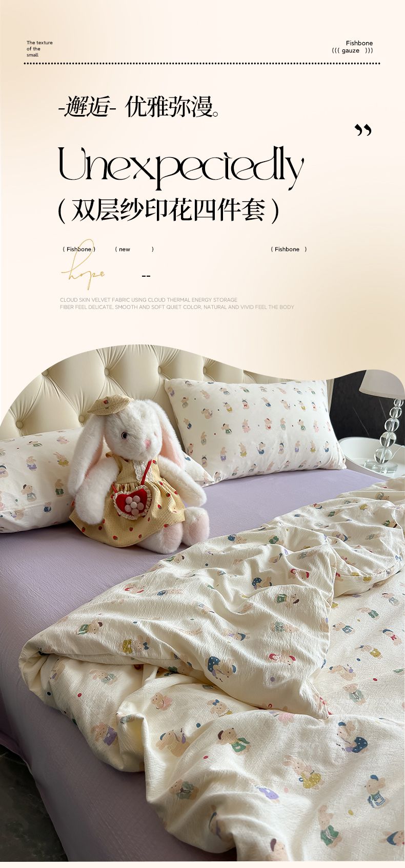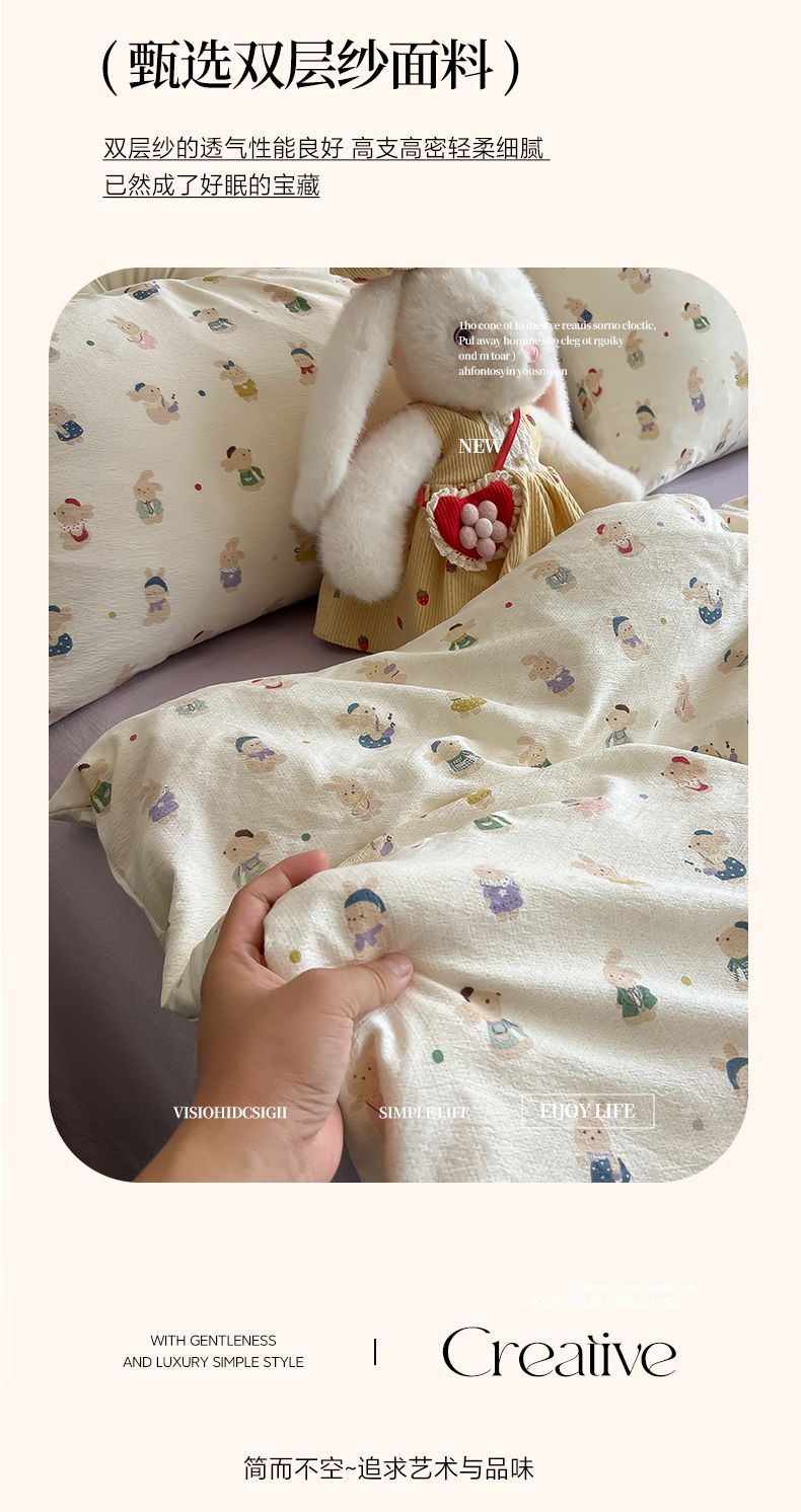 当前位置: 91家纺网 > 商品网购 > 床品套件 > 四件套 > 双层纱四件套 > 韩巢家纺 2025新款双层纱床上用品四件套热销款超柔学生宿舍床单被套三件套 兔子集合