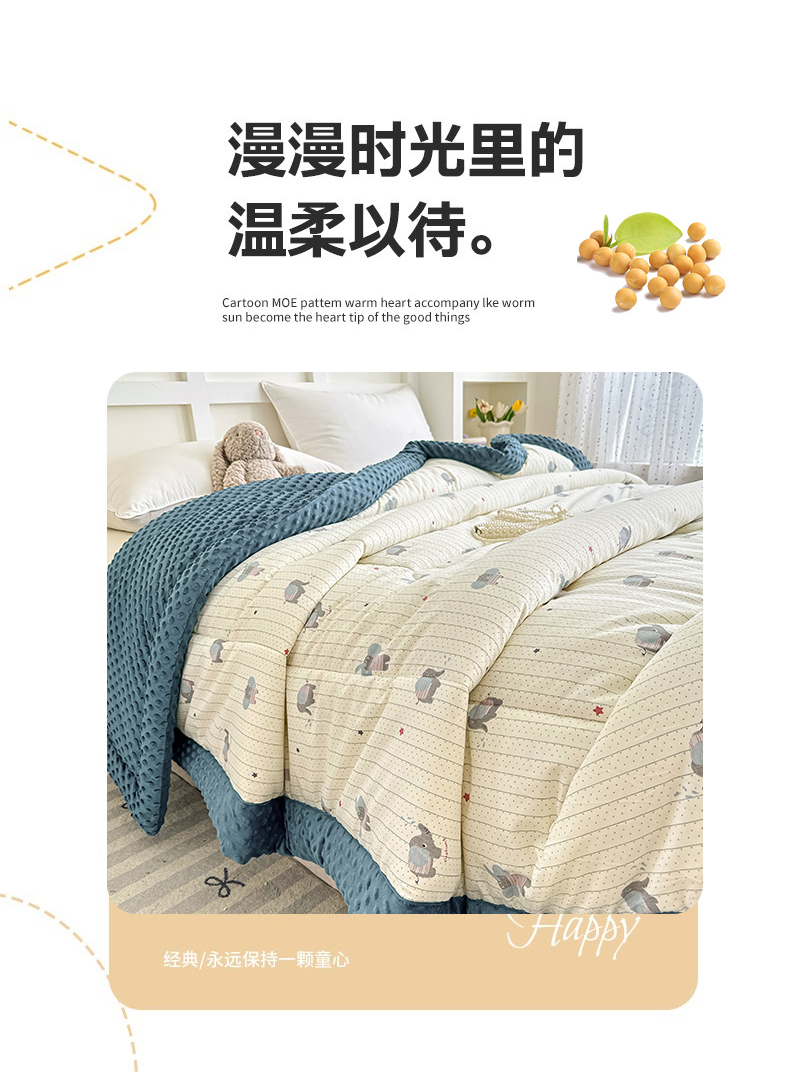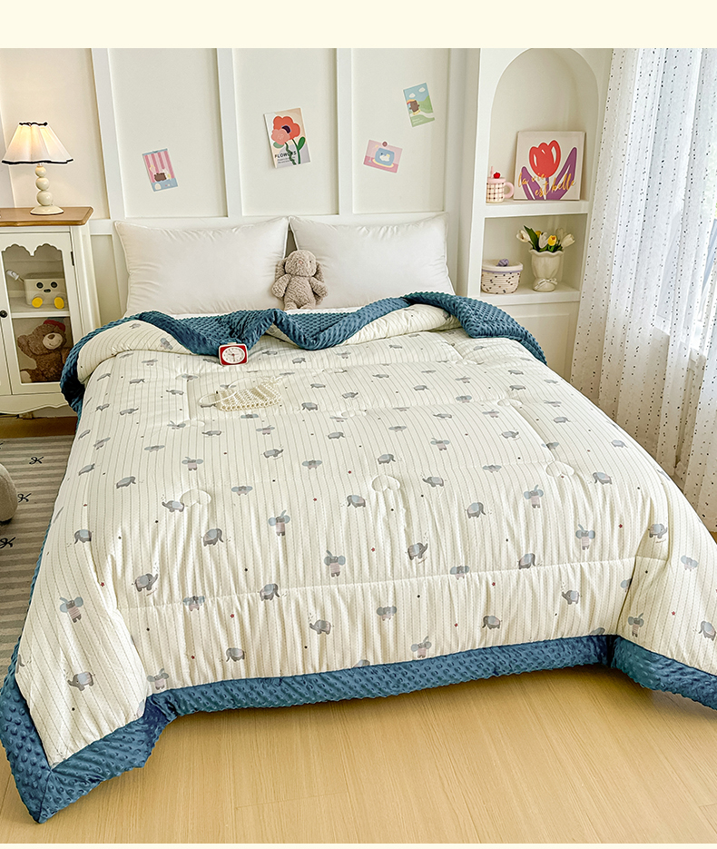 • 91家纺网 家纺一手货源 找家纺 宜梦家居 2025新款全棉纯棉豆豆被被子被芯 BT-跳跳象