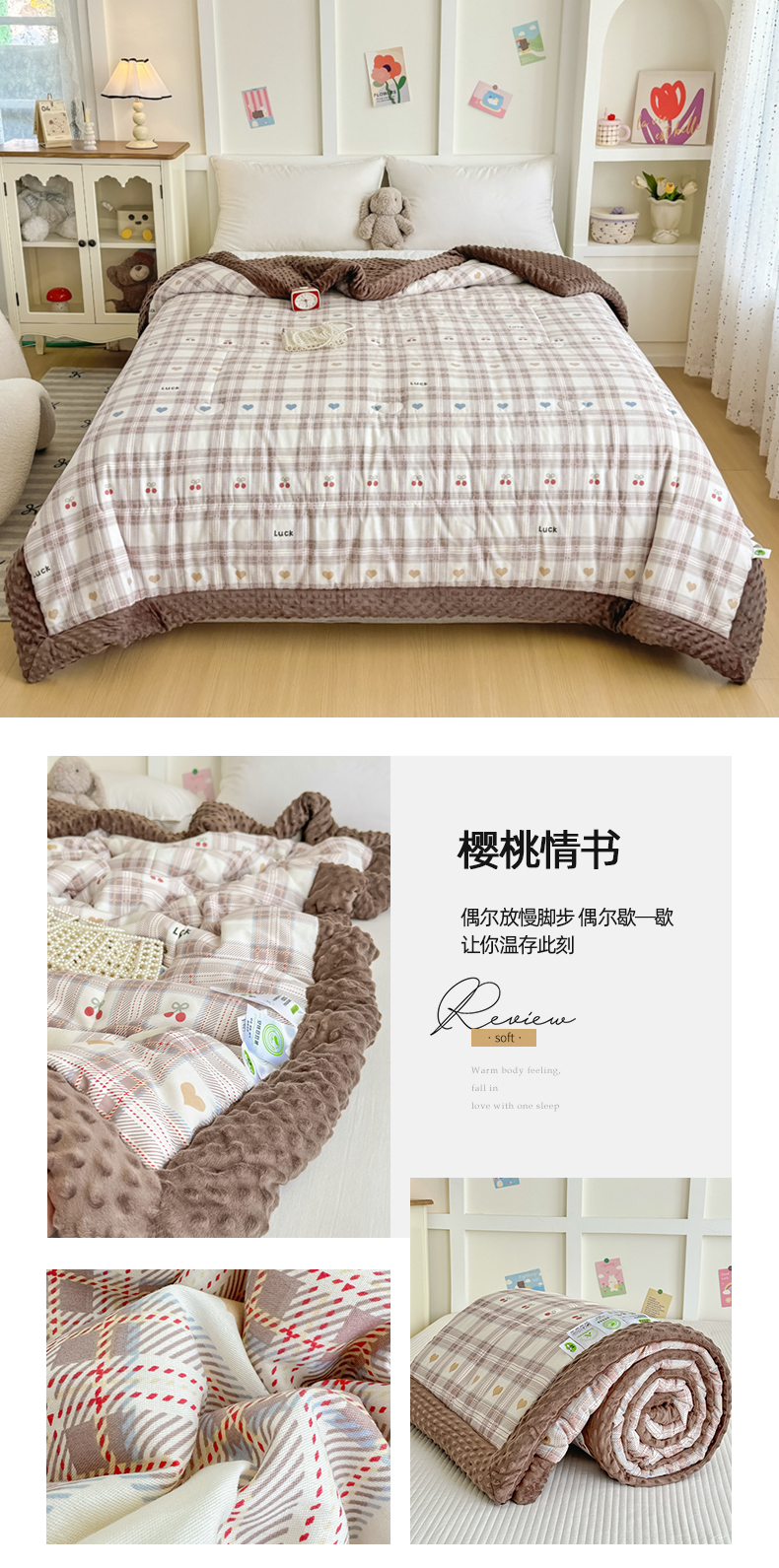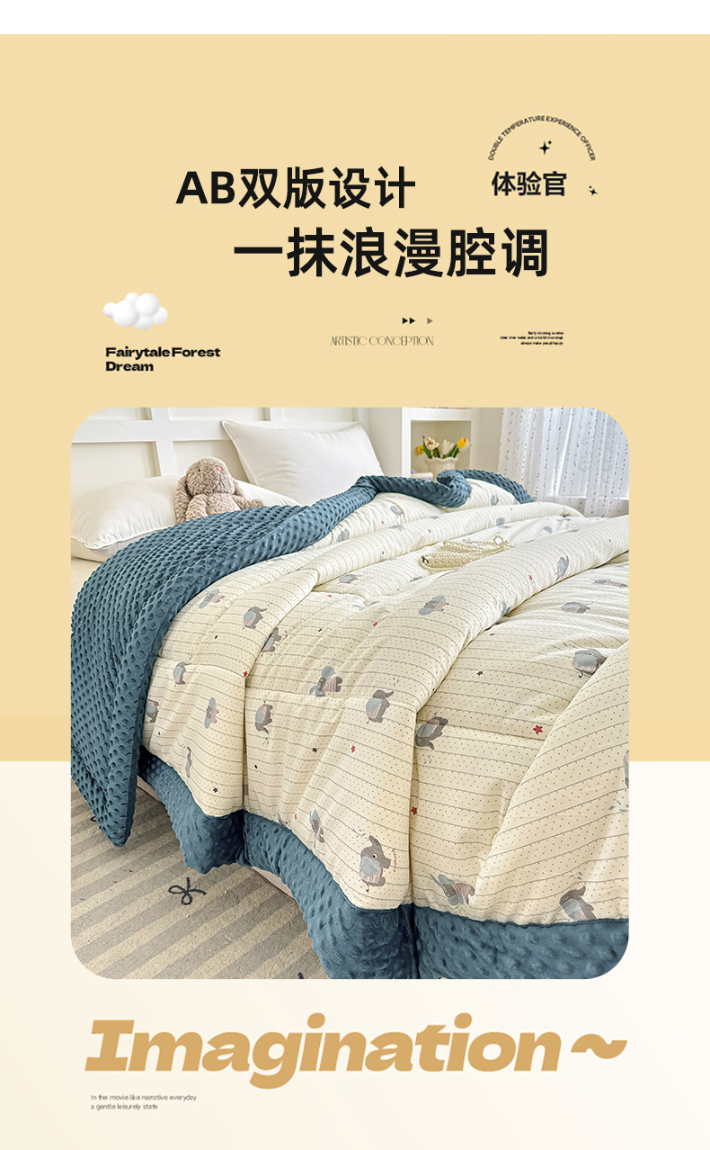 (总)宜梦家居【需要买家秀请联系老板】 2025新款双面纯棉夹层新疆棉花高温砂洗全棉床盖,爱达拉蓝,爱达拉粉,呆萌熊咖,迪克奥莱,美味樱桃,清茶小熊,踏春小兔,甜蜜小兔,仙草兔,银杉之梦