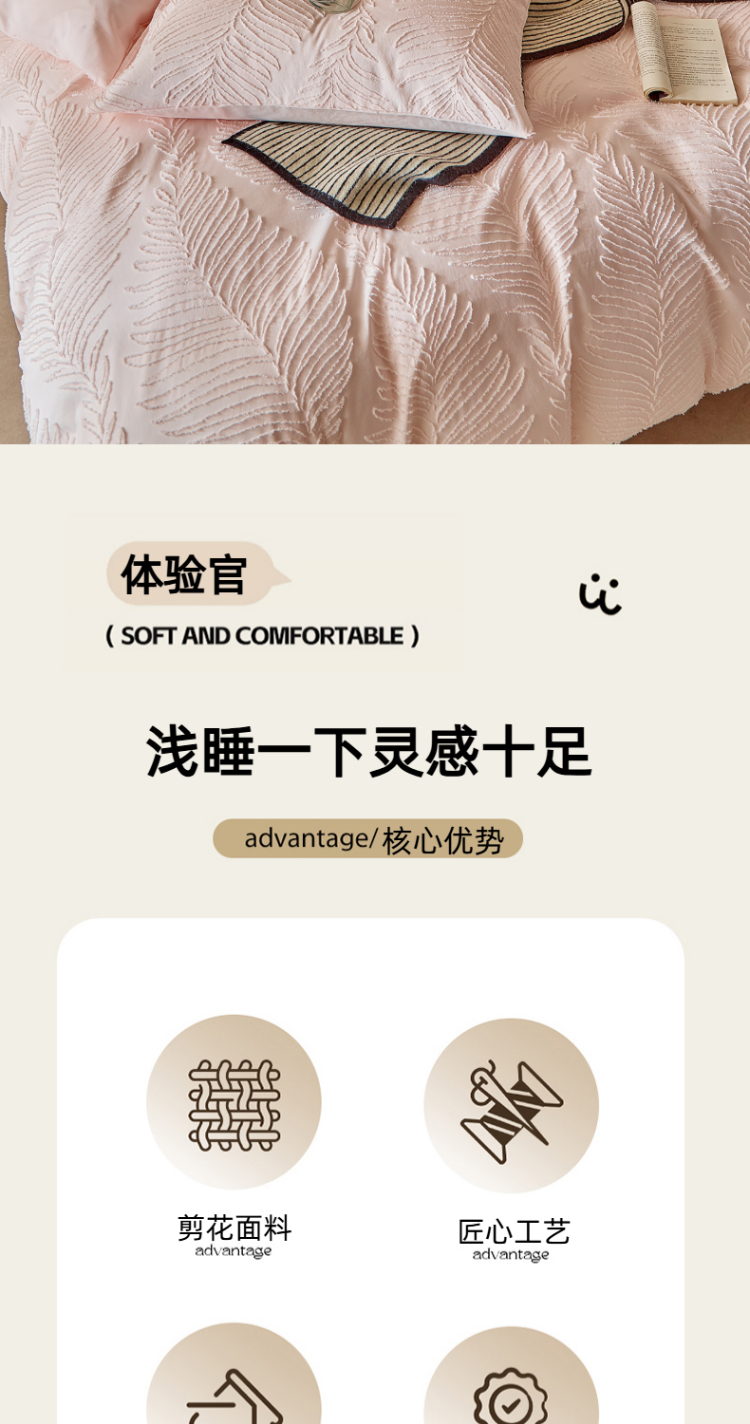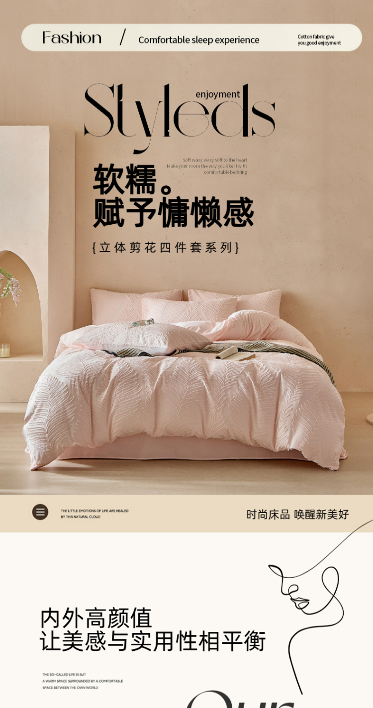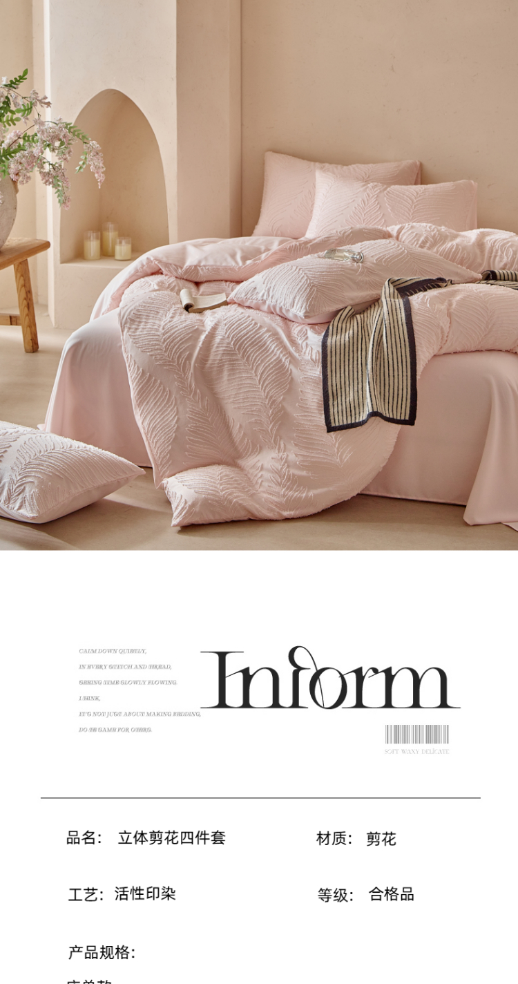 当前位置: 91家纺网 > 商品网购 > 床品套件 > 四件套 > 磨毛活性四件套 > 缘生活 2025年新款剪花针叶四件套四季款(民宿首选) 剪花针叶-浅粉