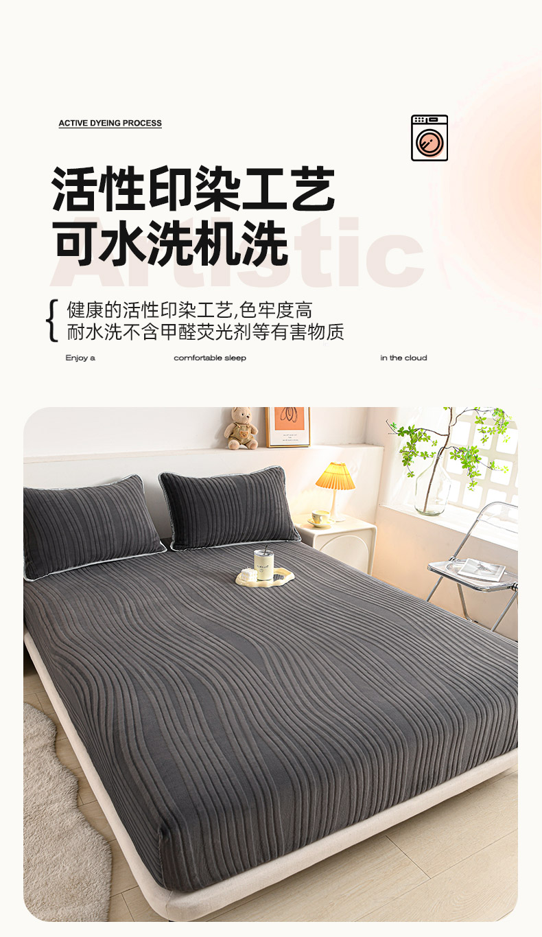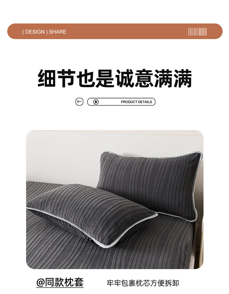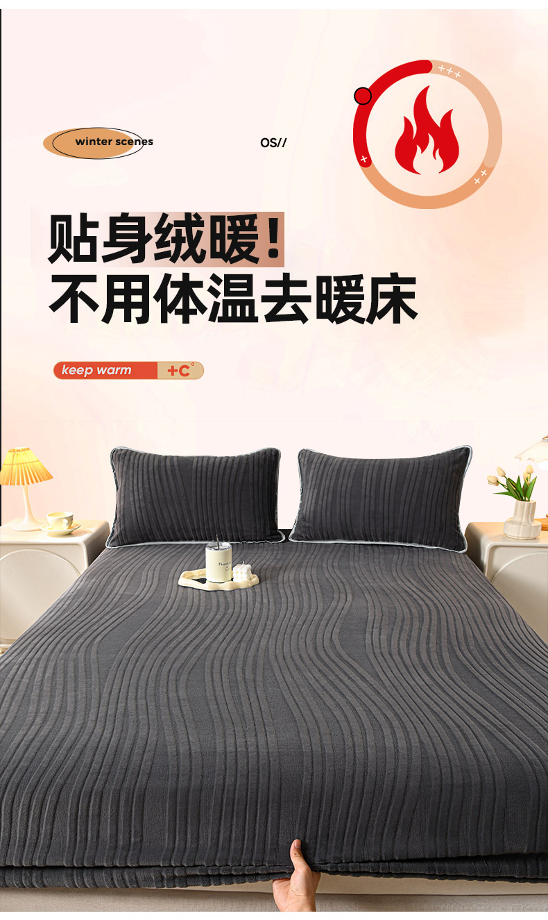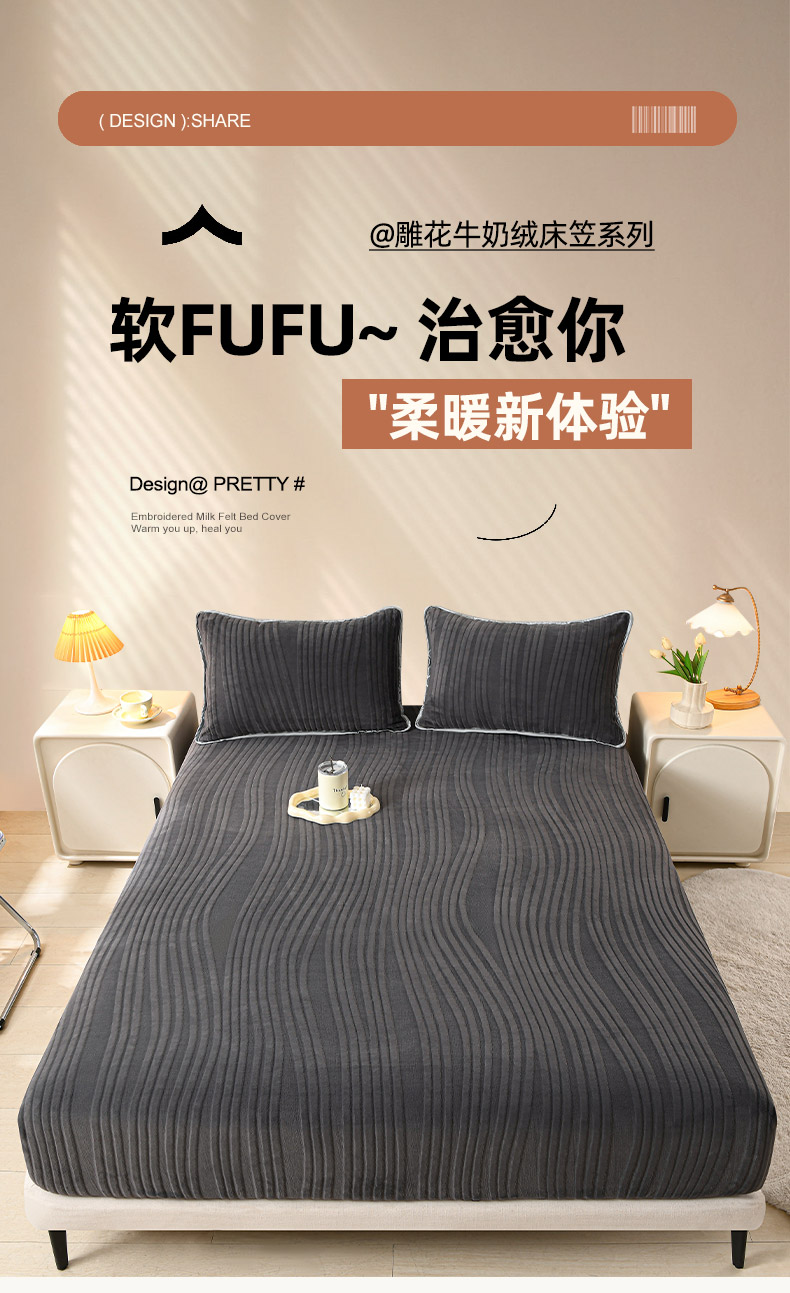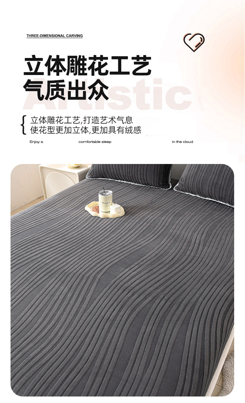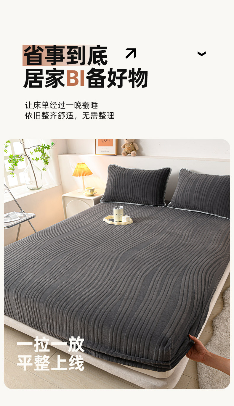 • 91家纺网 家纺一手货源 找家纺 推推家纺 2025新款雕花加厚牛奶绒床笠 条纹时代-深灰