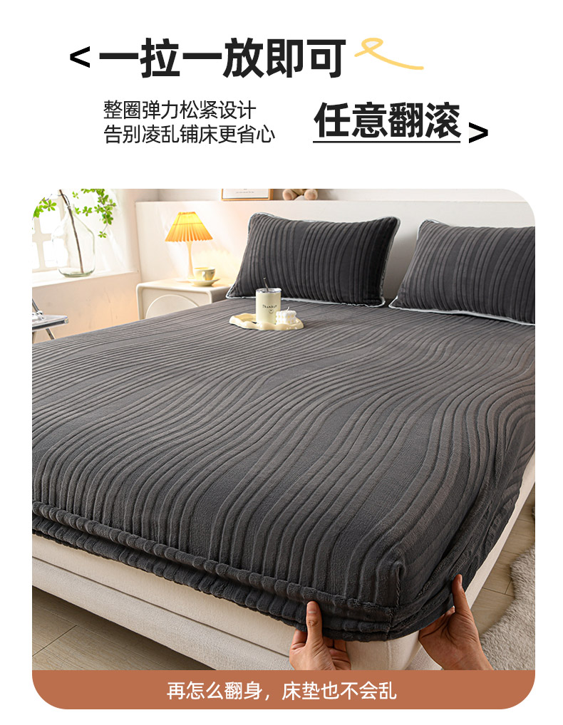 推推家纺 2025新款雕花加厚牛奶绒床笠 条纹时代-深灰