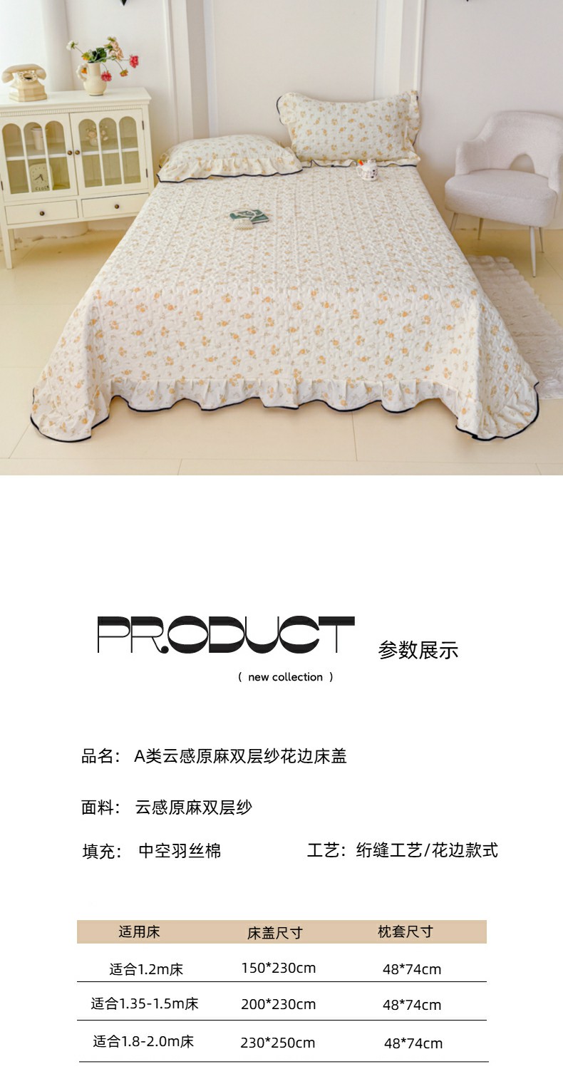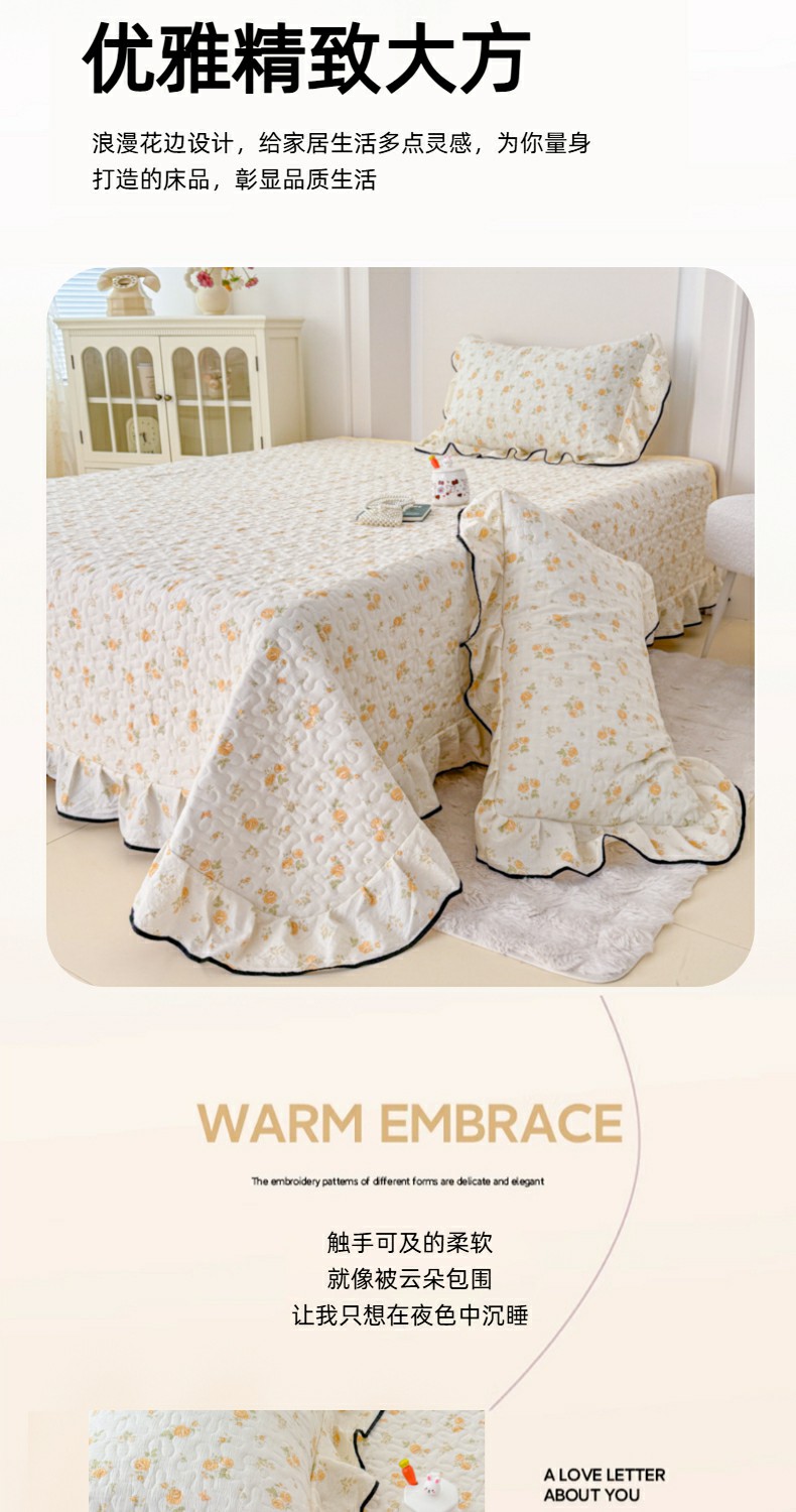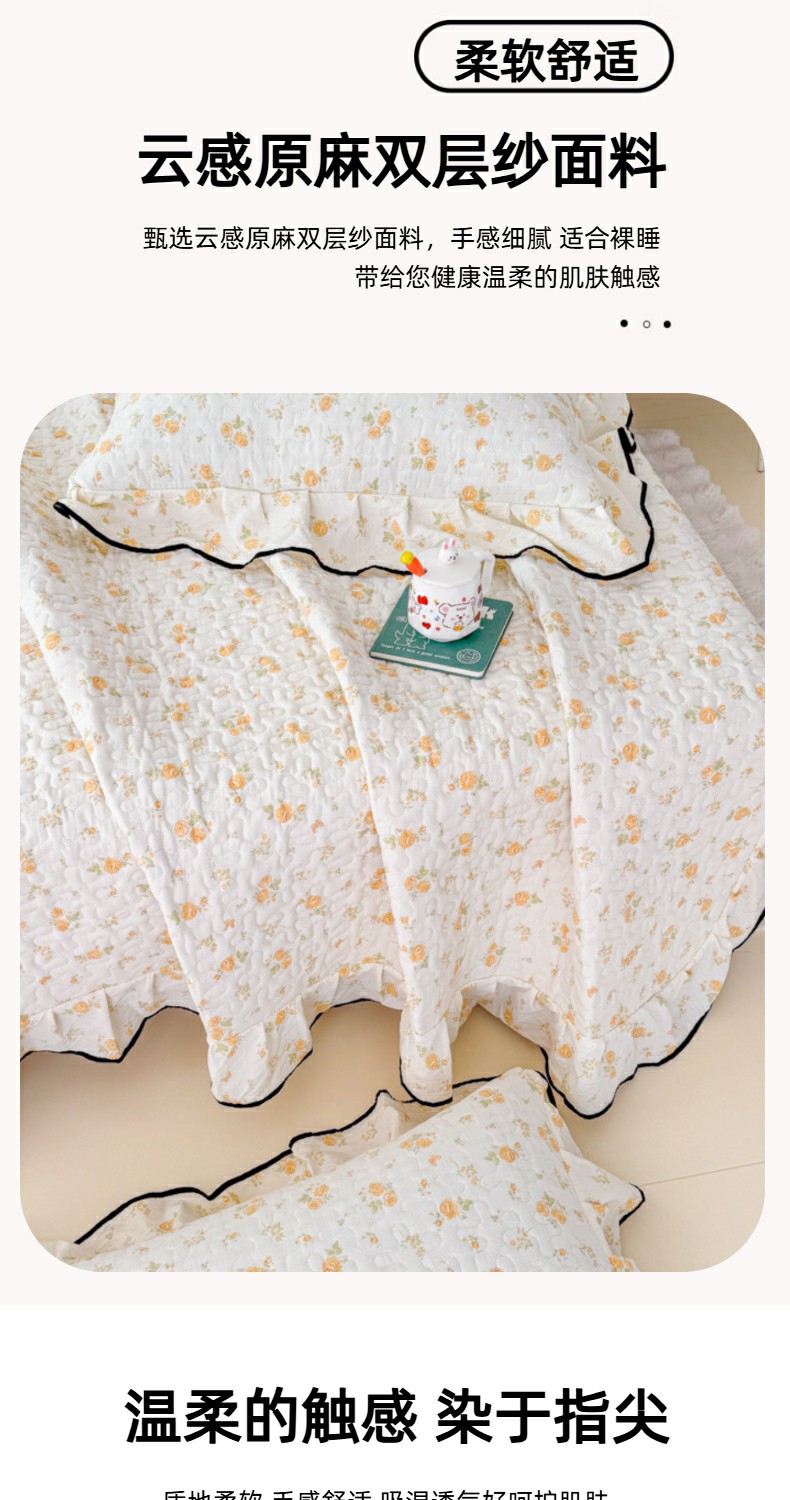 • 91家纺网 家纺一手货源 找家纺 999家纺 2025秋冬新款A类云感原麻双层纱床盖三件套四季通用炕盖夹棉床单床褥(提供买家秀) 静初【花边款】