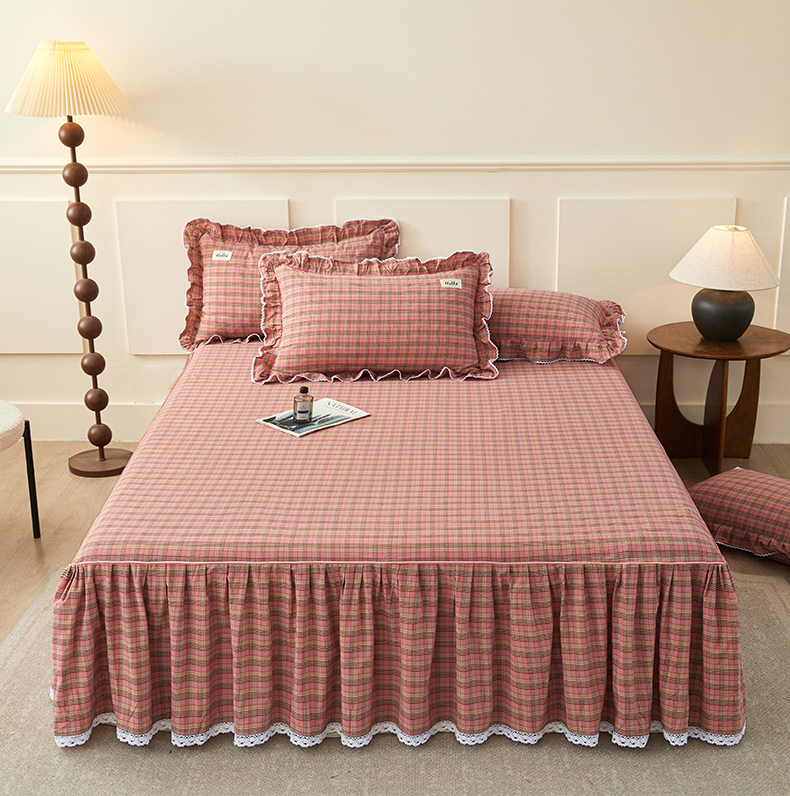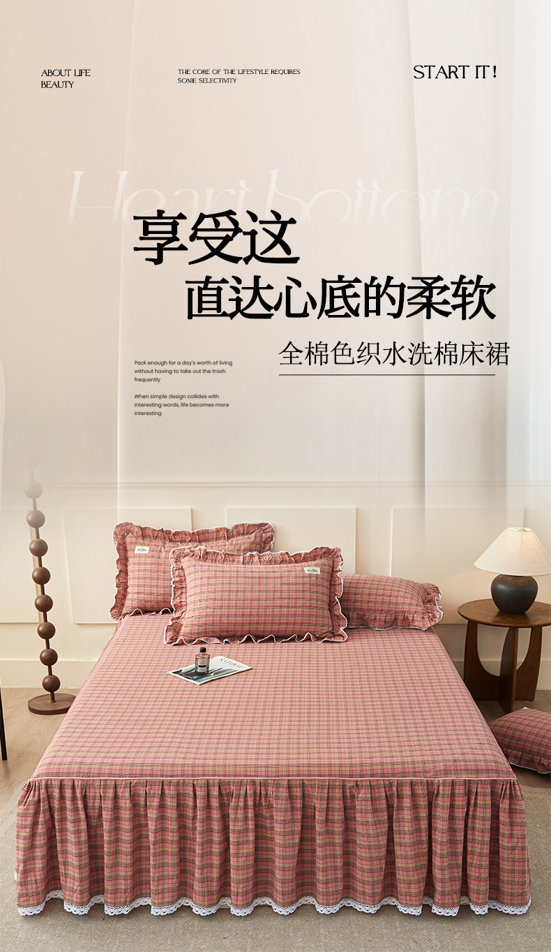 (总)缦彩 2025新款纯棉水洗棉床裙床罩单件全棉防滑防尘保护套床单三件套,艾米-粉,艾米-咖,艾米-兰,多芬桔,扶摇粉,欧风粉,品格-绿,奇兰灰,深情桔