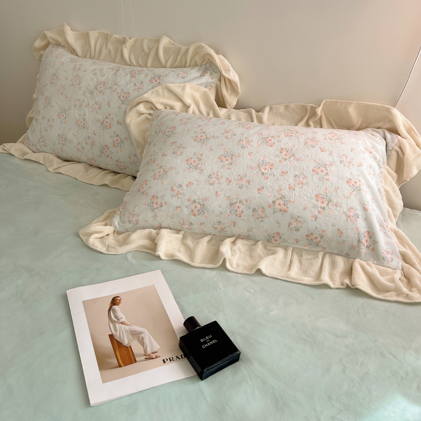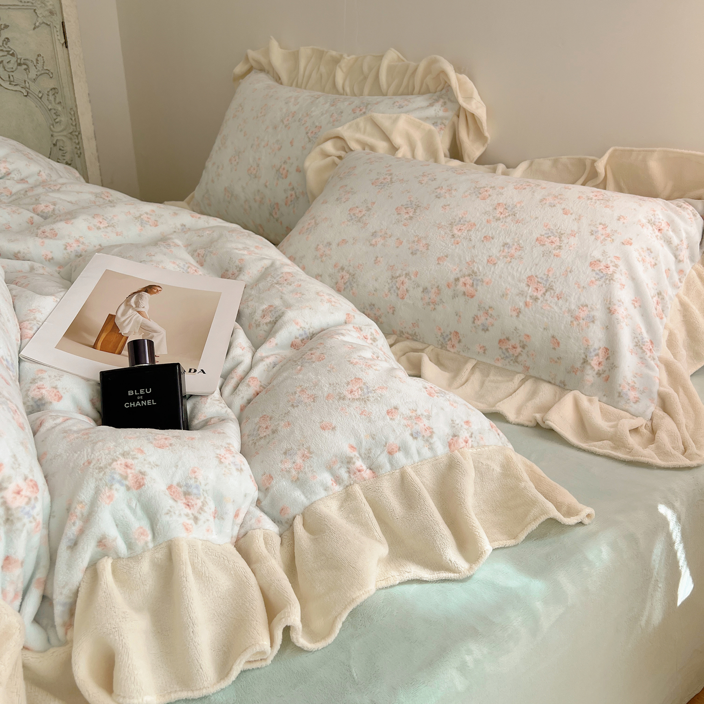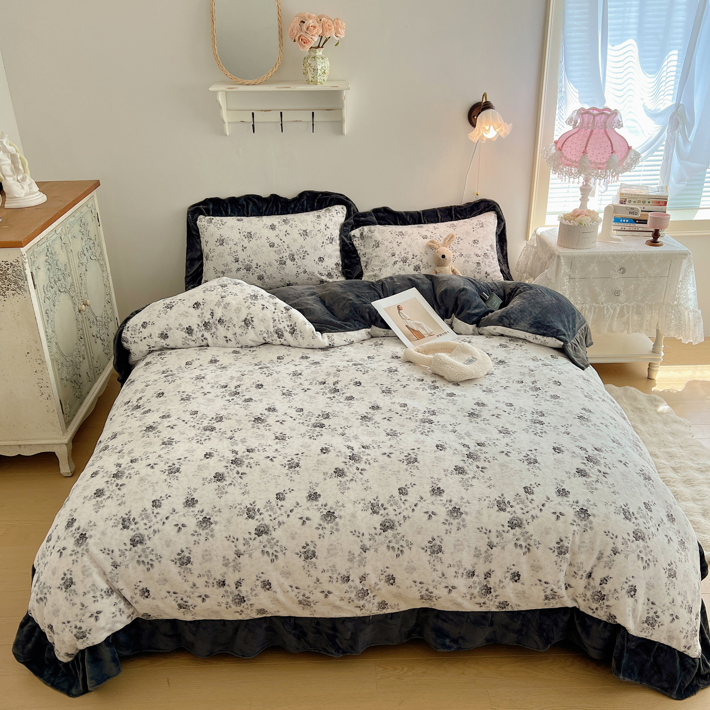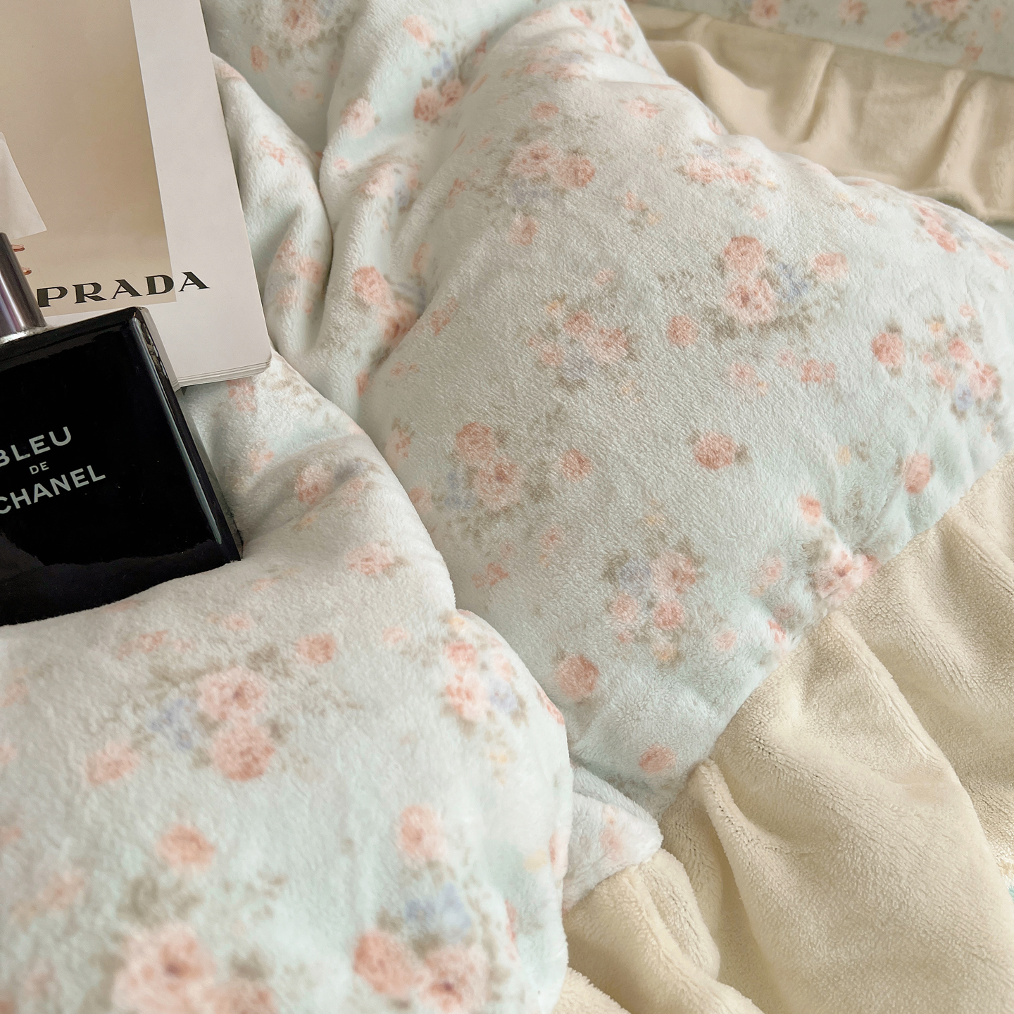 商品名称:桃喜 2025新款牛奶绒碎花花边系列四件套【会员-5】 山茶