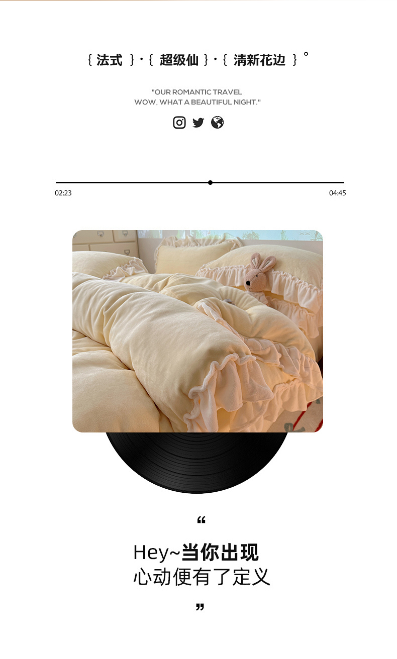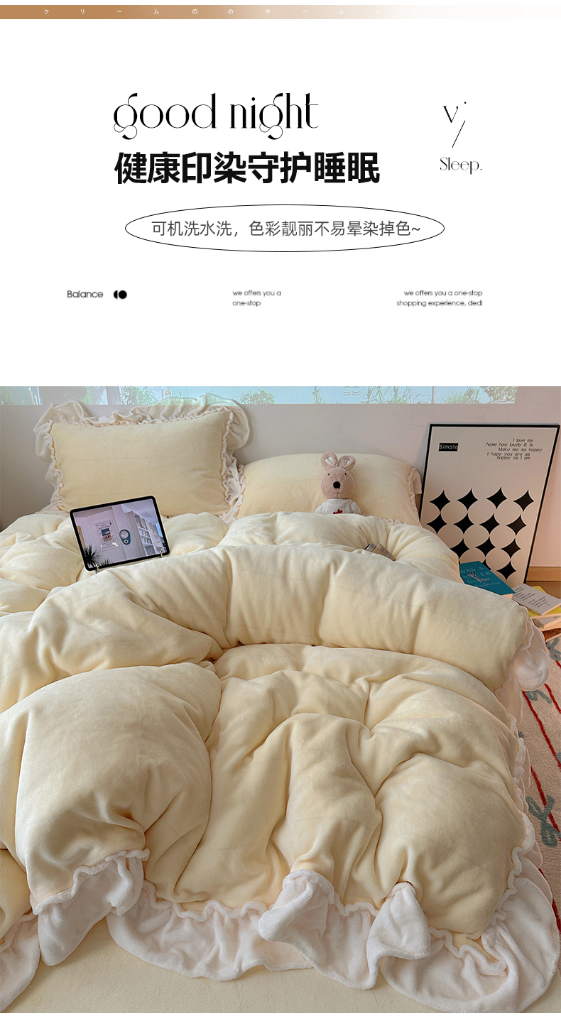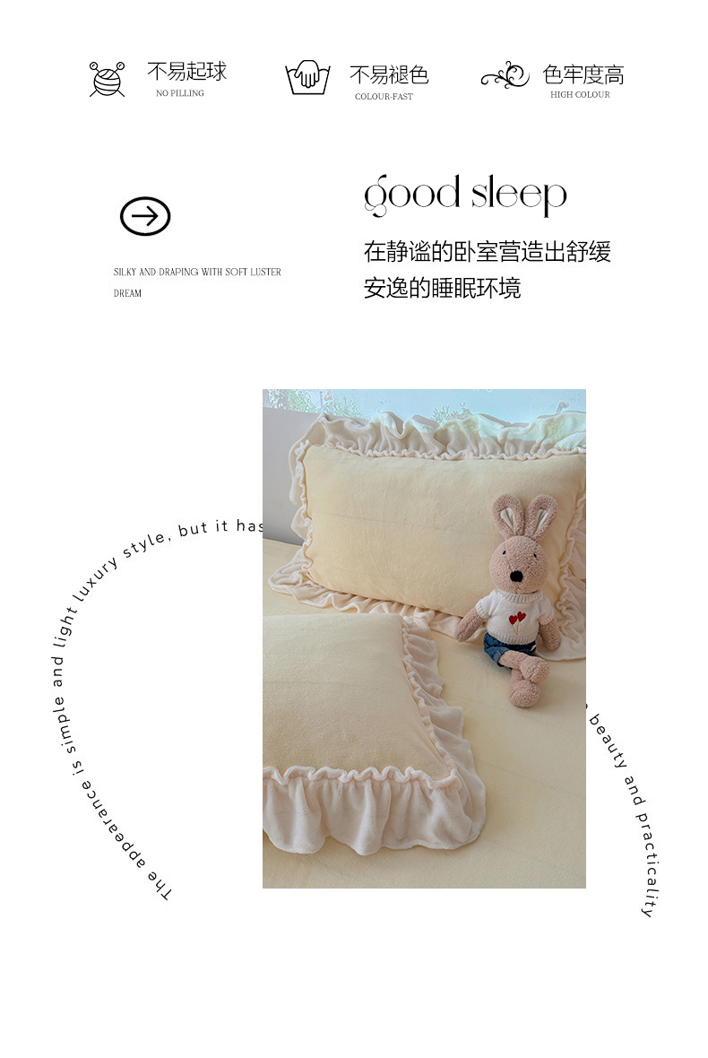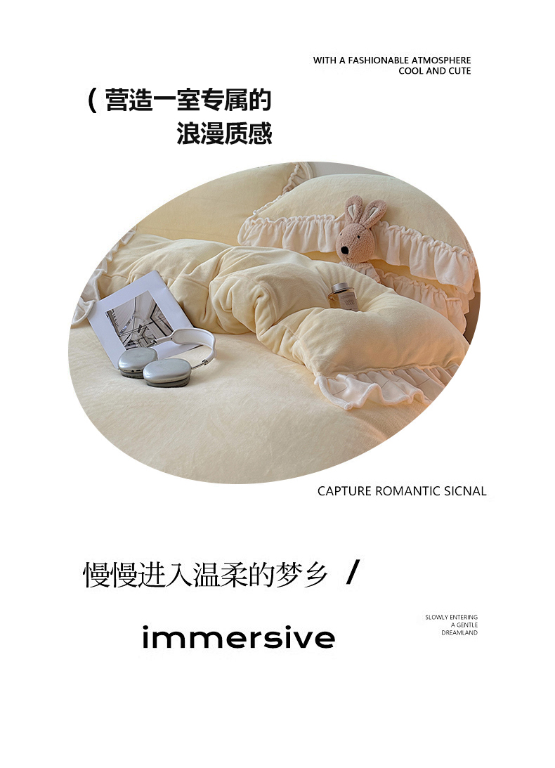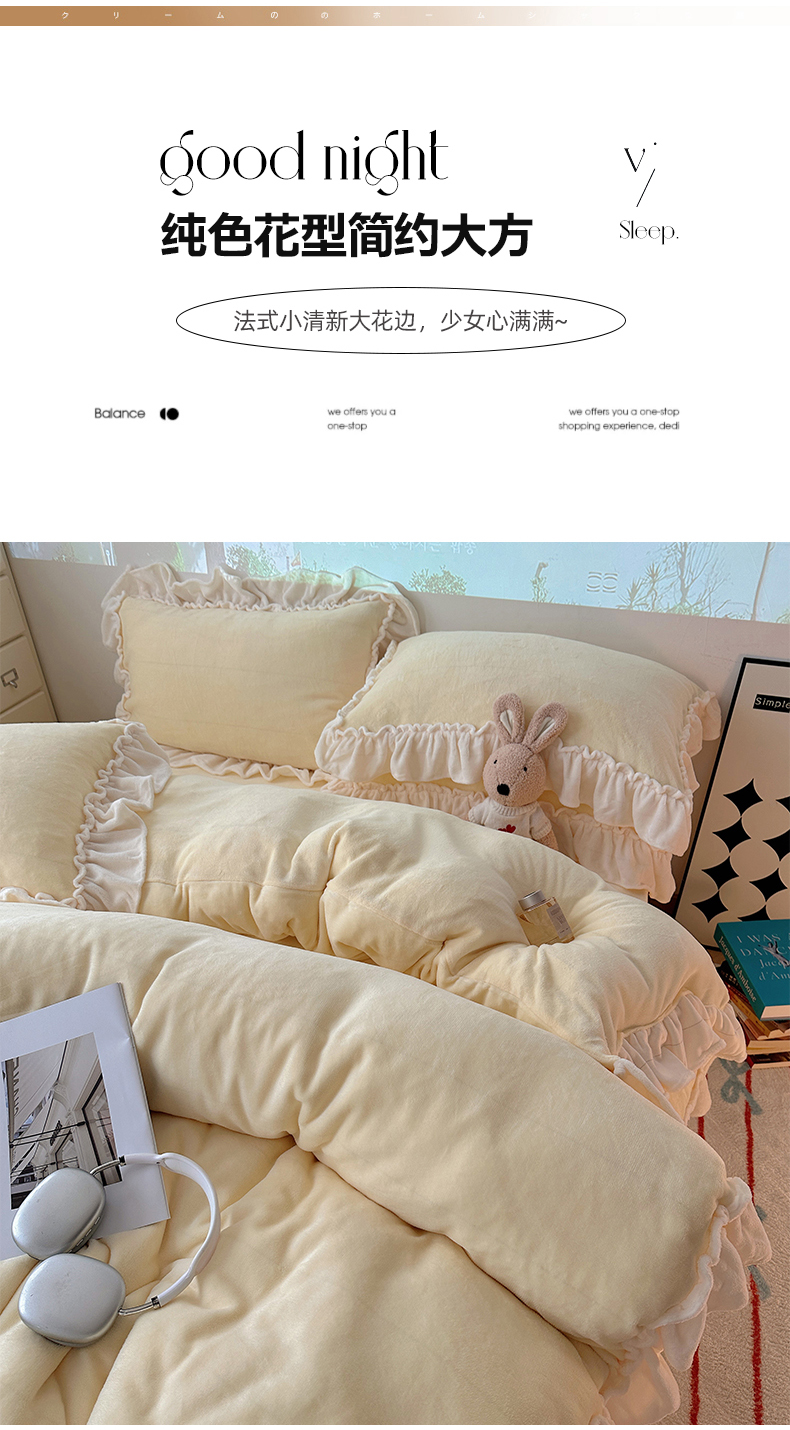 当前位置: 91家纺网 > 商品网购 > 床品套件 > 四件套 > 牛奶绒四件套 > 六巷胡同 2025新款A类法式小清新纯色牛奶绒花边款四件套 花边款-奶油黄