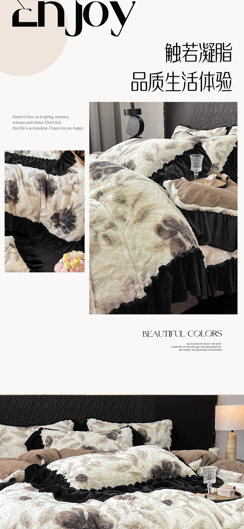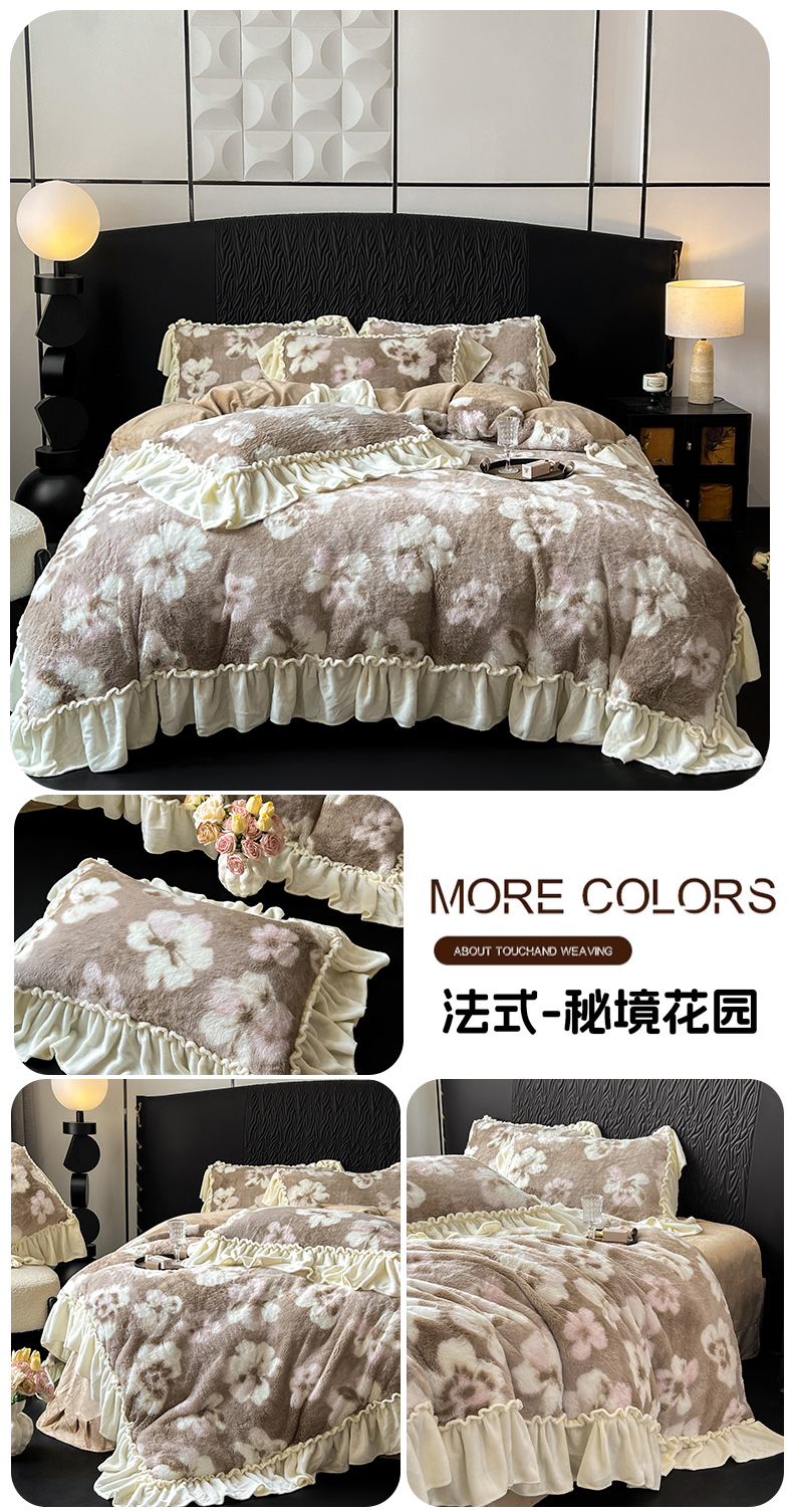 创爱家纺 2025新款法式韩版花边兔毛绒印花四件套 法式花边-莫奈花园