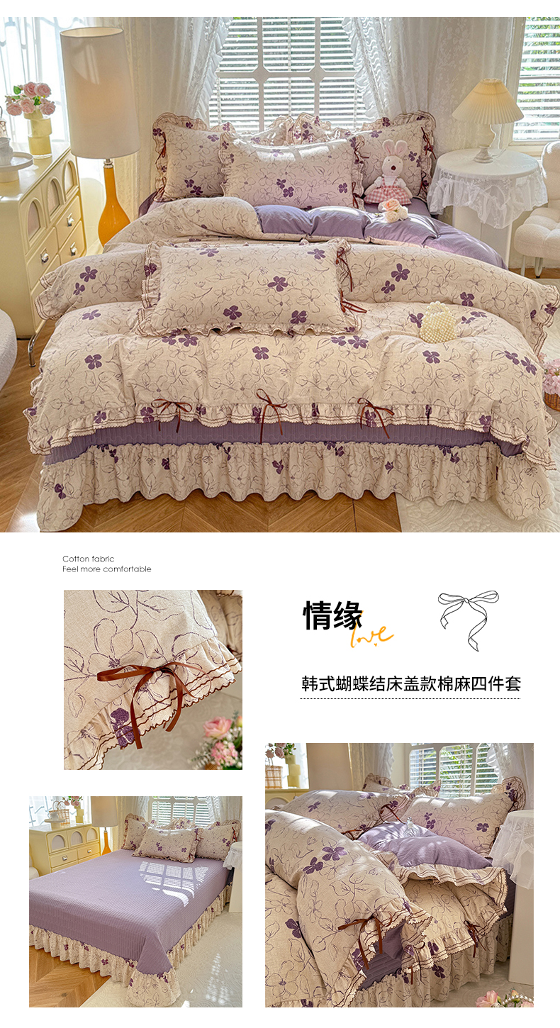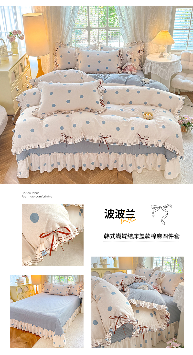 商品名称:韩约家纺 2025新款韩约1韩式蝴蝶结床盖款棉麻四件套 波波粉