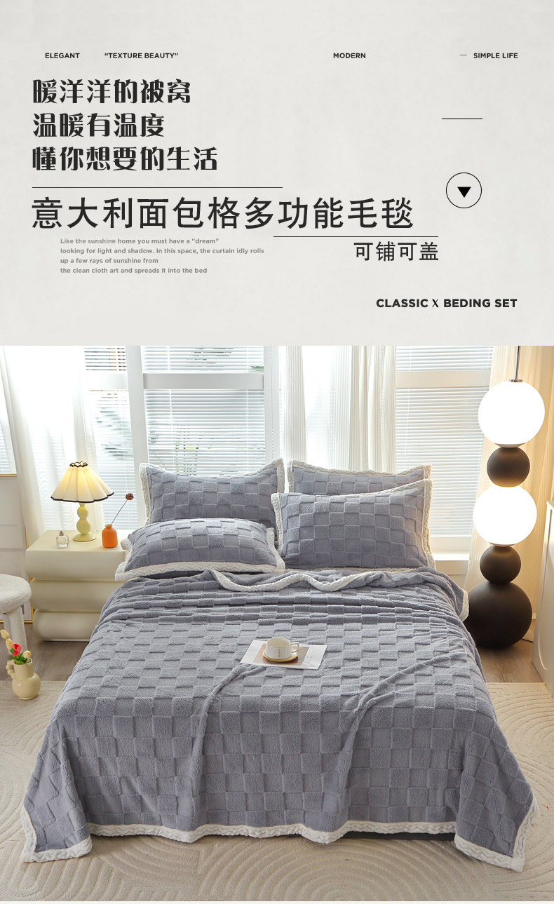 商品名称:(总)栩裕纺织 2025新款意大利面包格毛毯-包边款