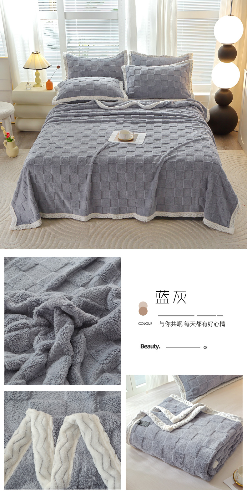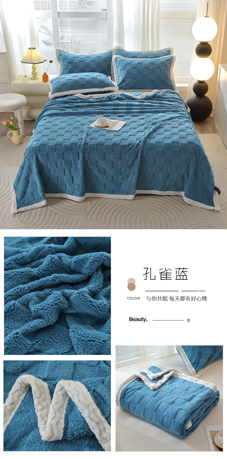 (总)栩裕纺织 2025新款宝宝绒夹棉单床盖-大蕾丝花边款,宝蓝,橙色,粉色,湖蓝,灰色,卡其色,皮红,中国红,紫色